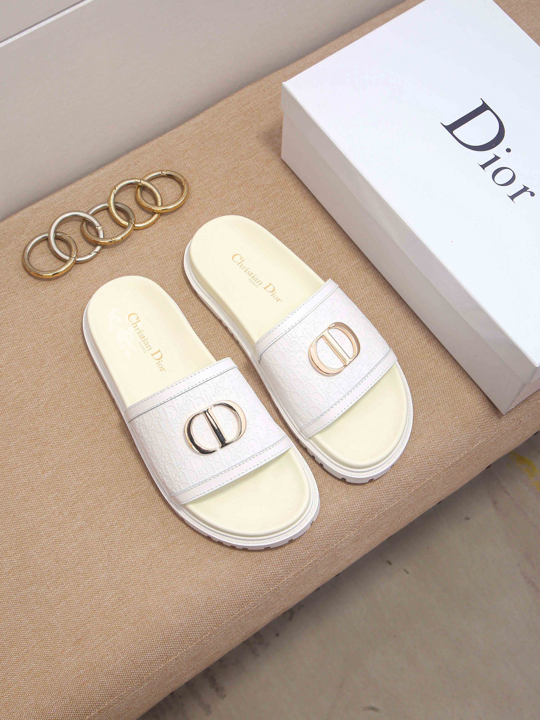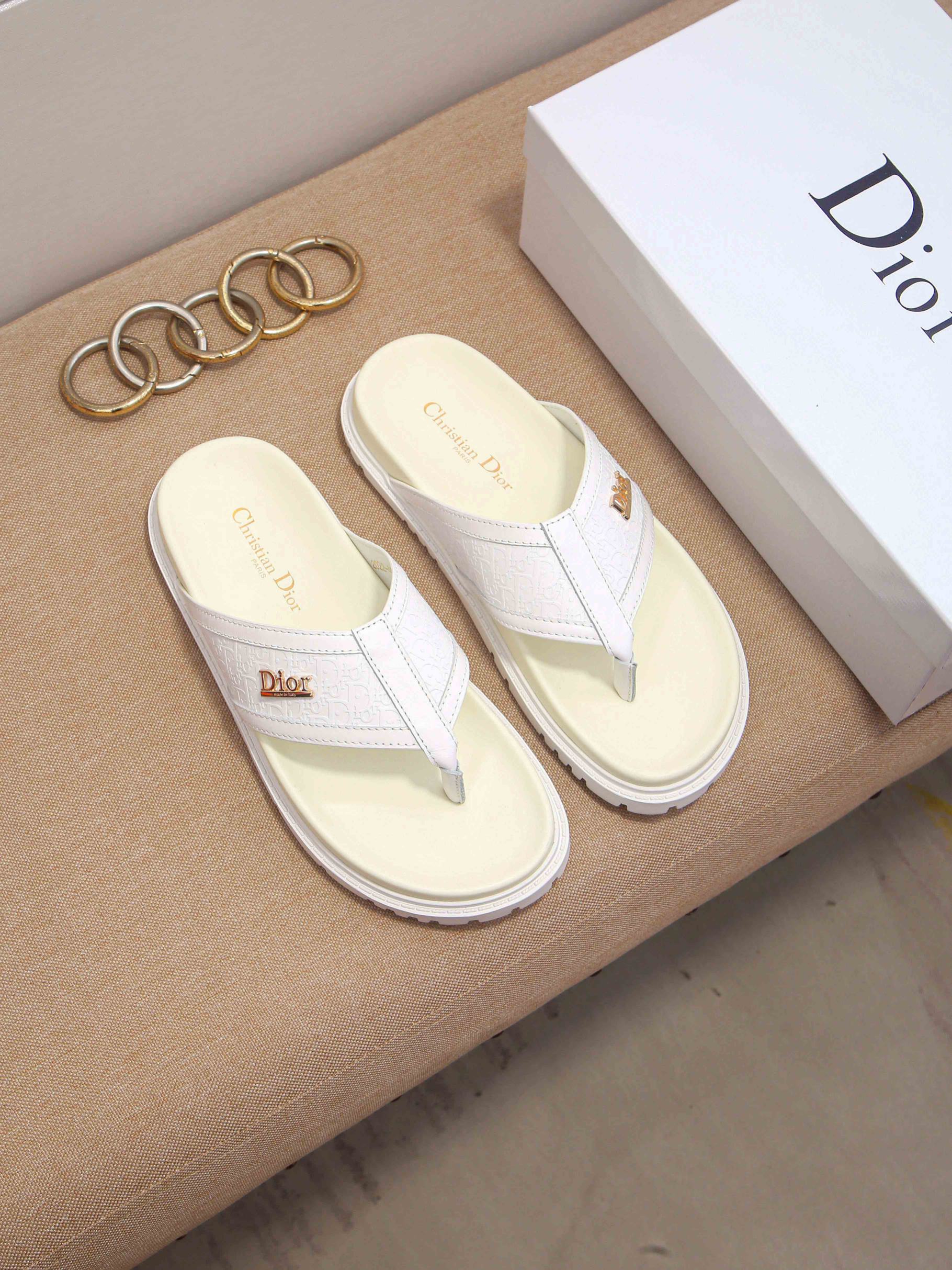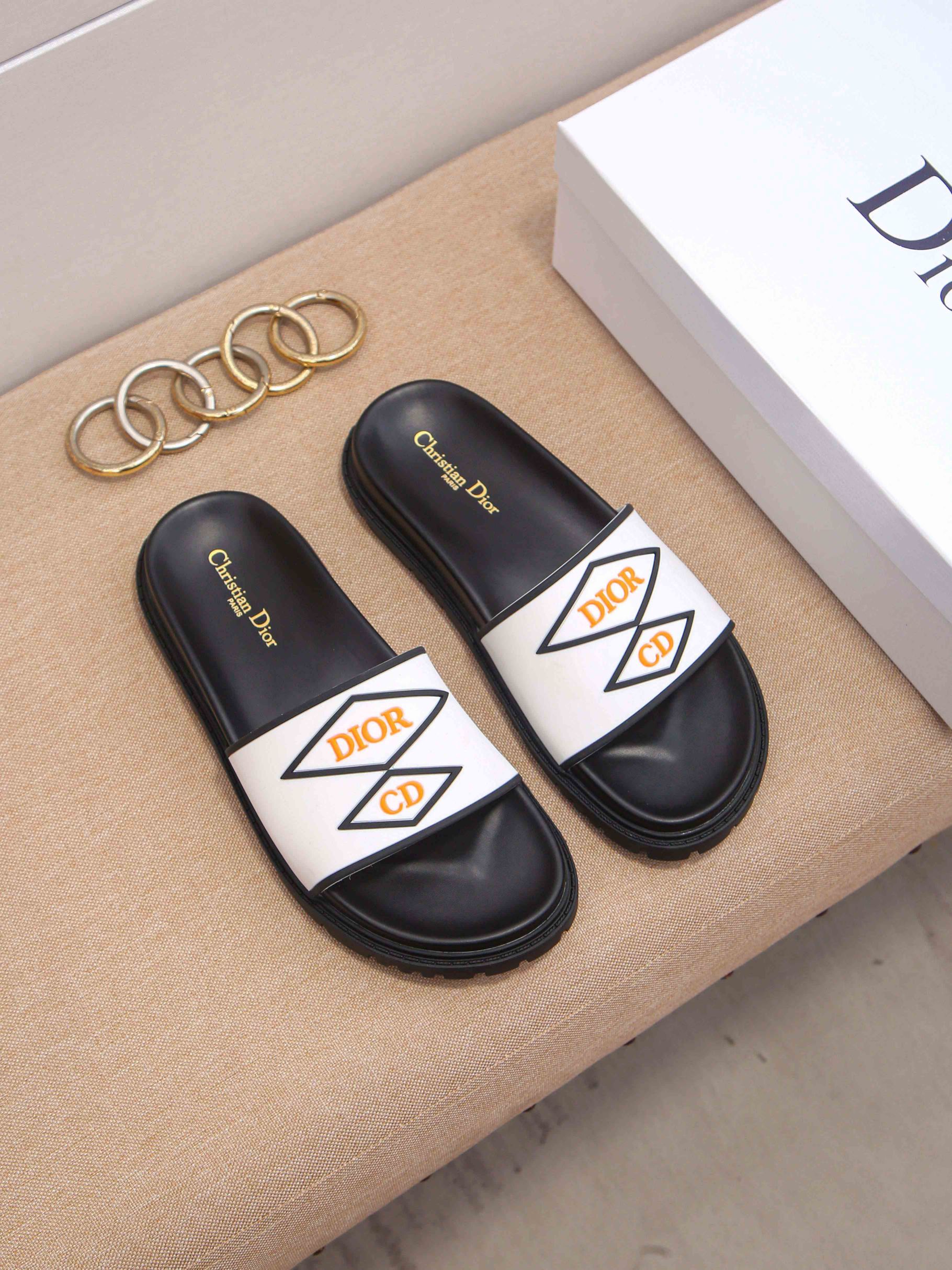 Dior I0 专柜品质迪奥最拖鞋火爆上市。原版鞋一比一复制。穿脚非常舒服,大牌名星最爱的奢侈品。面料采用小牛皮,内里羊皮,本款面料颜色有:黑色,白色。等2个经典颜色供选。鞋面有分压花和不压花两种。大底釆用防滑耐磨橡胶底片。码38一44码
