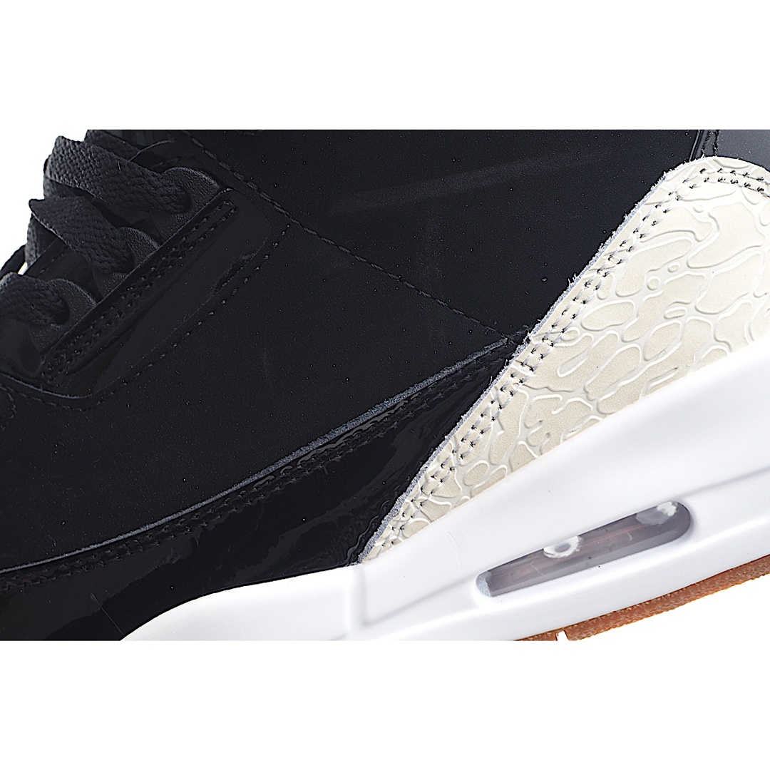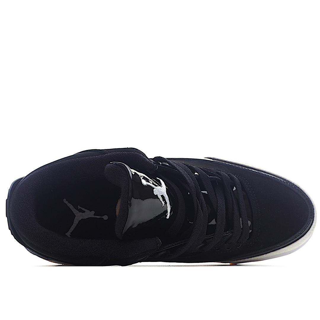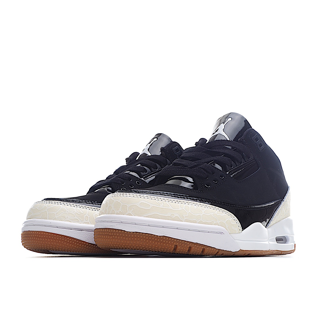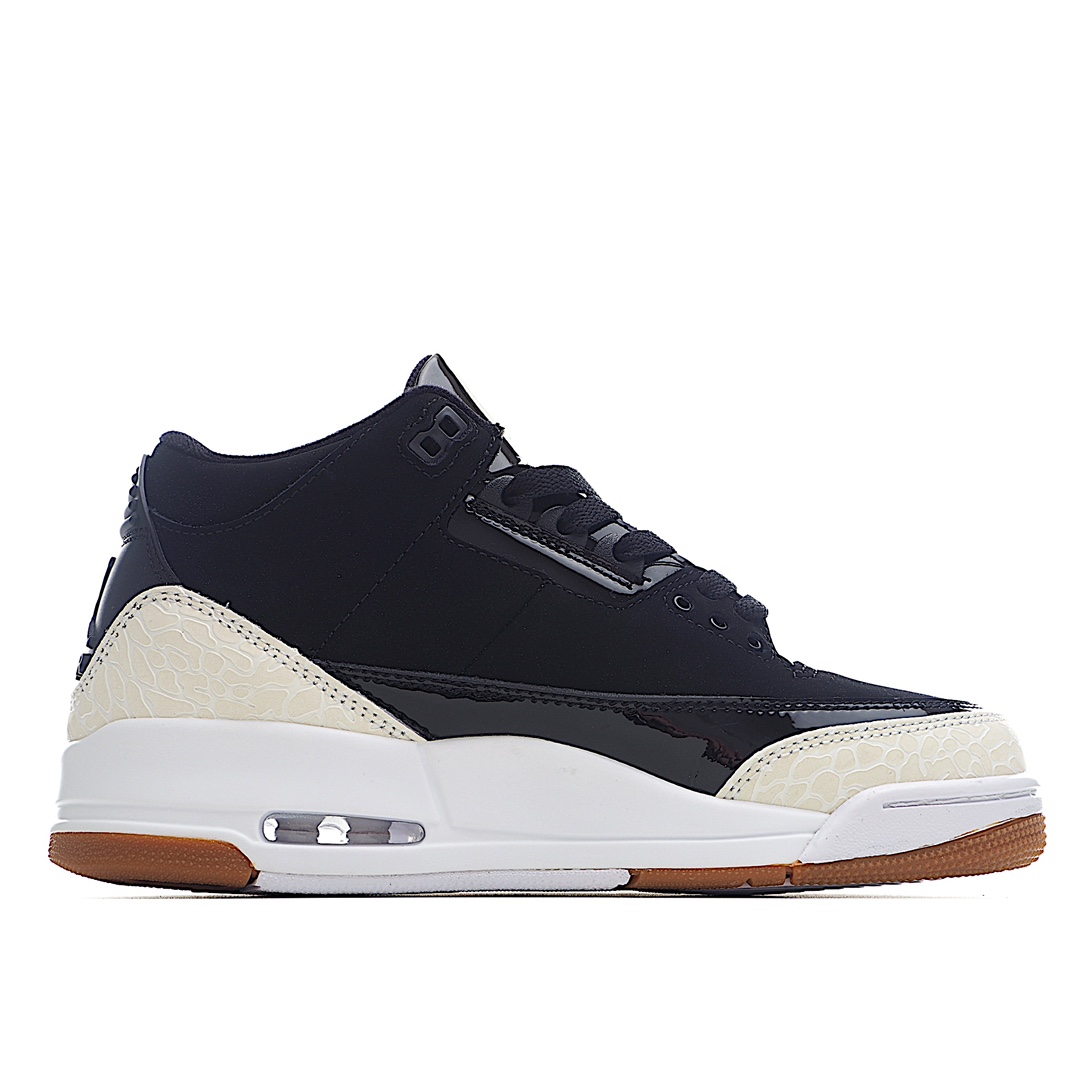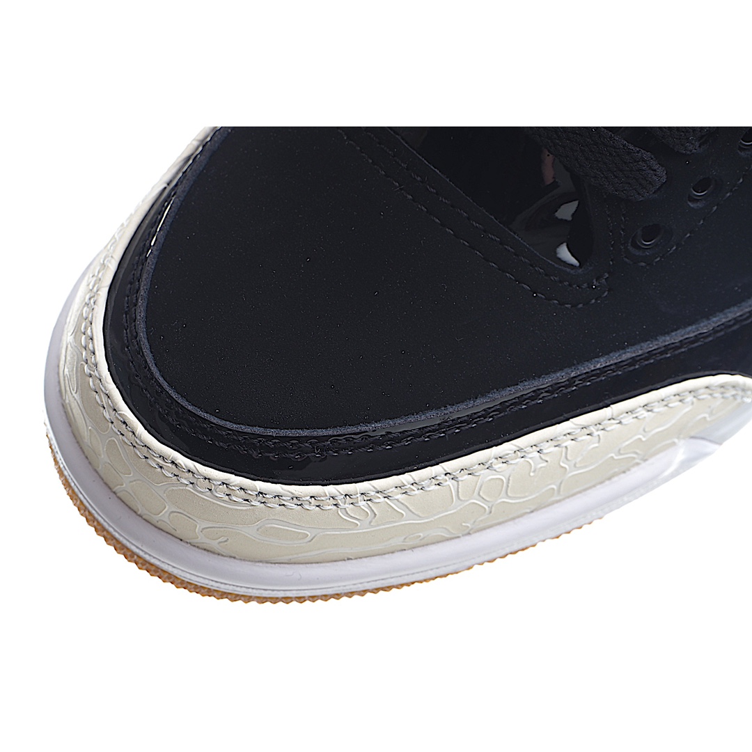 H0 Air Jordan AJ3 Retro 米白黑 乔丹篮球鞋系列 整体双以黑色为主调装饰鞋面,鞋头以及后跟处饰有经典爆裂纹元素。后跟处依然采用黑白两色呈现,与鞋面呼应,并搭配白色中底以及生胶黄色外底,完善整双鞋的设计。