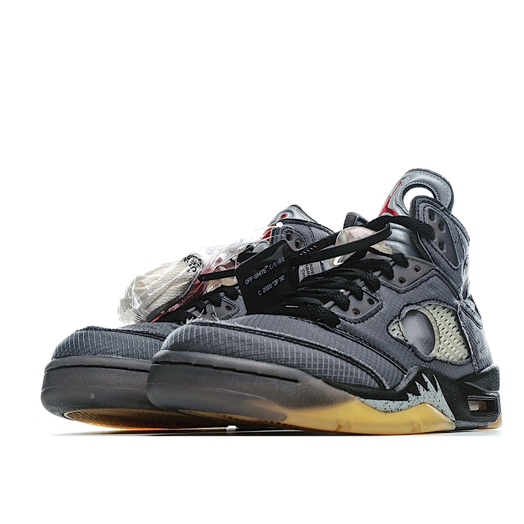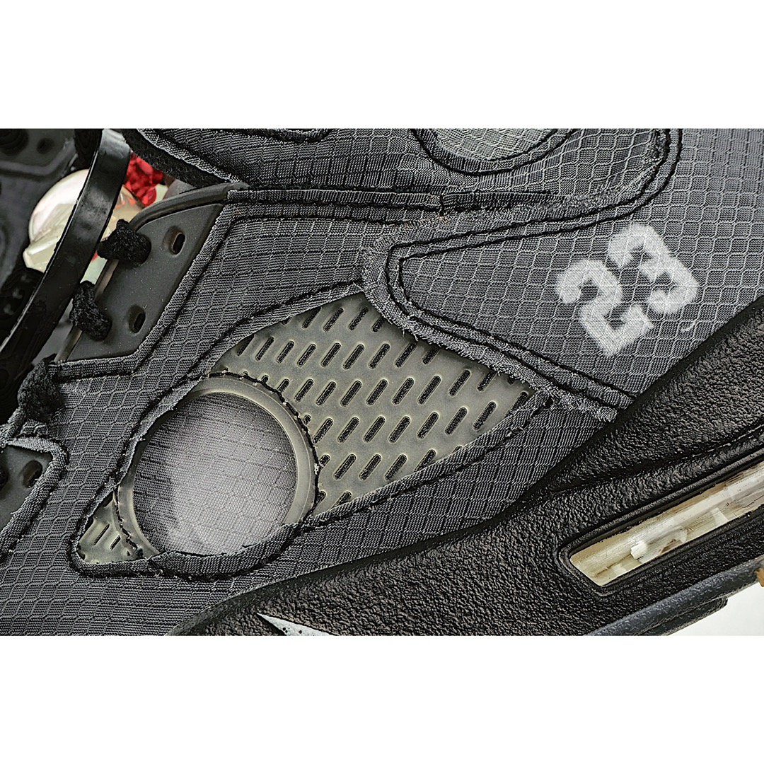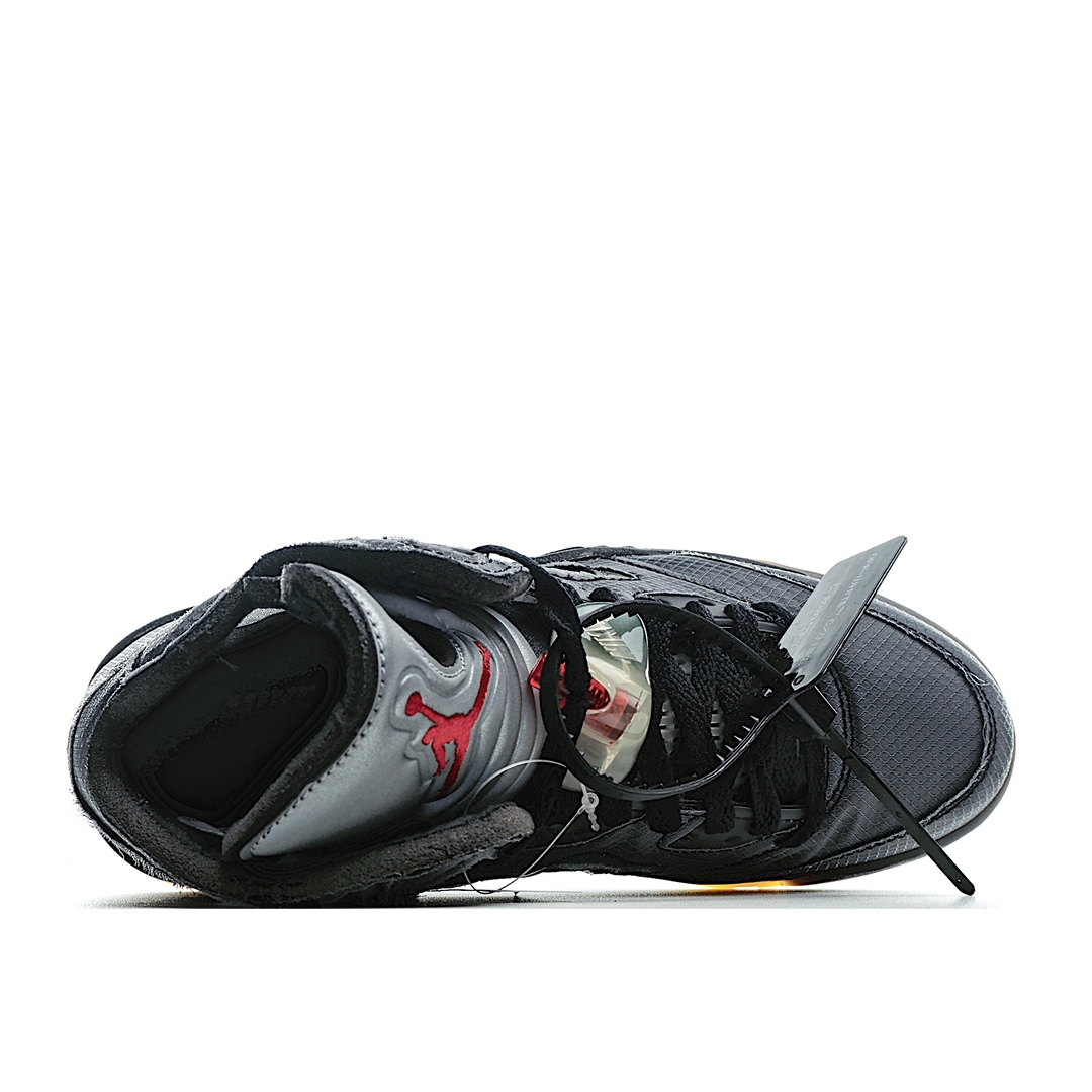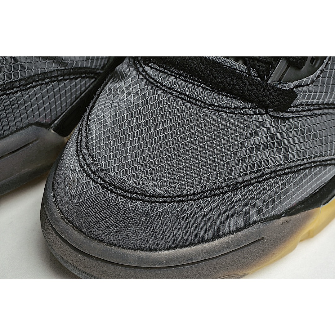 H5 Off-White™ x Air Jordan Retro 5″Black/Muslin-Fire Red” 黑蝉翼 2020 AJ5迎来30周年限定 美系潮流奢牌再度联乘 采用原厂韩国进口纱网 攻克鞋面发皱问题 采用熟悉的蝉翼材质覆盖 精密热切饰片工艺 全新开模大底区别市面套底版本 细节超级丰富