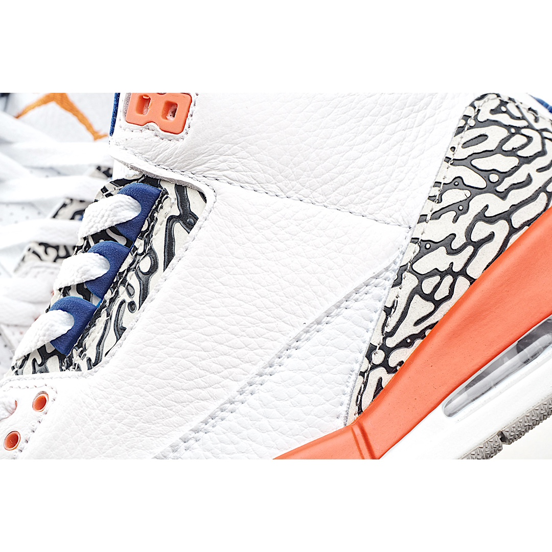 I0 Nike Air Jordan 3 Retro“Knicks” 尼克斯配色 中端之王 原装进口皮料 正确石头纹 纳帕纹结合 原厂私磨 正品鞋型 鞋舌飞人刺绣针数立体讲究精细 原厂中底钢印 欢迎对比正品原鞋 官方