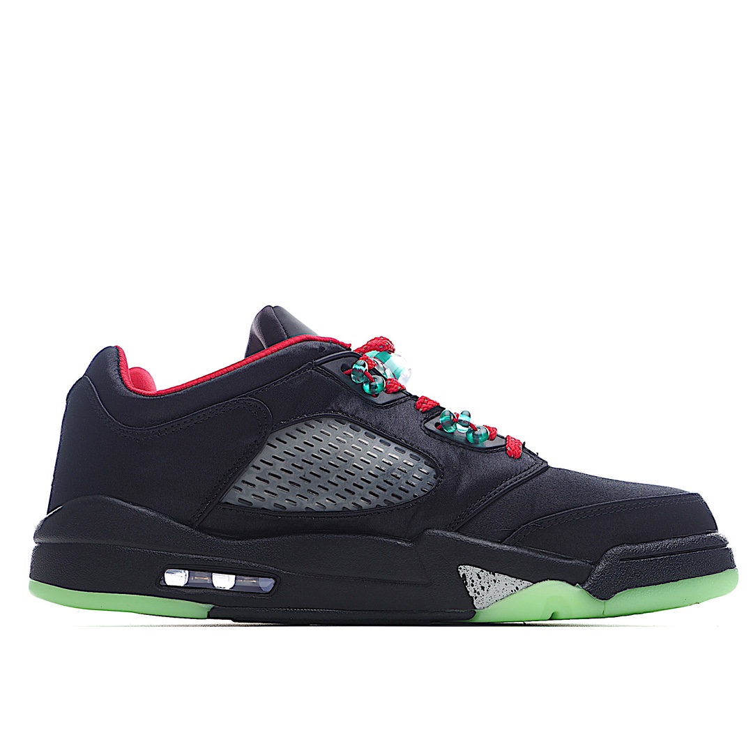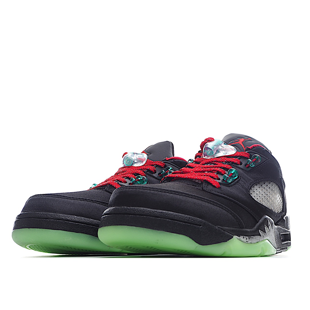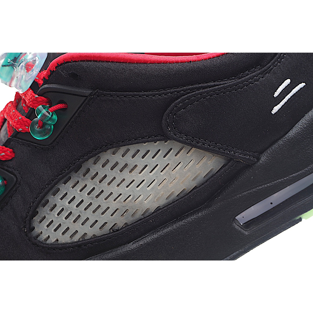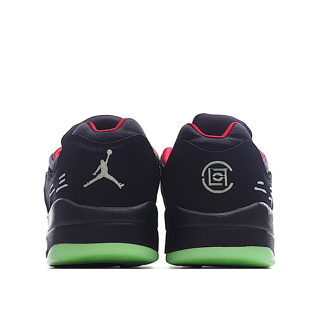I5 Clot × Air Jordan Retro 5 重磅联名 乔丹AJ5代低帮复古休闲文化篮球鞋 黑红绿 夜光大底眼前这款Air Jordan 5 鞋周身以翻毛皮革材质的鞋面,搭配深黑色鞋舌及中底,银色 Jumpman Logo及鲨鱼牙点缀,整体风格 酷劲十足