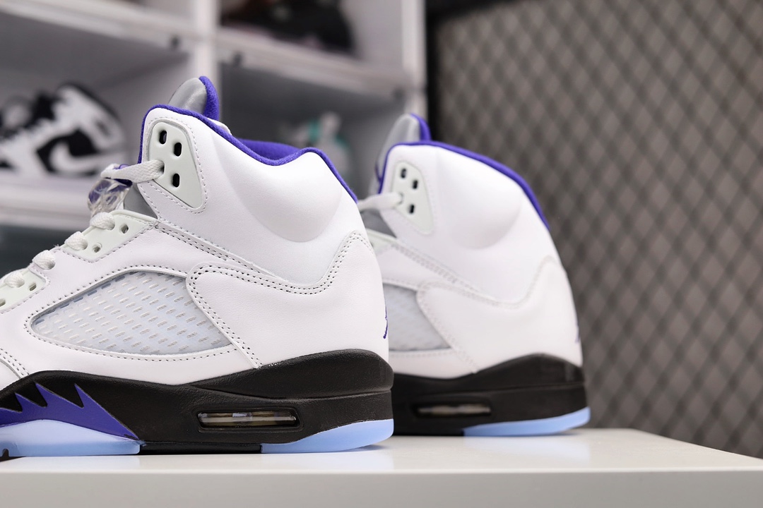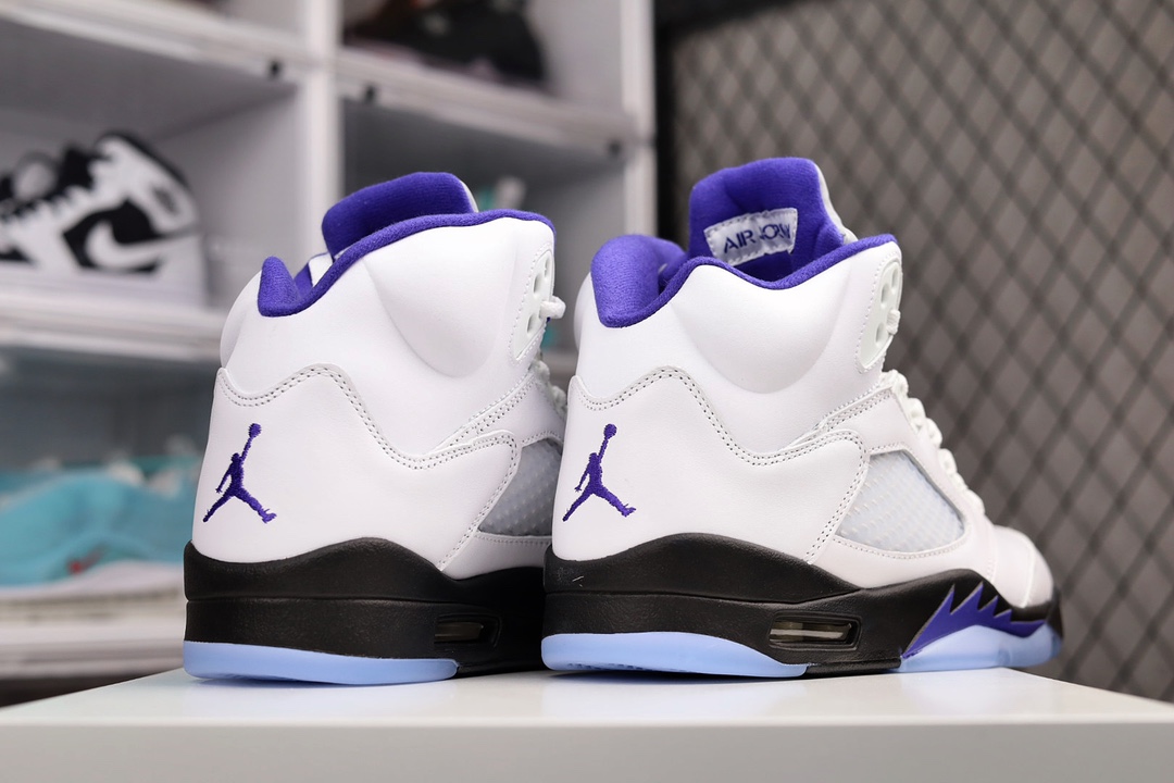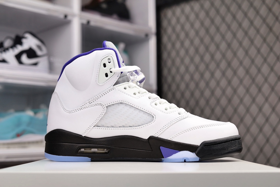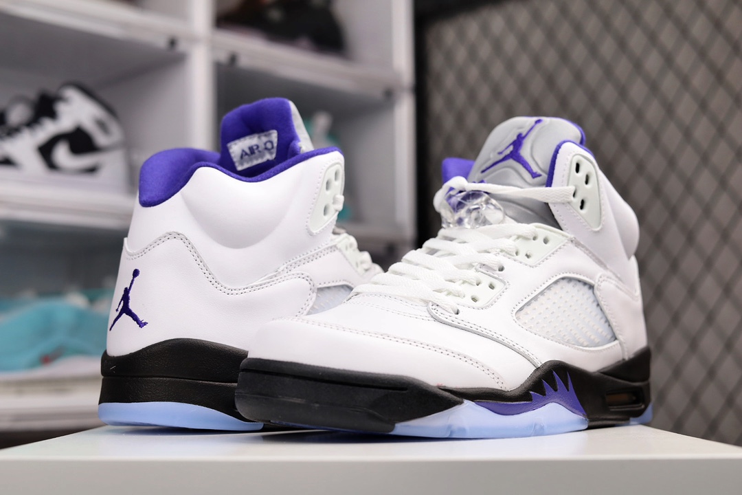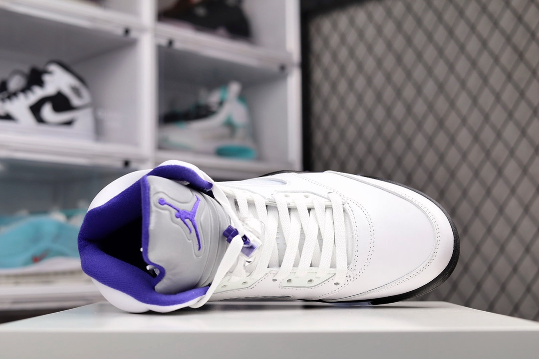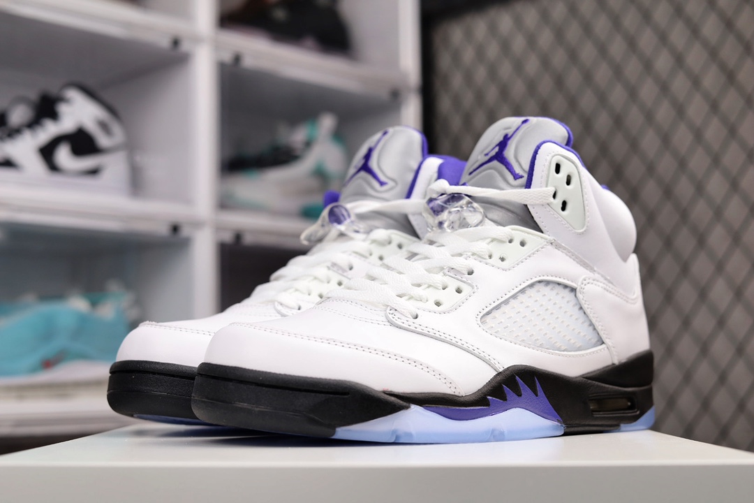 J0 大次 Air Jordan 5 Retro “Concord” 高帮 白紫 AJ5 乔丹5代 aj5 乔5 高邦 白紫 乔丹篮球鞋系列 整双鞋以元年款为蓝本,并采用全白天然皮革鞋面和银色鞋舌,中底的鲨鱼齿换了黑色,并点缀紫色泼墨设计。纯白色真皮鞋面搭配3M反光鞋舌,吸睛效果十足鞋底还是采用经典的灰色中底和水晶外底,质感极佳×885QQ