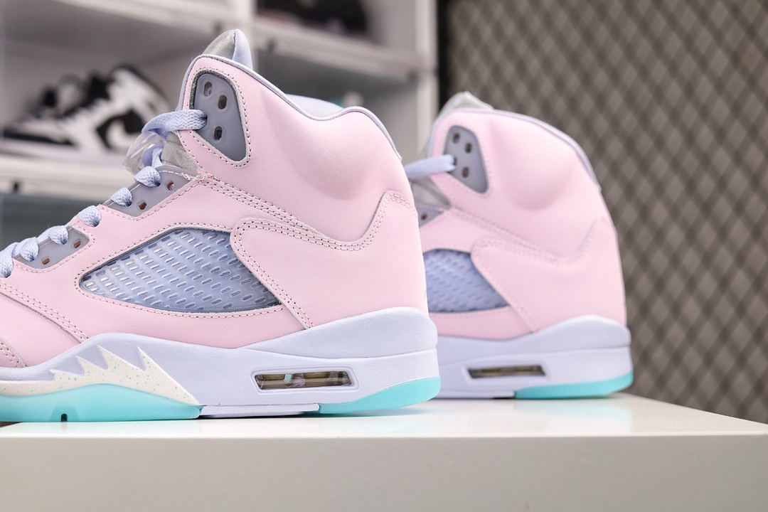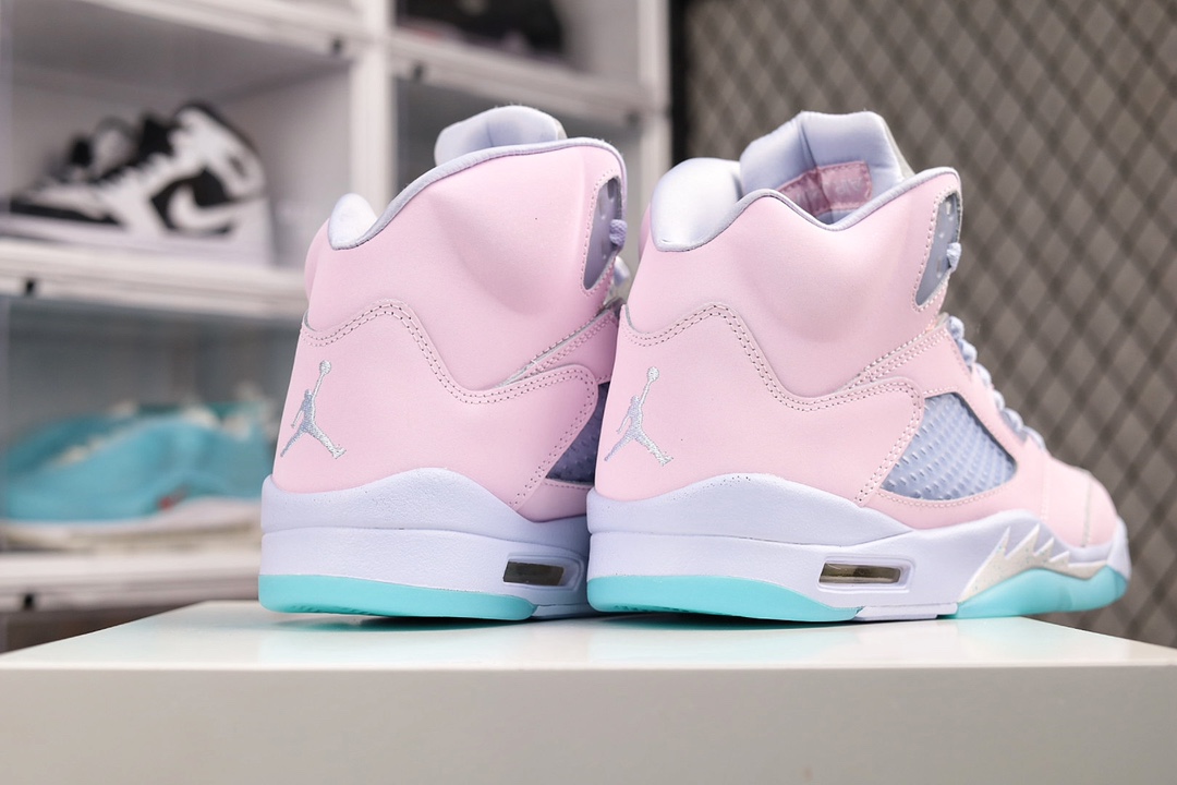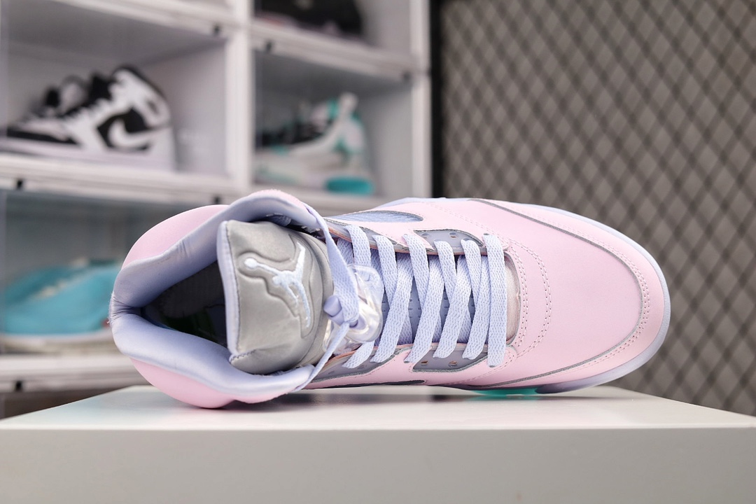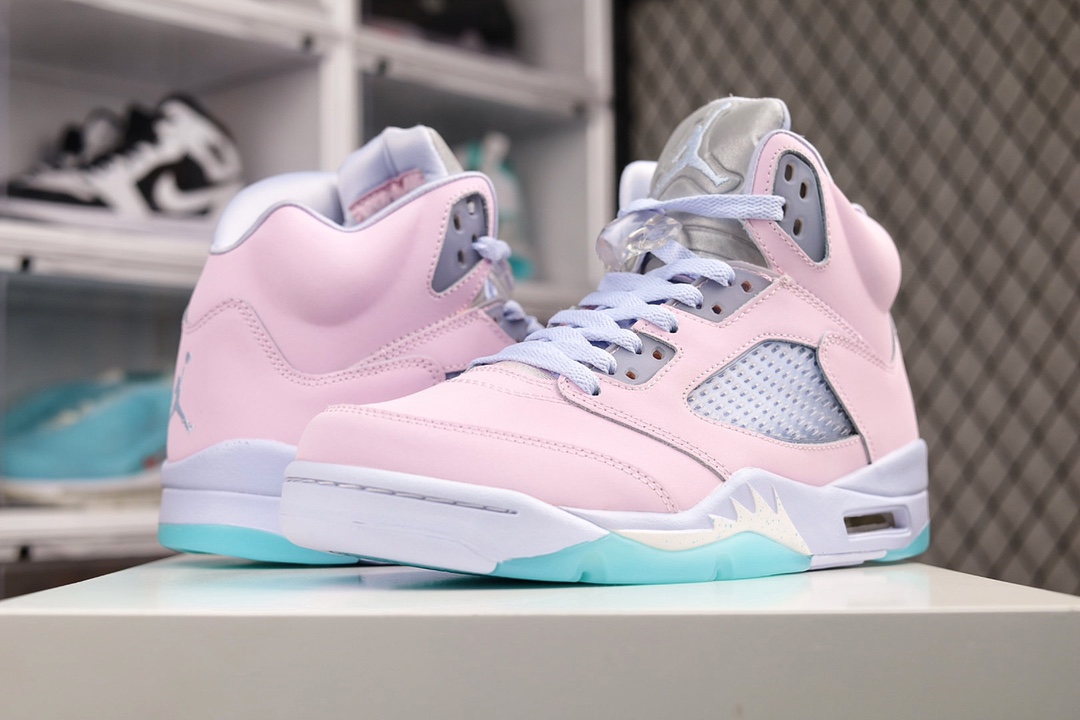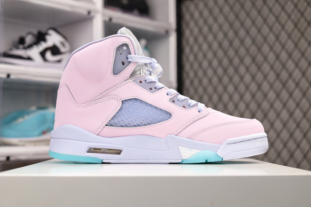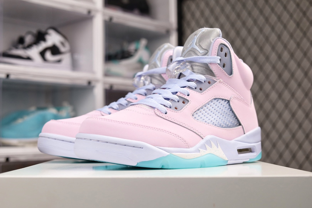 J0 Air Jordan 5 “Easter” 复活节彩蛋鞋款采用粉色、墨绿色和天空蓝为配色方案,这款 Air Jordan 5 以粉色皮革鞋面,辅以墨绿色细节展示,最后采用特殊半透明水晶外底和别致复活节主题细节点缀,其他细节包括特殊包装鞋盒和夜光外底完善了设计×669QQQ货号:DV0562- F5 0 尺码:36-47