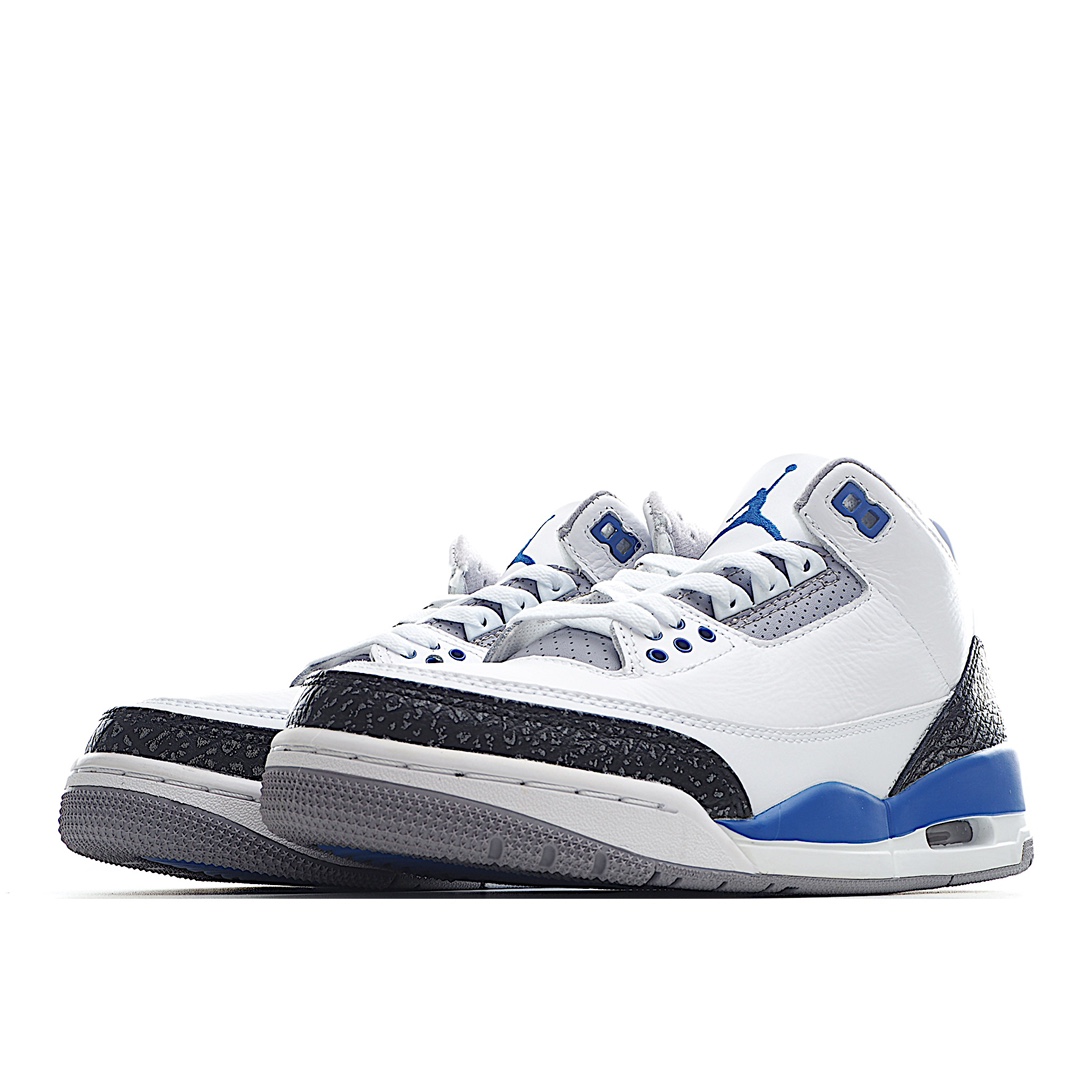 J5 Air Jordan 3 Retro”Racer Blue”迈克尔·乔丹AJ3代中帮复古休闲运动文化篮球鞋“白赛车蓝黑爆裂纹”