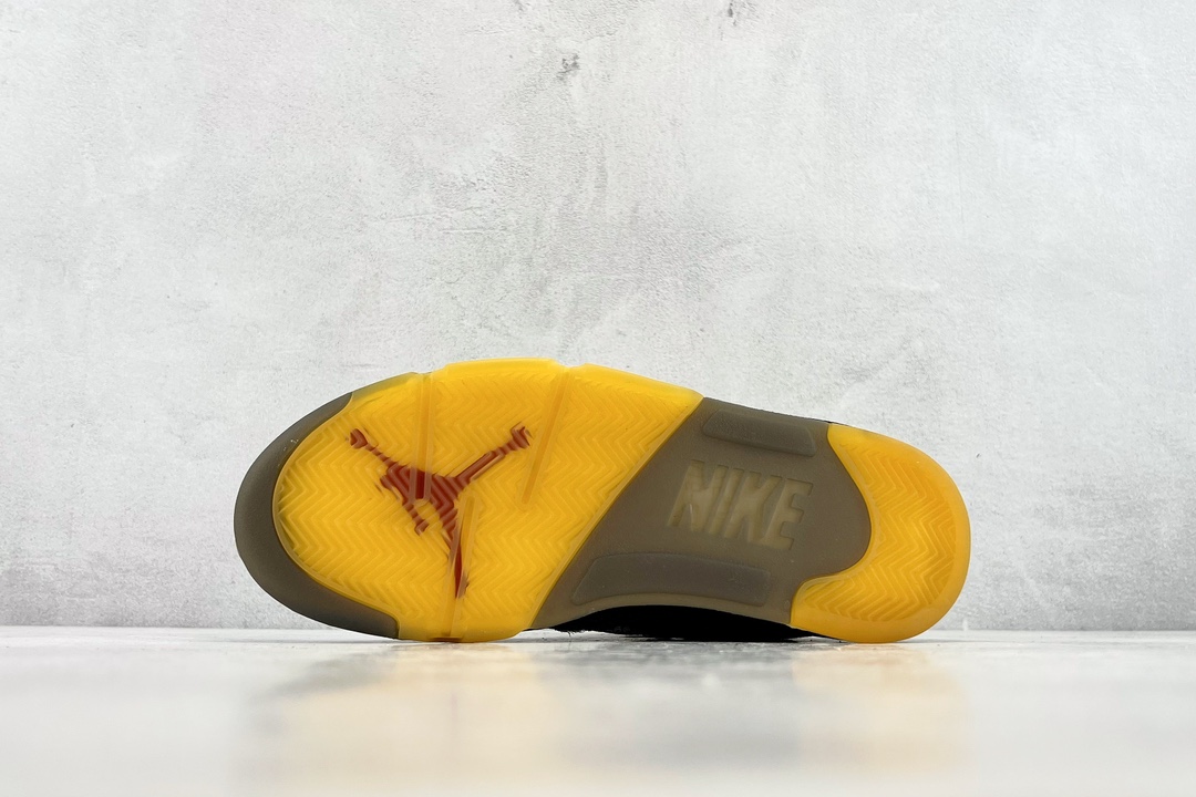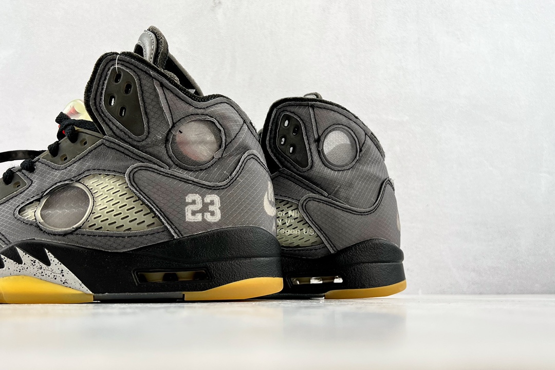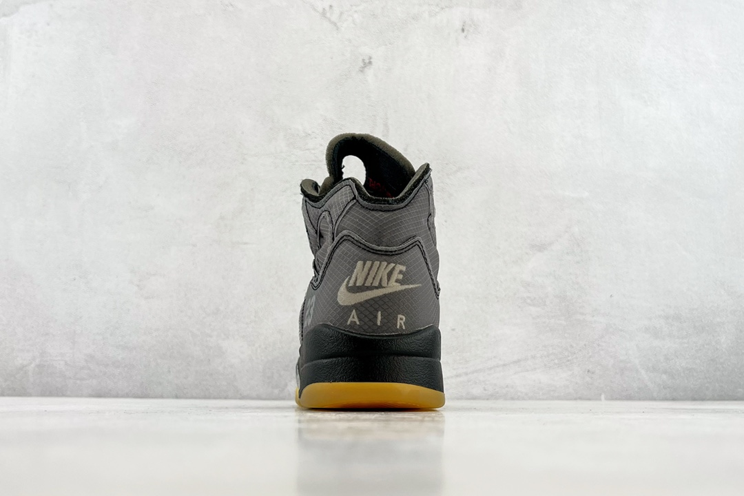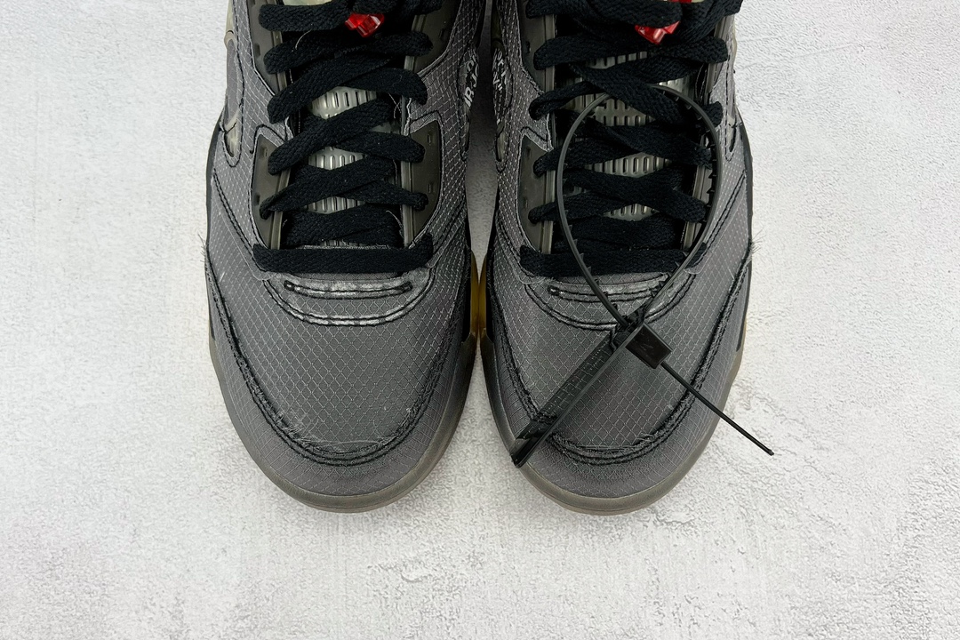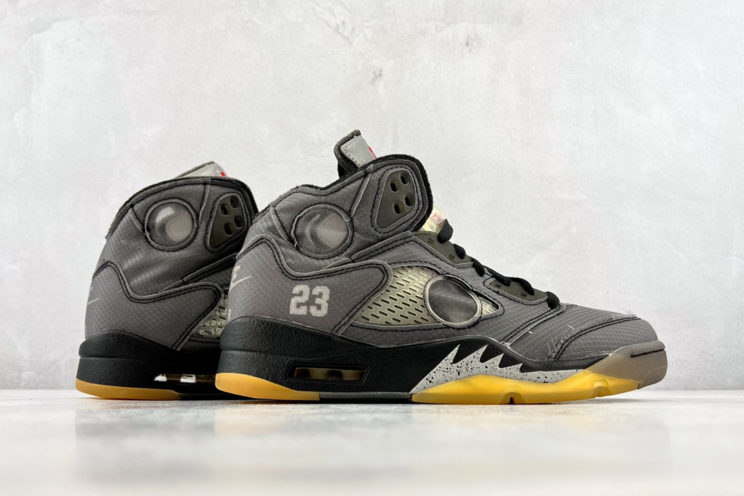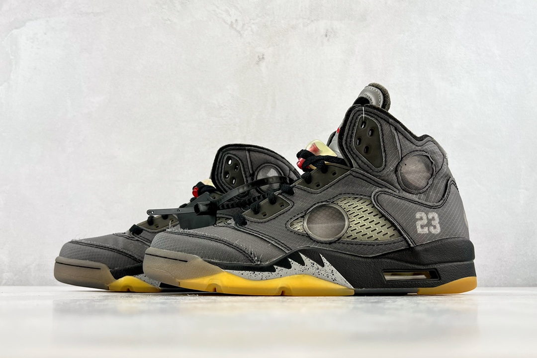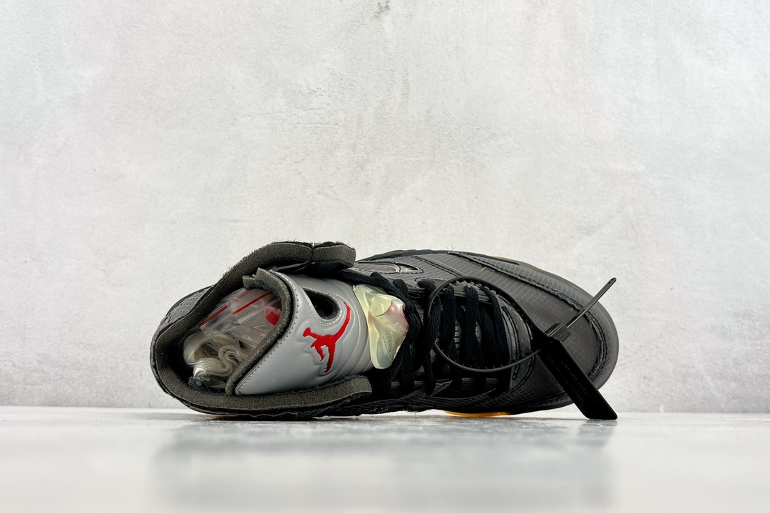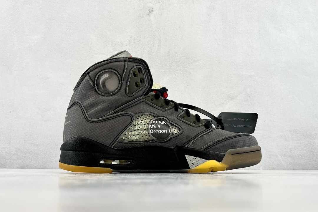 Off-White x Air Jordan 5 Retro SP 黑蝉翼采用原厂韩国进口TPU网纱原面质感 色泽 纹路 同步公司原鞋全面电脑针车 原档案精准数据打造外内侧进口KPU网格软材料 字母精准对位 原厂PU+RB大底 正确喷漆泼墨图案 独家原装大底 正确 立体侧标正确中底钢印