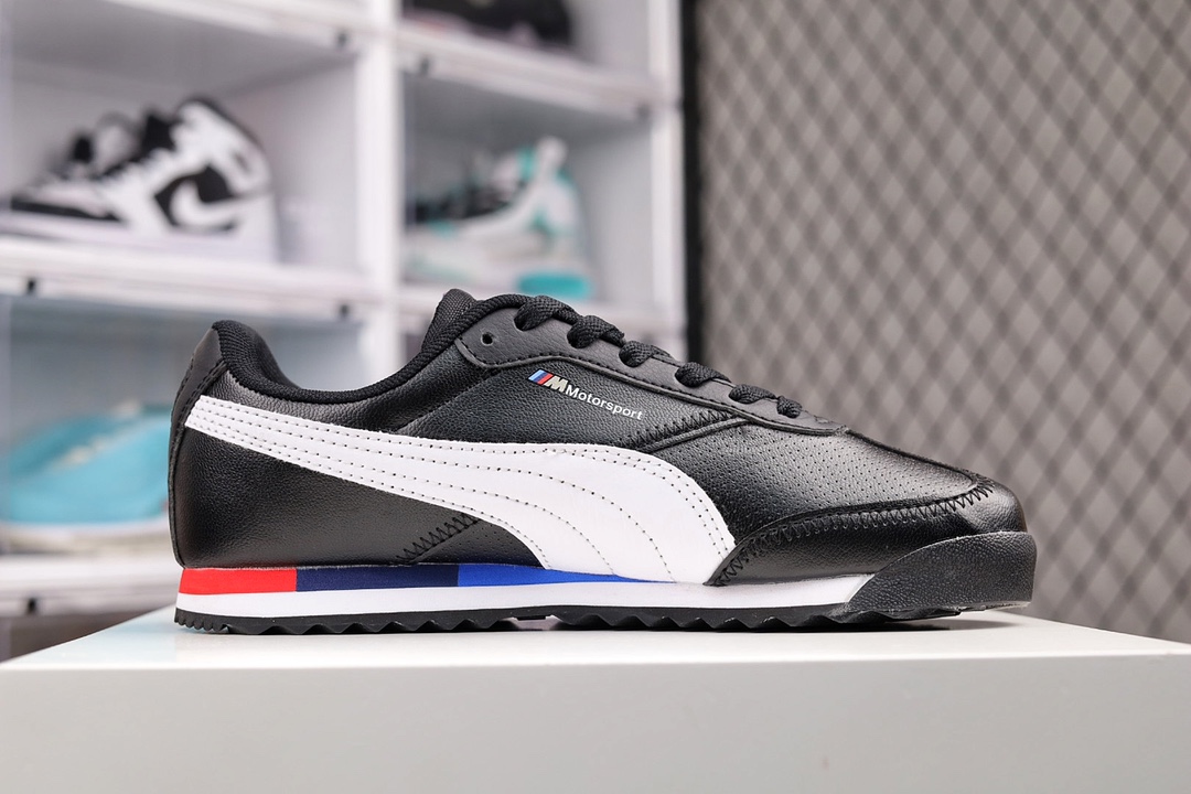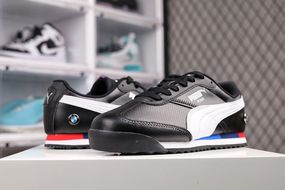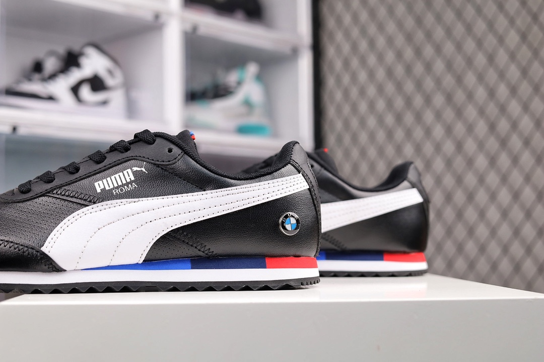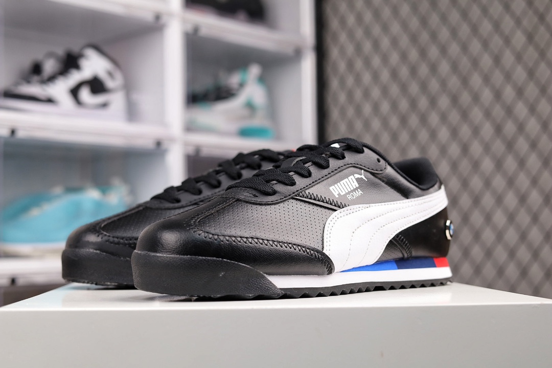 G0 公司级 赛道精神街头风,联乘著名全球汽车制造BMW宝马赛车运动系列 x Puma Roma M Motorsport 罗马阿莫尔系列低帮复古运动休闲赛车跑鞋“皮革黑白宝蓝红BMW宝马”×663ZJR货号:306868-01尺码:36 37 37.5 38 38.5 39 40 40.5 41 42 42.5 43 44 45