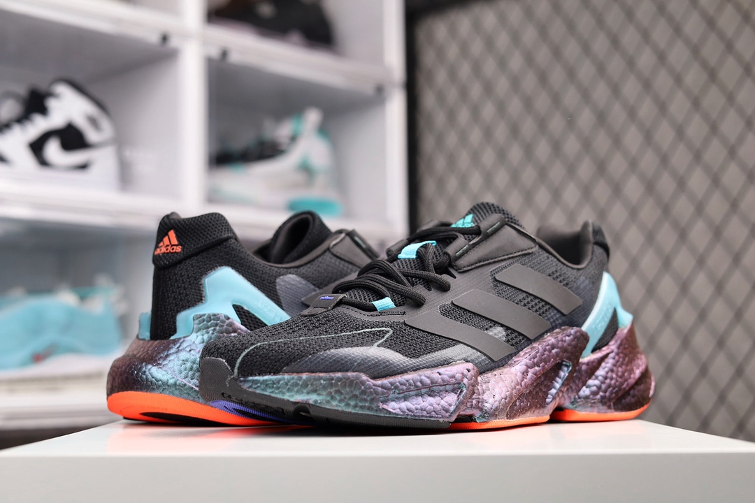 G0 Adidas Boost X F5 00L4 W全新99系列复古爆米花跑鞋整体造型极具速度感,与 Adidas ZX 系列相似的硬挺廓形。 鞋面以织面材质,搭配热固橡胶装饰,三角形贴面让鞋身呈现出满满的科技感与力量感。 中底以夸张的前后掌厚度差呈现,锯齿状廓形,后跟向外大幅延伸,设计非常拉风。 另外,这双鞋的外底花纹构成也非常独特,致密的小方格纹深浅不一。 前掌外沿还配有特殊处理的稳固模块,搭配 Boost 中底材质×336XQ