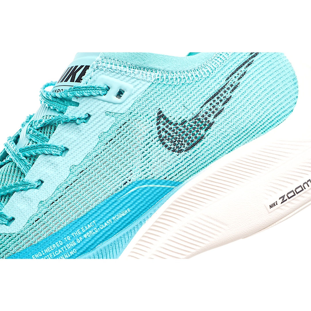 G0 Nike ZoomX Vaporfly NEXT% 最强跑鞋这款新一代最强跑鞋在鞋面和鞋底都进行了全方位升级。鞋面使用了全新 Vaporweave 科技,这种类似蝉翼的材质相比 Flyknit 更加轻薄透气,更重要的是避免了鞋面吸收汗水和雨水,中底方面,除了延续全掌铲型碳板,中底 ZoomX 泡棉增容 15% 之多,形态上与 Vaporfly Elite 更为相似,但重量并没有增加