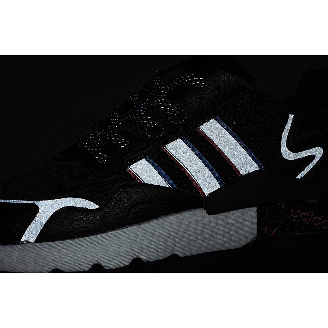 G5 Adidas 阿迪达斯 Nite Jogger Boost 夜行者3M反光 真爆大底复古跑鞋 原厂材料 原厂大底 私家独模 网布搭配麂皮拼接打造鞋面 极具复古风格 鞋头及鞋跟点缀3M反光 设计极为亮眼 中底采用全掌 Boost 科技 厚度相当可观 脚感极佳