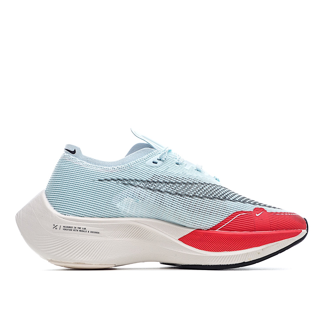H0 原装级别 NK ZoomX Vaporfly NEXT% 最强跑鞋这款新一代最强跑鞋在鞋面和鞋底都进行了全方位升级。鞋面使用了全新 Vaporweave 科技,这种类似蝉翼的材质相比 Flyknit 更加轻薄透气,更重要的是避免了鞋面吸收汗水和雨水,中底方面,除了延续全掌铲型碳板,中底 ZoomX 泡棉增容 15% 之多,形态上与 Vaporfly Elite 更为相似,但重量并没有增加
