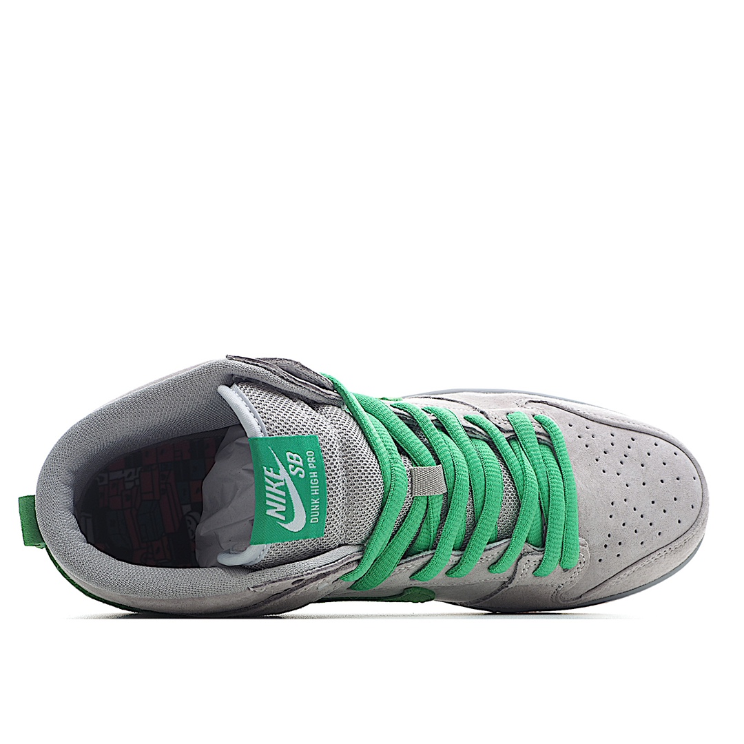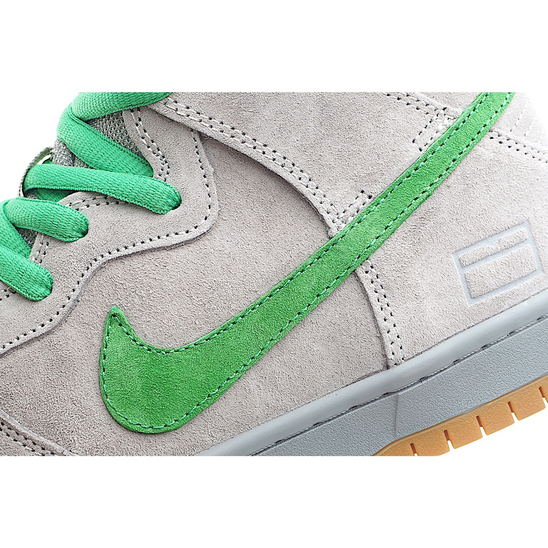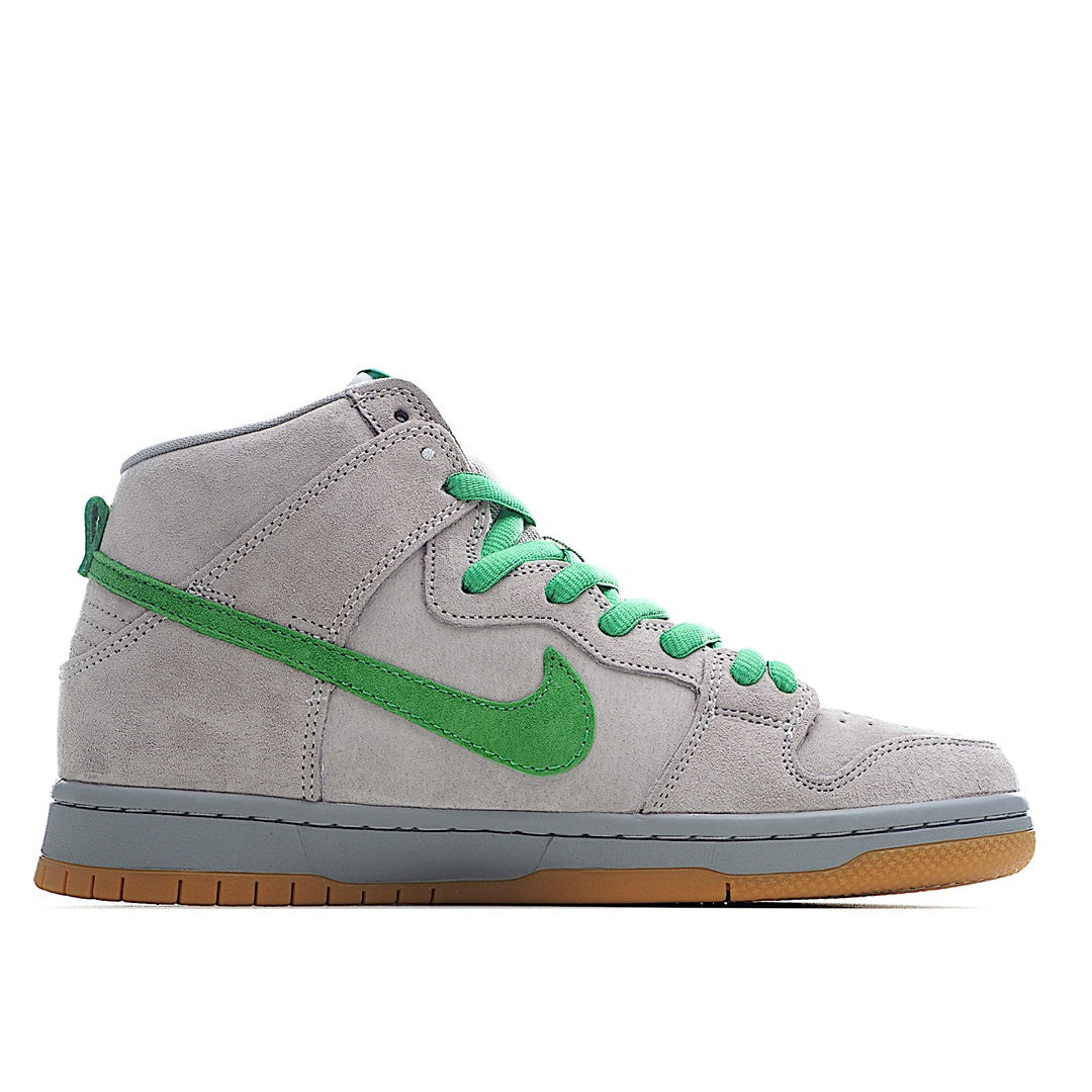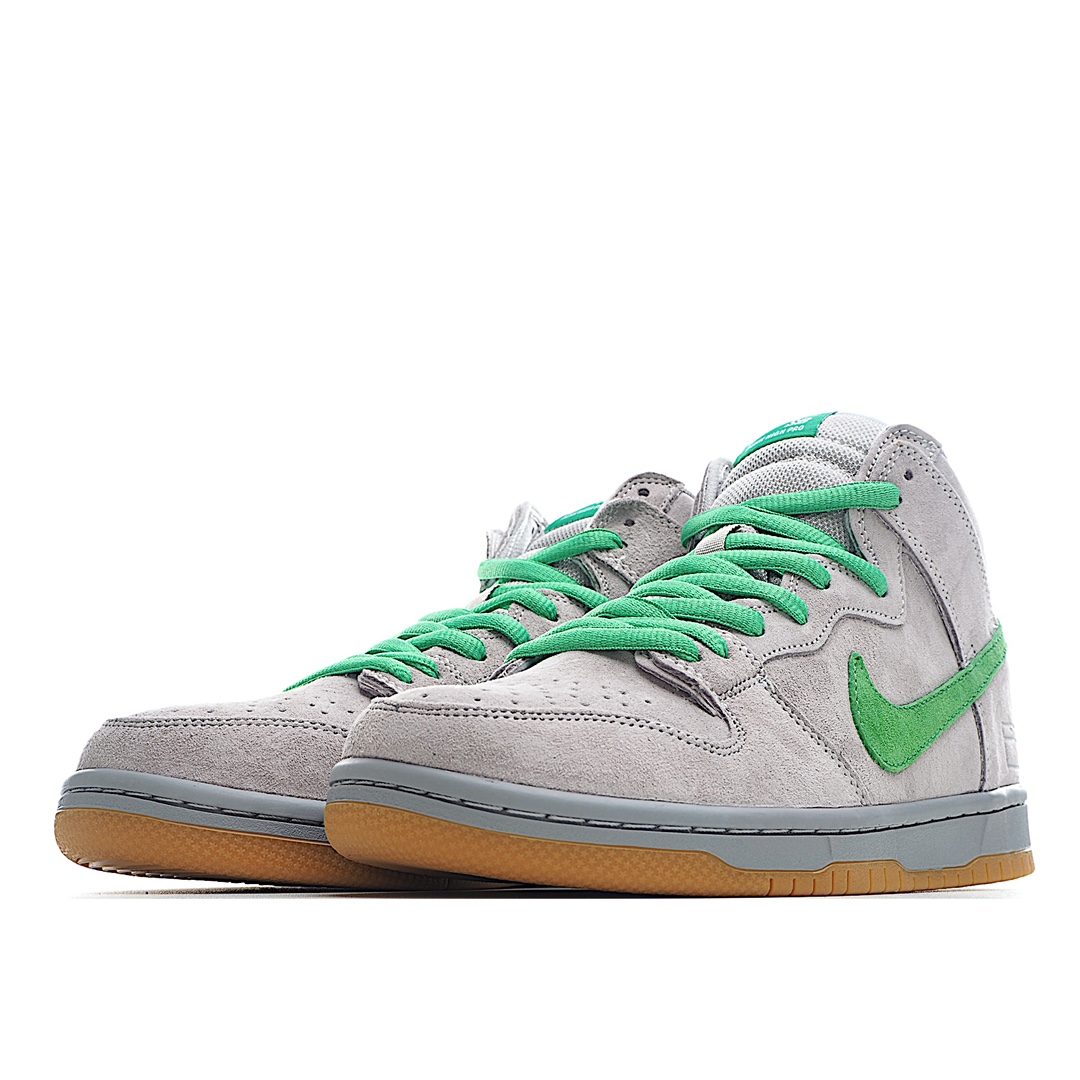 I0 Nike Dunk High Premium SB “Grey Box” 银盒 313171-039这一 特别版本以 Nike SB 早期的鞋盒外观作为灵感来源,在经典的 Dunk SB High 高帮鞋型基础上,选用了优质的牛巴革打造鞋身,银灰色的整体色调,装饰绿色的 Swoosh、鞋带等细节,在百搭的清爽气质之下,依然有着十足的亮眼效果