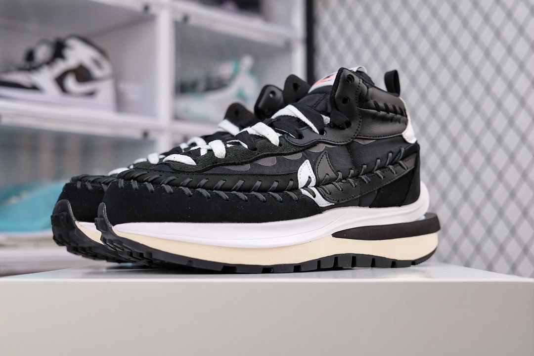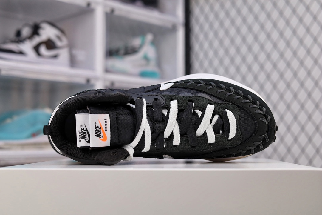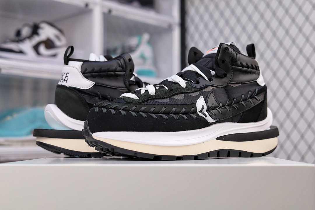 J5 纯原级别 Jean Paul Gaultier x sacai x Nike VaporWaffle “Black”WSD配色方案:Black/Black-White它由皮革,尼龙和绒面革混合制成,在鞋面,双品牌鞋舌和鞋垫上的白色中底和黑色橡胶外底上均添加了棒球手套风格的缝线诸多匠心细节令跑者的过去和未来在这里交汇结合;舒适稳固的鞋面巧搭经典华夫格外底,塑就具有开创性的 sacai 前卫造型,同时为你的双足带来舒适贴合感受。鞋款