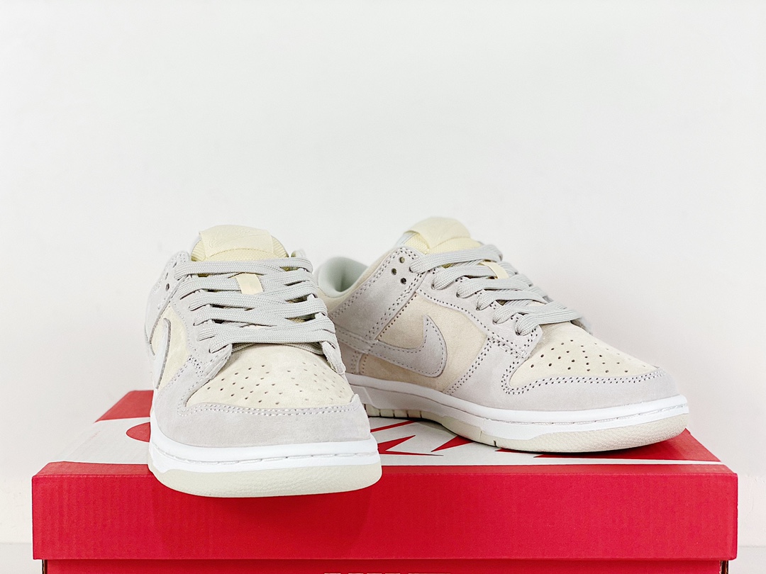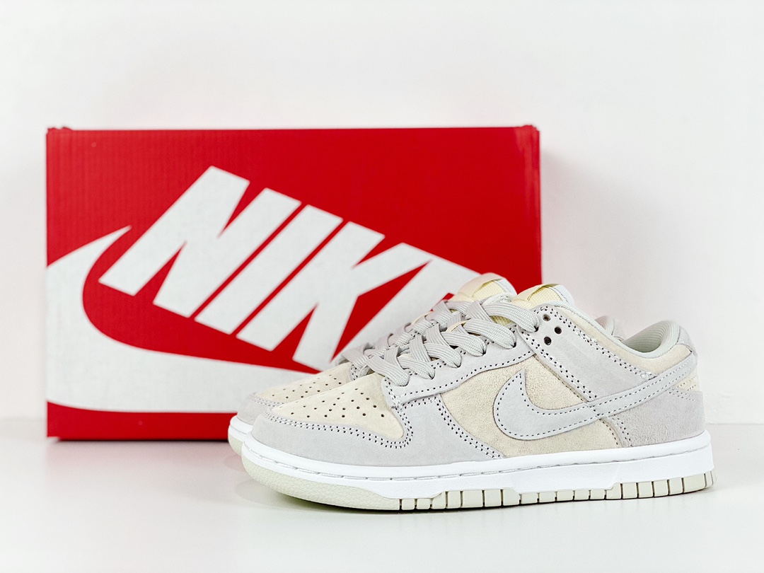 H0 ,主推私整双鞋以低帮方式呈现,鞋面采用绒面革打造,织物材质点缀内衬,丰富鞋身细节。配色方案使用浅灰搭配米黄,两种柔和色调作为选择,适配时下流行的 Vibe 风格穿搭,整体呈现简洁的视觉效果。外底沿袭 Dunk Low 一贯设计,搭配后跟经典刺绣,保留原始味道,复古感直接拉满货号:DD8338-001尺码:36 36.5 37.5 38 38.5 39 40 40.5 41 42 42.5 43 44 44.5 45