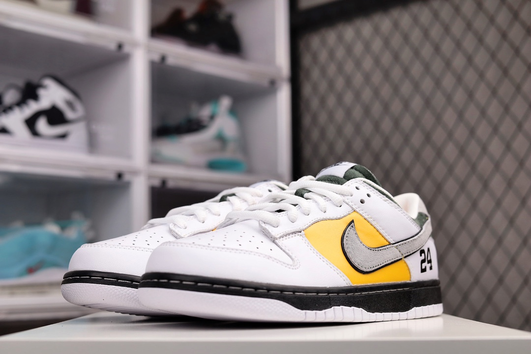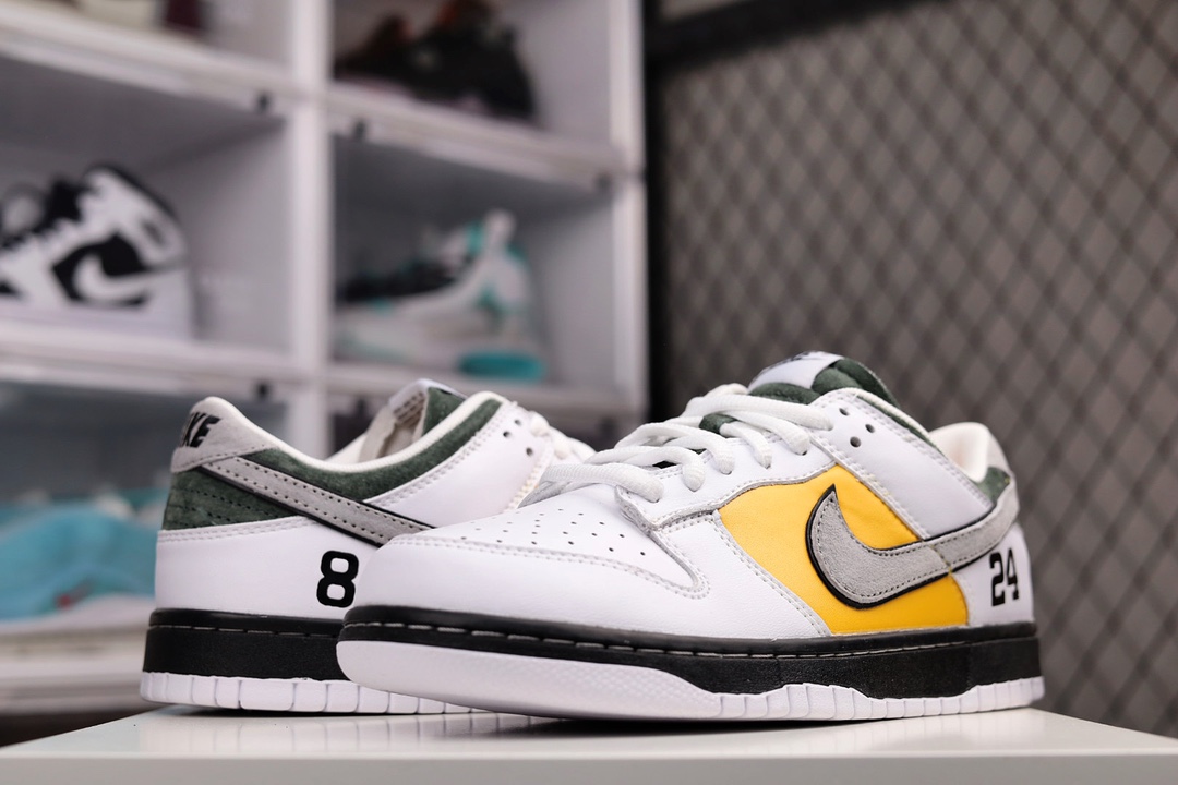 H0 Kobe Bryant x Nike SB Dunk Low”8·24″扣篮系列低帮休闲运动滑板板鞋“拼接白黄深绿灰”货号:LF2428-001YN尺码:36 36.5 37.5 38 38.5 39 40 40.5 41 42 42.5 43 44 44.5 45 46