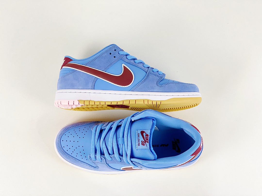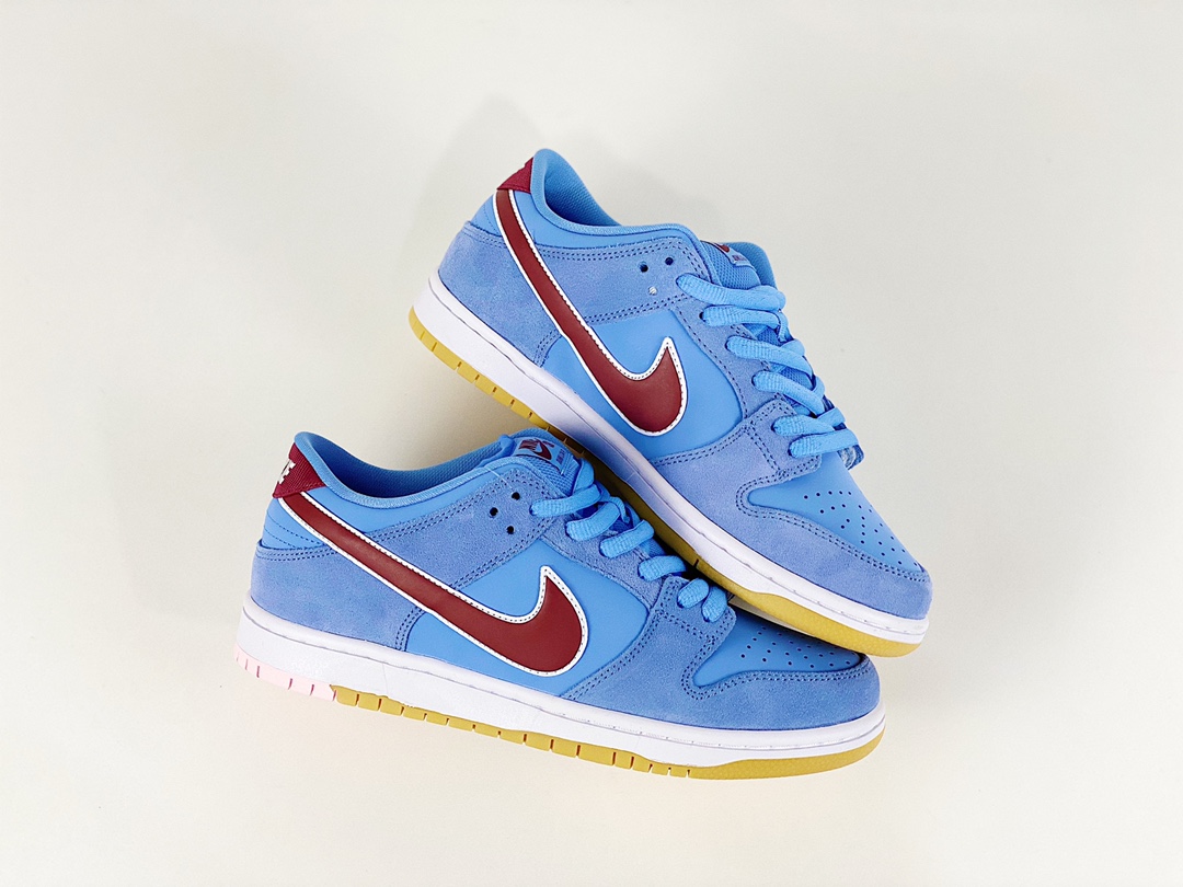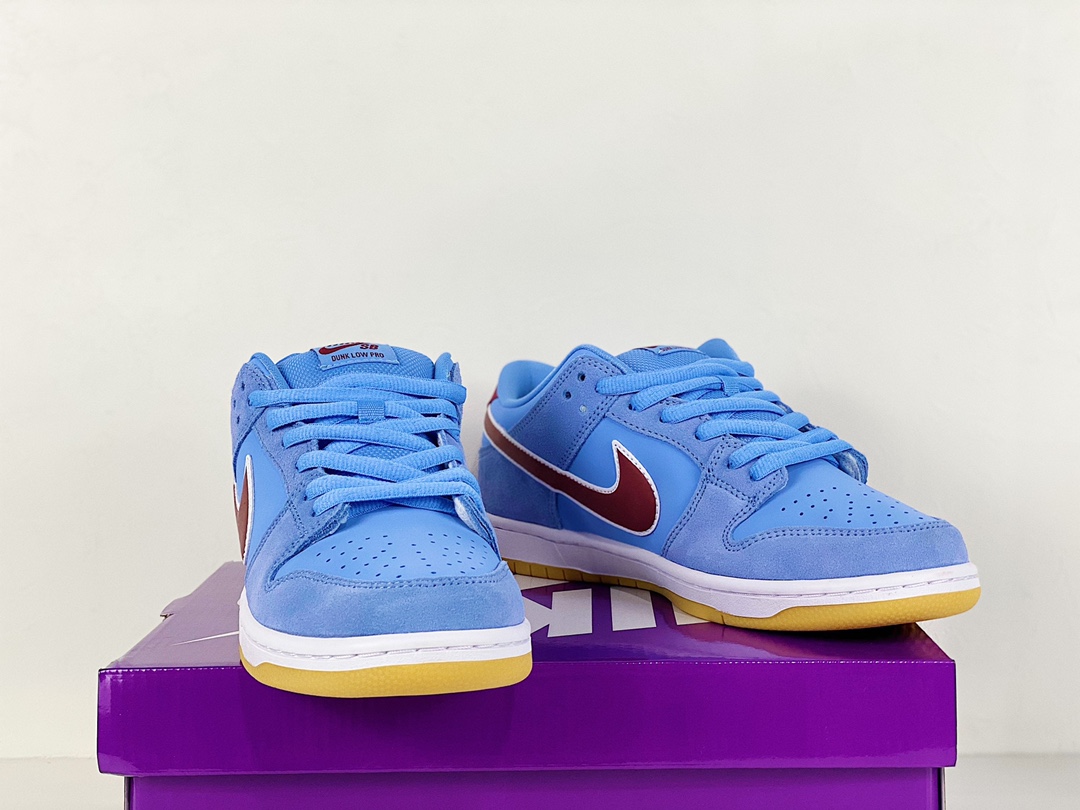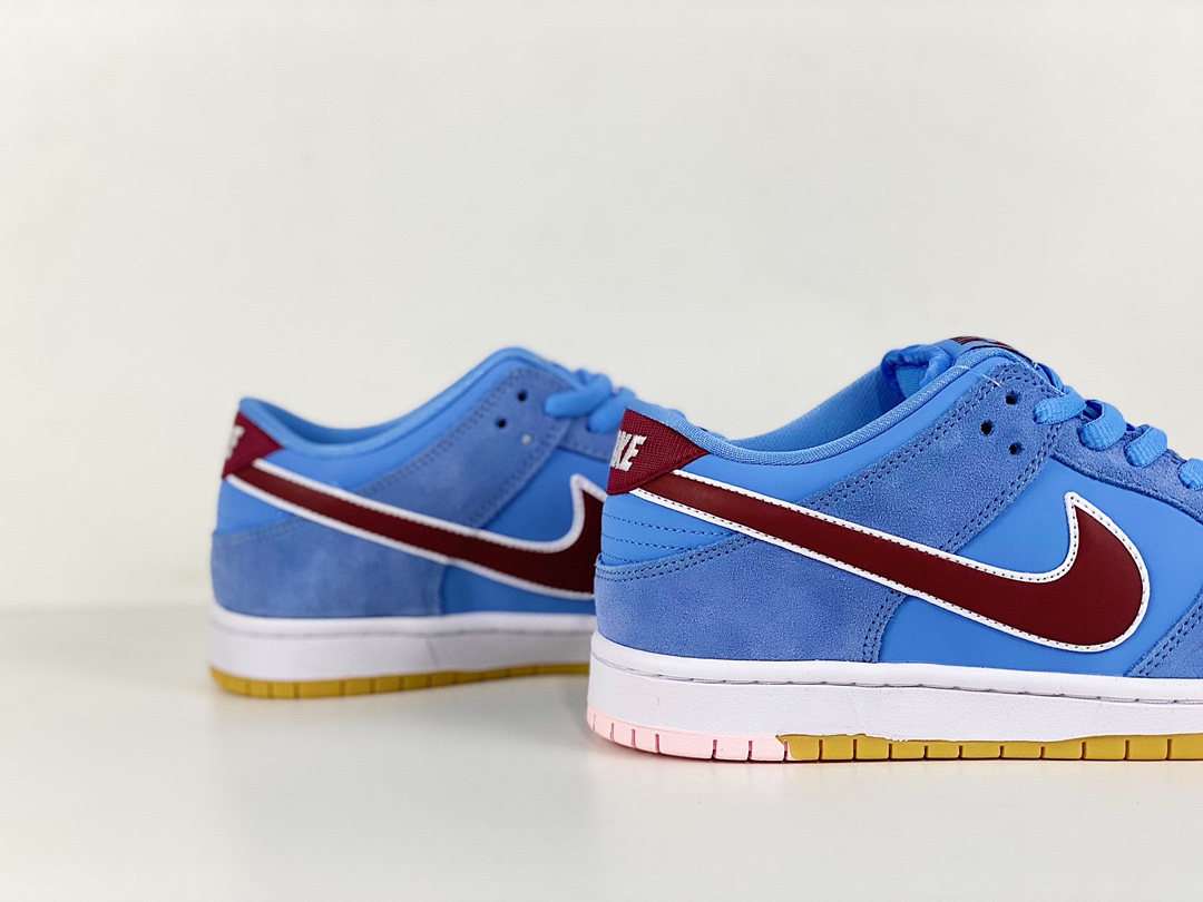 I5 ,主推私公司级Nk SB Dunk Low “Phillies” 泡泡糖该鞋款灵感来源于MLB费城费城人队的 F5 年代队服,鞋身整体以麂皮材质打造,配色方面以大面积蓝色为主色调呈现,十分亮眼货号:DQ4040- K0 尺码 :36-45