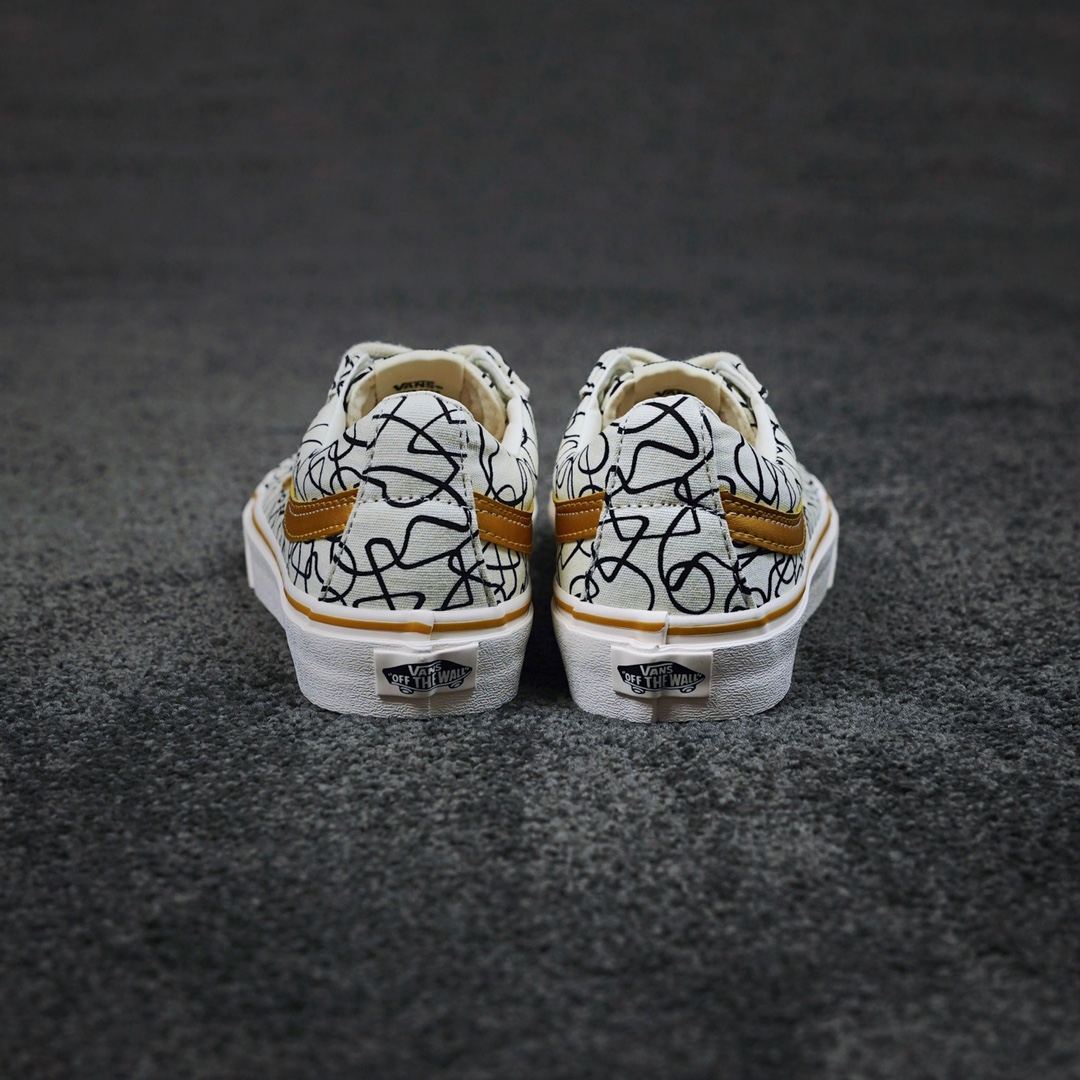 The Textured Waves x Vans Sk8 Low Reissue Sf 万斯TTW联名款 纹理波涂鸦 白金此次双方推出的联名款,打造出升级的舒适系带风格,采用坚固的纺织鞋面,并赋予通体纹理波条纹,艺术气息扑面而来。