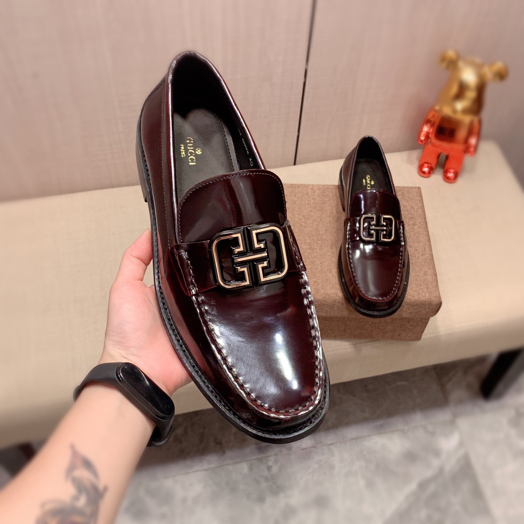 皮鞋 J0 古奇* 最新•爆款休闲商务皮鞋,顶端品牌 奢侈~代购,顶级~质量。专柜同卖产品 鞋面選用进口透气牛皮材质➕透气牛皮内里•精细做工。原版个性时尚柔软橡膠耐磨防滑大底,上脚轻巧舒适,实物拍摄🎬實物更好看,136广州码: 35-44。黑色,棕红色