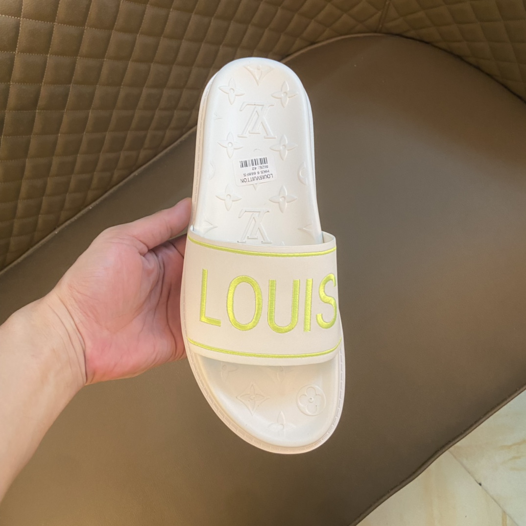 I0 LOUlS VUlTTON路易威登~独特现代风凉鞋。Louis Vuitton专柜代购🏃休闲拖鞋😍😍 男士2022专柜同步发售,意大利进口原版品牌精选头层柔软牛皮 柔软 拒绝脱色磨脚鞋底:原厂特供原版底,鞋面原单LOGO 法国懒人风格设计 ⚠️ 懒人沙滩鞋 一脚蹬一字拖 原单品质 超舒服原版底 🎬实物更赞 适合户外司机驾车完美🚗🚗 高品质板鞋,男鞋码数:38-44 45码可定制 黑色白色 金色 多色可🉑️选 一系列鞋面 一字拖