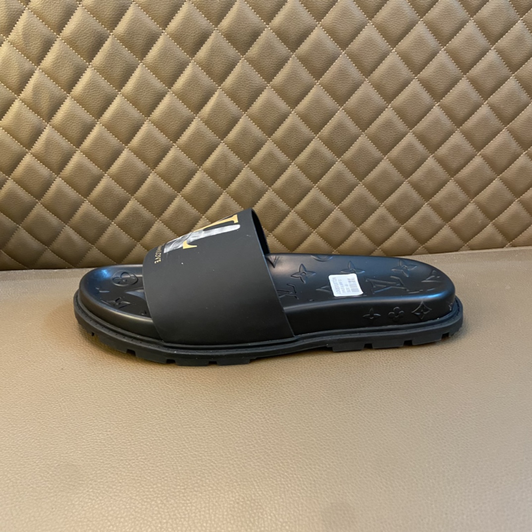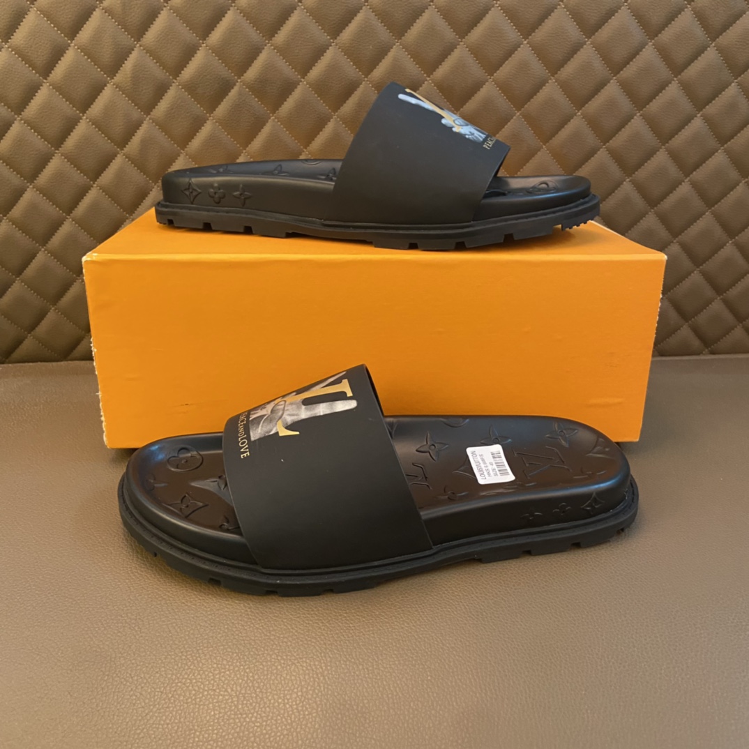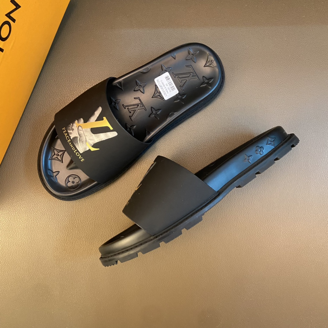 I0 LOUlS VUlTTON路易威登~独特现代风凉鞋。Louis Vuitton专柜代购🏃休闲拖鞋😍😍 男士2022专柜同步发售,意大利进口原版品牌精选头层柔软牛皮 柔软 拒绝脱色磨脚鞋底:原厂特供原版底,鞋面原单LOGO 法国懒人风格设计 ⚠️ 懒人沙滩鞋 一脚蹬一字拖 原单品质 超舒服原版底 🎬实物更赞 适合户外司机驾车完美🚗🚗 高品质板鞋,男鞋码数:38-44 45码可定制 黑色白色 金色 多色可🉑️选 一系列鞋面 一字拖