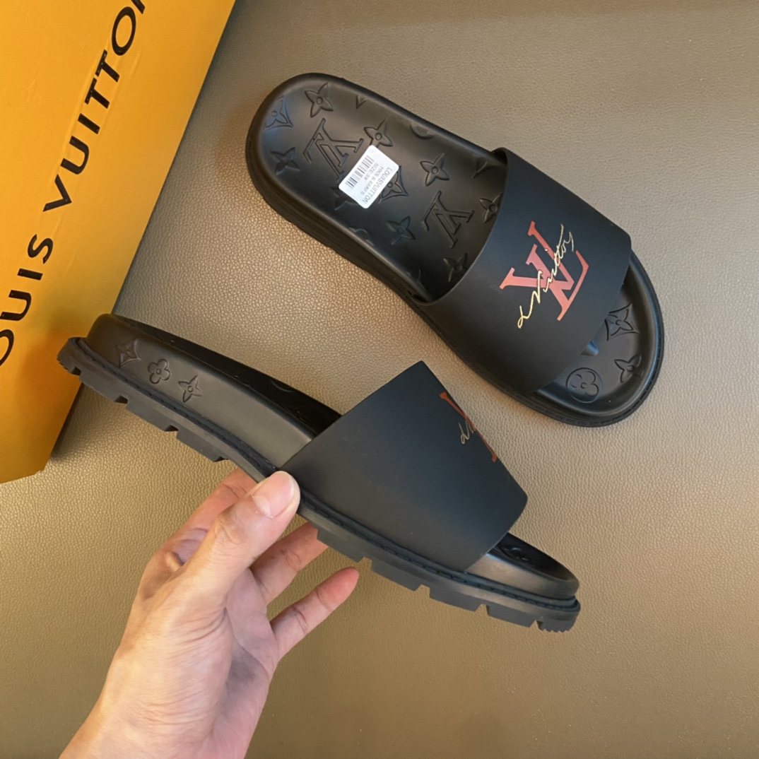 I0 LOUlS VUlTTON路易威登~独特现代风凉鞋。Louis Vuitton专柜代购🏃休闲拖鞋😍😍 男士2022专柜同步发售,意大利进口原版品牌精选头层柔软牛皮 柔软 拒绝脱色磨脚鞋底:原厂特供原版底,鞋面原单LOGO 法国懒人风格设计 ⚠️ 懒人沙滩鞋 一脚蹬一字拖 原单品质 超舒服原版底 🎬实物更赞 适合户外司机驾车完美🚗🚗 高品质板鞋,男鞋