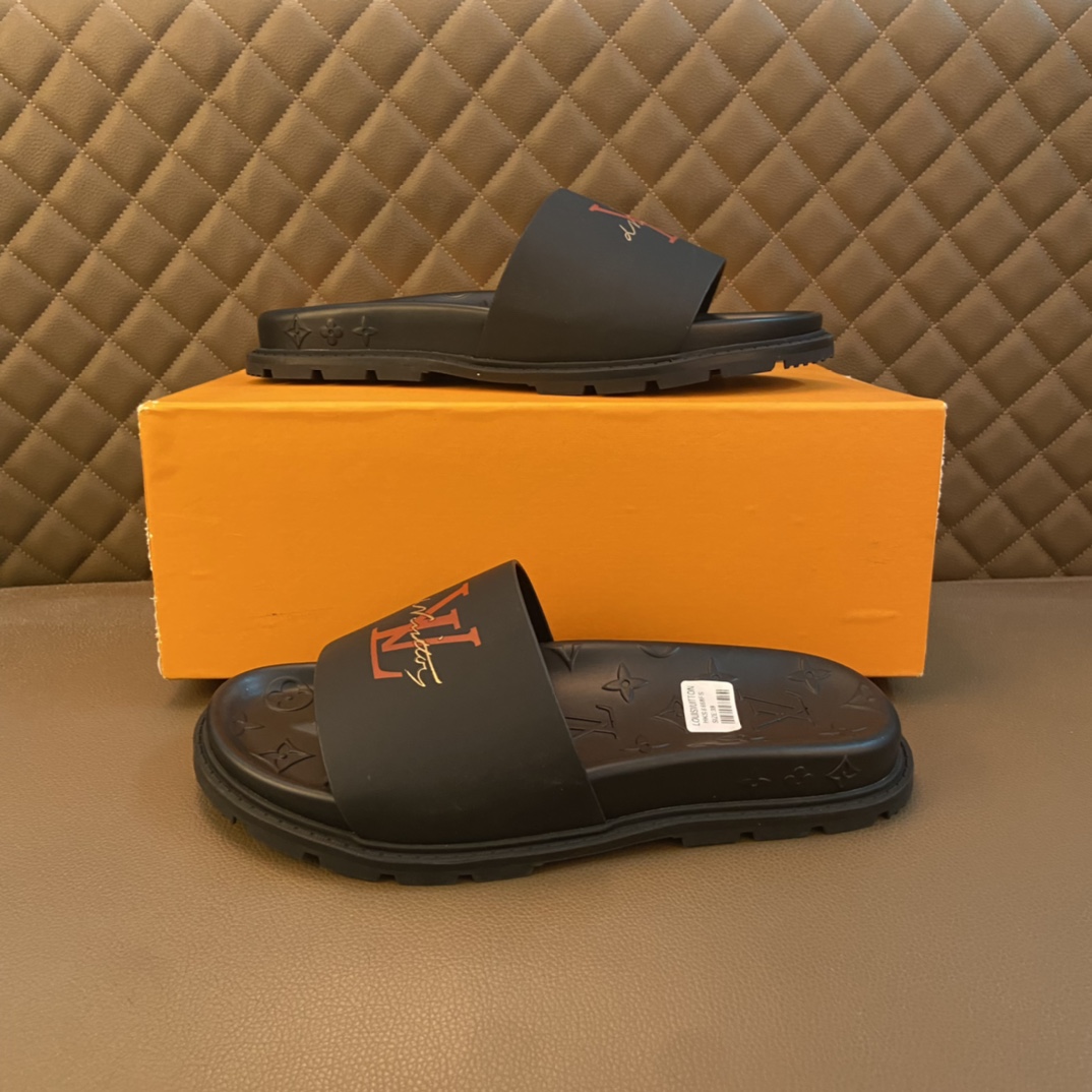 I0 LOUlS VUlTTON路易威登~独特现代风凉鞋。Louis Vuitton专柜代购🏃休闲拖鞋😍😍 男士2022专柜同步发售,意大利进口原版品牌精选头层柔软牛皮 柔软 拒绝脱色磨脚鞋底:原厂特供原版底,鞋面原单LOGO 法国懒人风格设计 ⚠️ 懒人沙滩鞋 一脚蹬一字拖 原单品质 超舒服原版底 🎬实物更赞 适合户外司机驾车完美🚗🚗 高品质板鞋,男鞋码数:38-44 45码可定制 黑色白色 金色 多色可🉑️选 一系列鞋面 一字拖