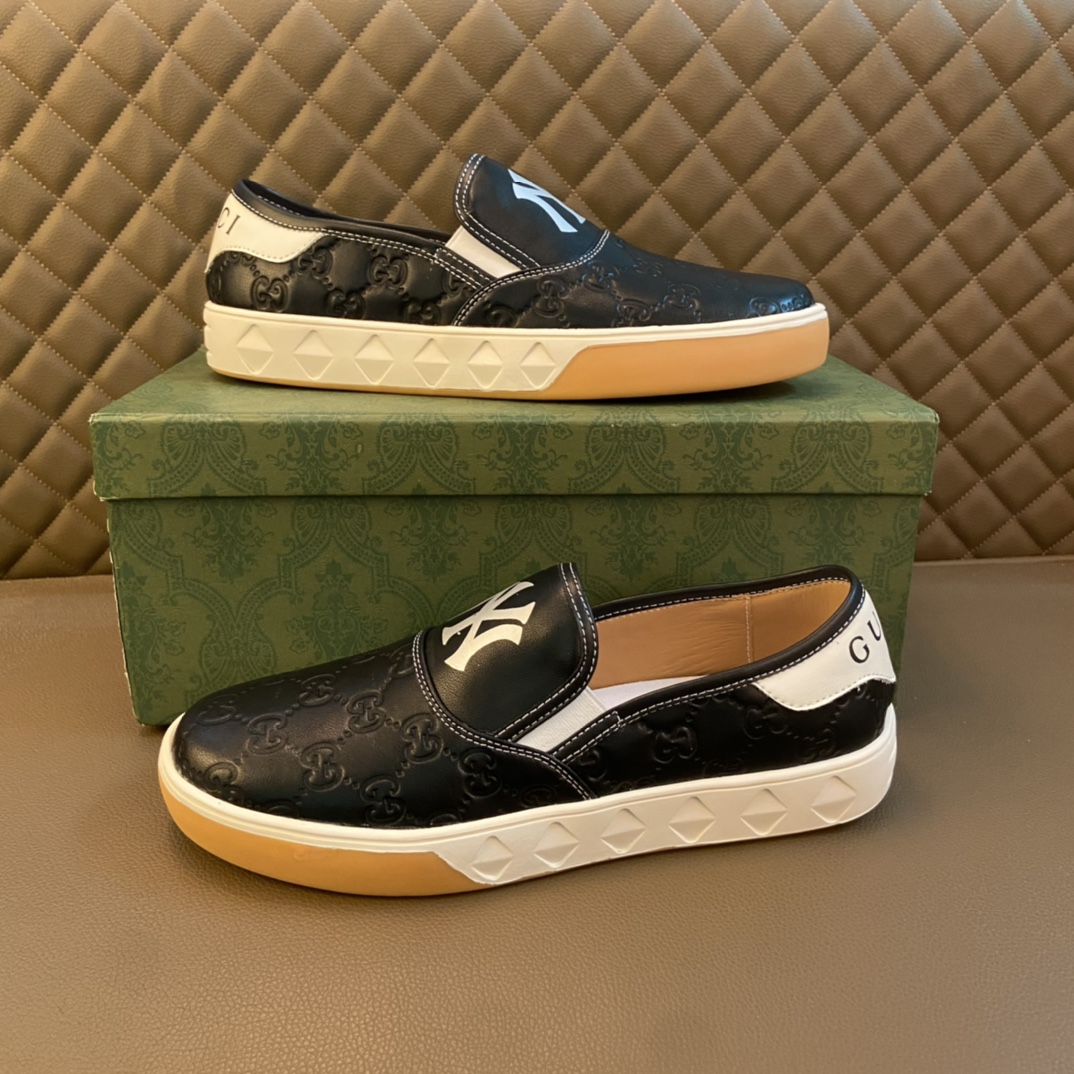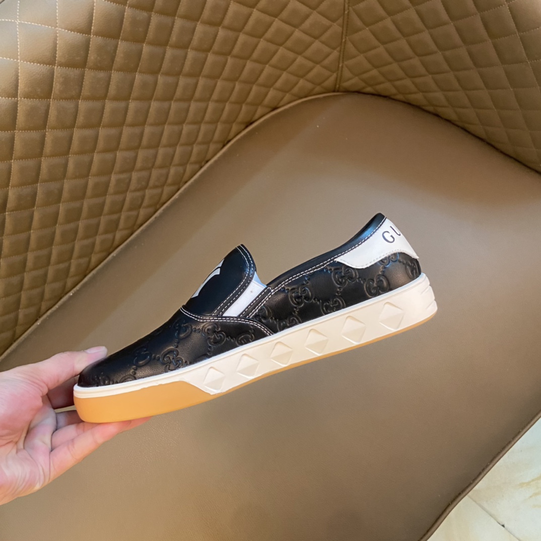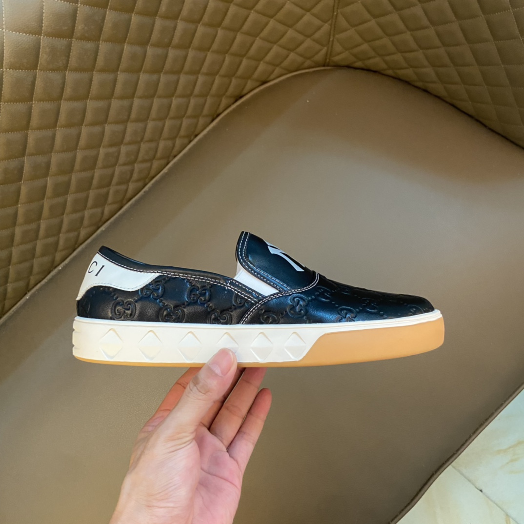 I5 官网爆款🔥Gucci 古奇高•版本~”青年休闲潮人风😍😍 男士2022专柜同步发售,夏季男鞋 意大利进口原版品牌精选头层意大利牛皮 羊皮内里拒绝脱色磨脚鞋底:原厂压纹 原版底,⚠️法国风格 ⚠️,原单品质 超舒服原版底 驾车完美。实物拍摄🎬实物更赞 适合户外司机驾车出行🚗🚗 跑步鞋🏃 男鞋码数:38-44 45可定做 黑色 白色 🉑️选