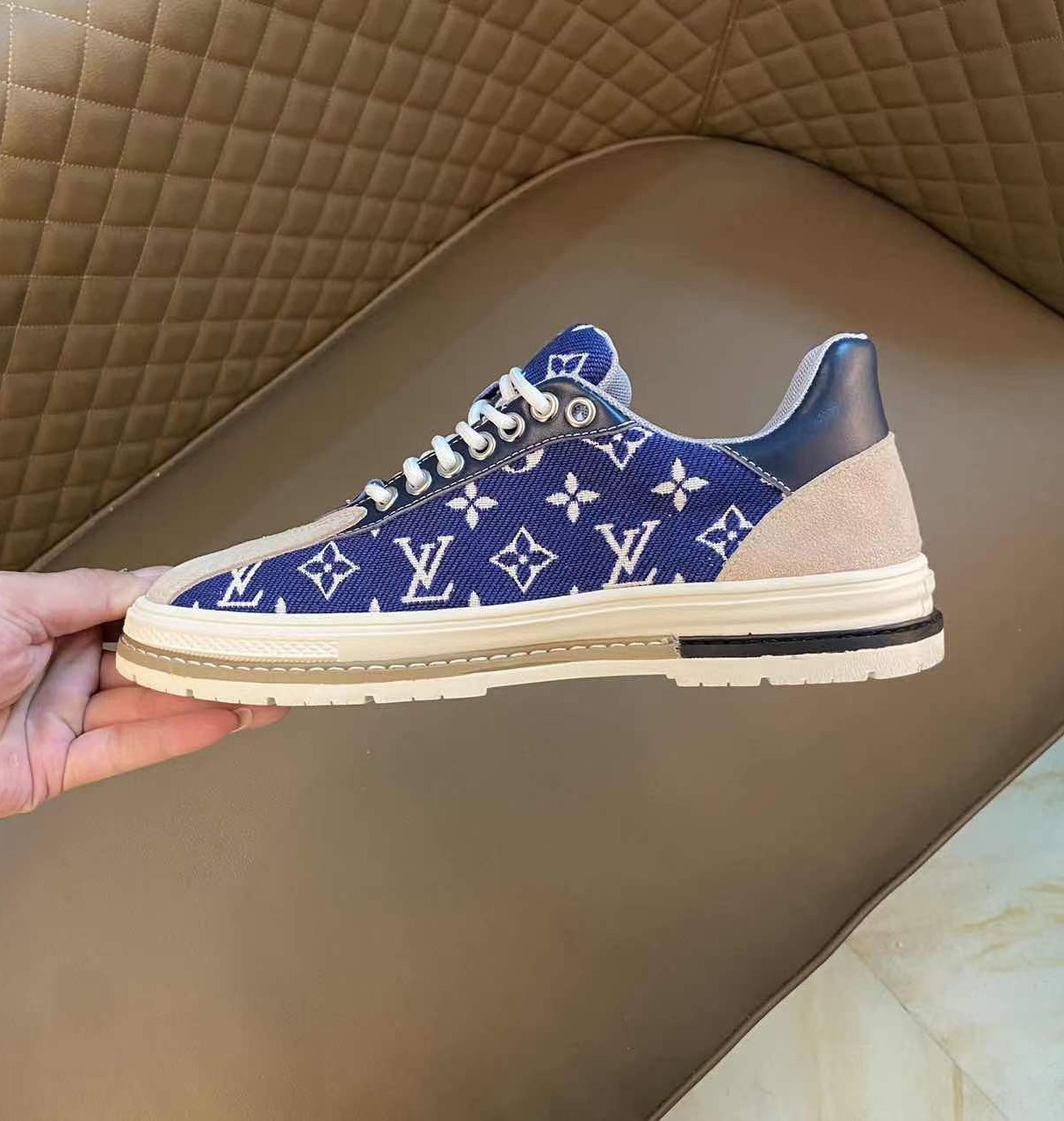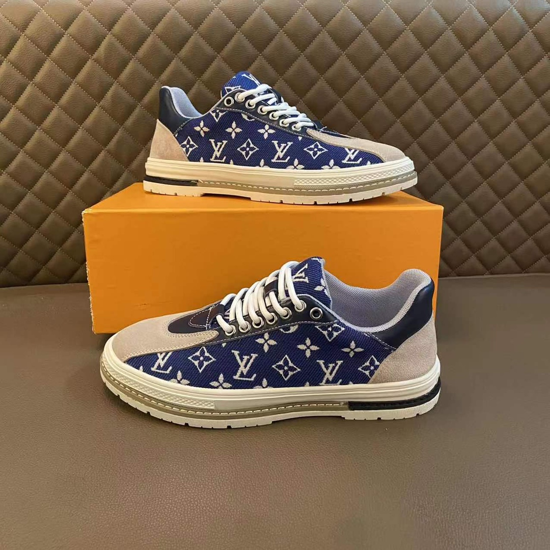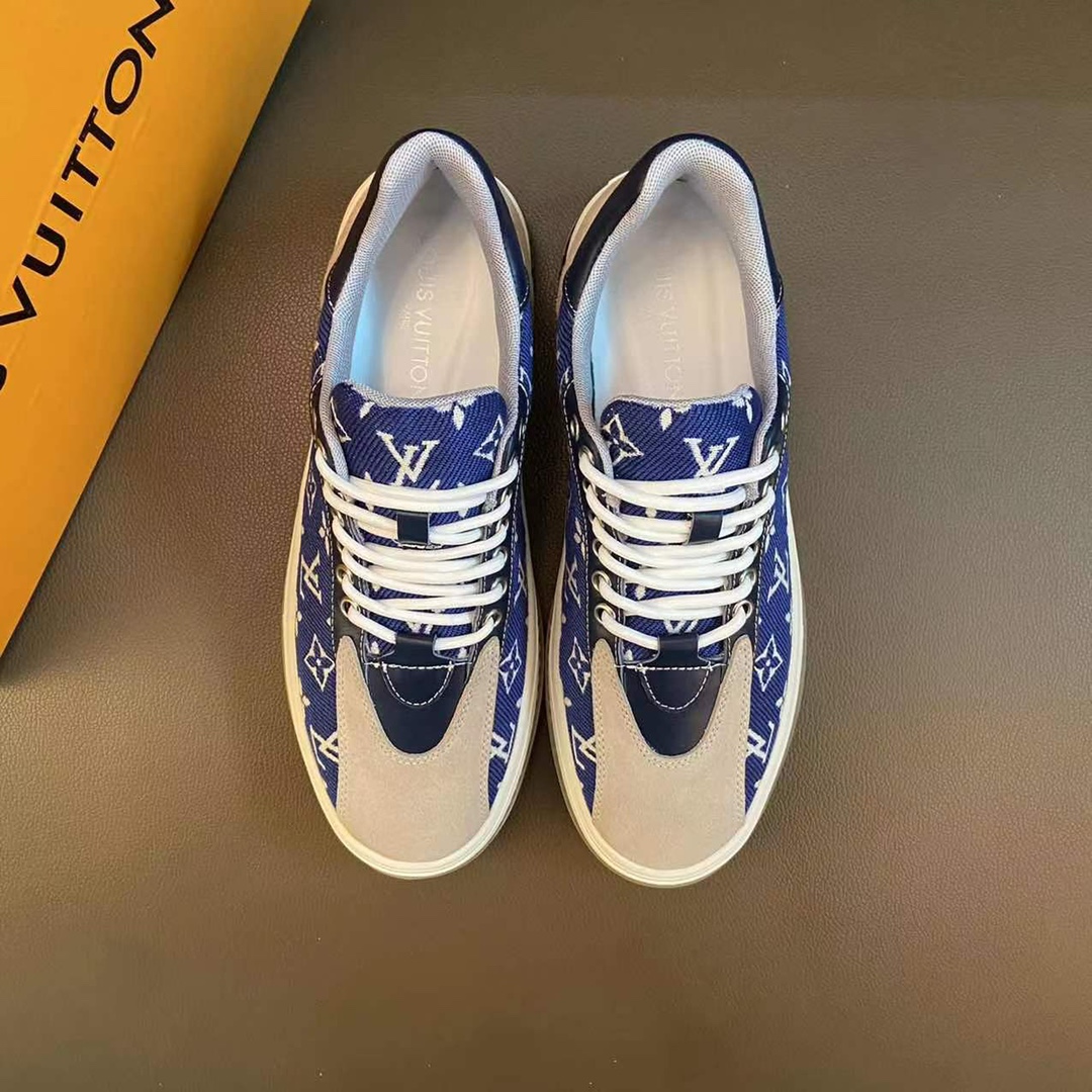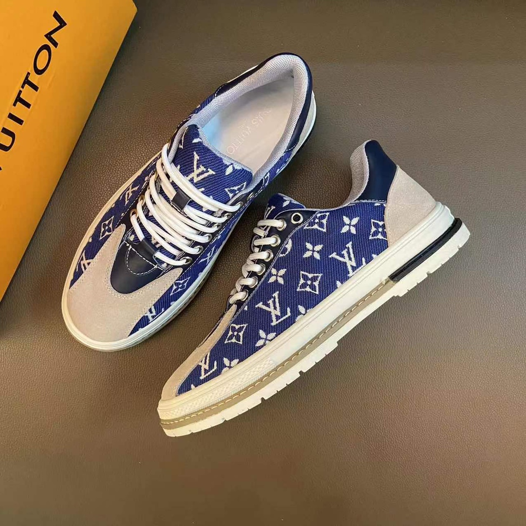 I5 LOUlS VUlTTON路易威登~独特现风运动鞋。Louis Vuitton专柜代购🏃休闲鞋😍😍 男士2022专柜同步发售,鞋面Louis Vuitton压花,意大利进口原版品牌精选头层柔软牛皮。🐑羊皮内里 拒绝脱色磨脚鞋底:原厂特供原版底,法国懒人风格设计 ⚠️原单品质 超舒服原版底 。就好像实物拍摄🎬实物更赞 适合户外司机驾车完美🚗 高品质板鞋,男装男鞋码数:38-44 45可定做 黑色 棕色 白色 蓝色 🉑️选 长期供实体店补货