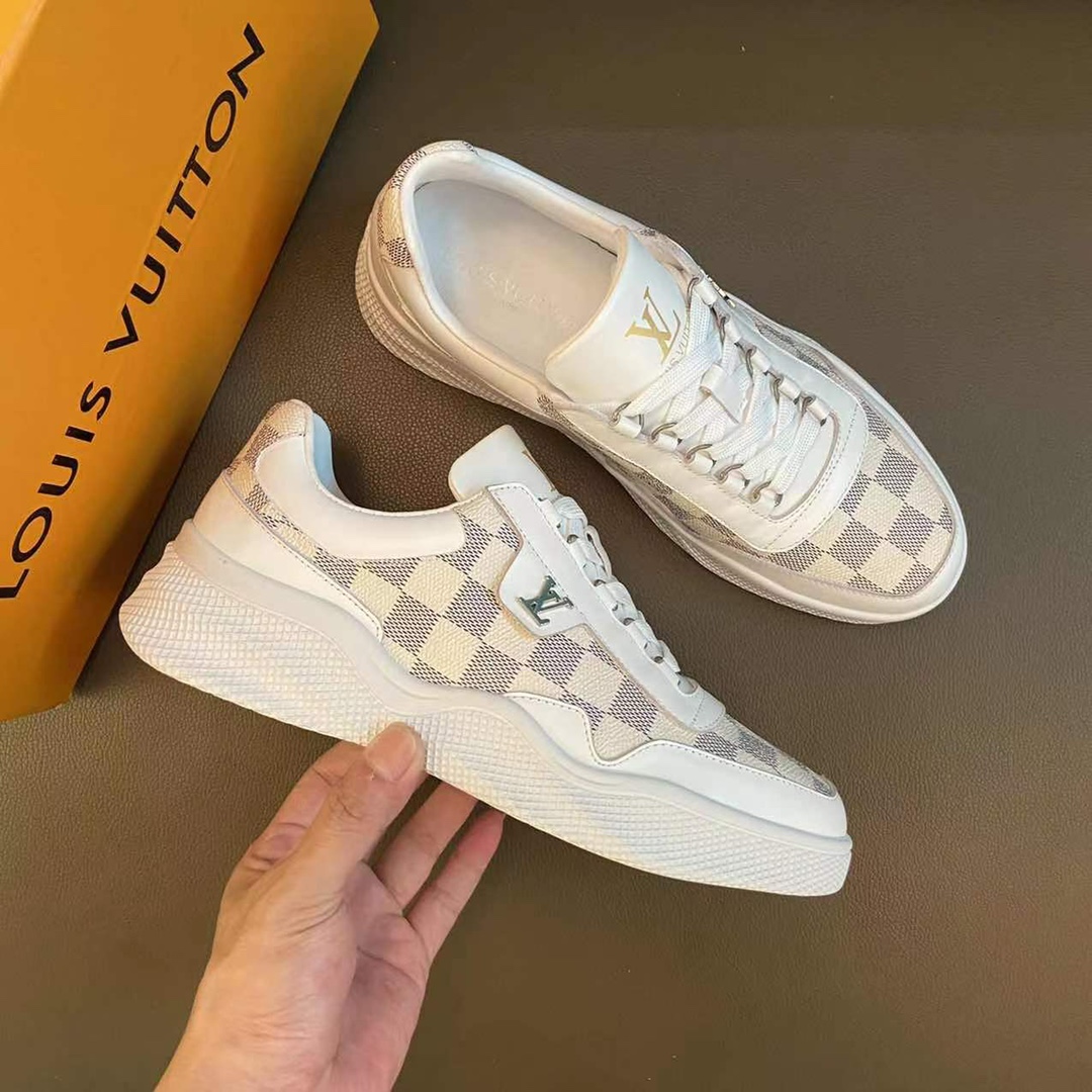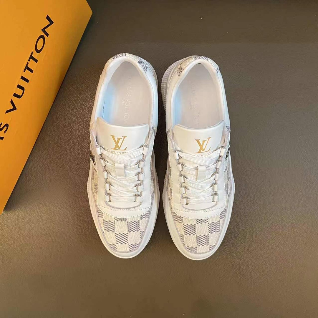 J0 LOUlS VUlTTON路易威登~独特现风运动鞋。Louis Vuitton专柜代购🏃休闲鞋😍😍 男士2022专柜同步发售,鞋面Louis Vuitton压花,意大利进口原版品牌精选头层柔软牛皮。🐑羊皮内里 拒绝脱色磨脚鞋底:原厂特供原版底,法国懒人风格设计 ⚠️原单品质 超舒服原版底 。就好像实物拍摄🎬实物更赞 适合户外司机驾车完美🚗 高品质板鞋,男装男鞋码数:38-44 45可定做 黑色 棕色 白色 蓝色 🉑️选 长期供实体店补货