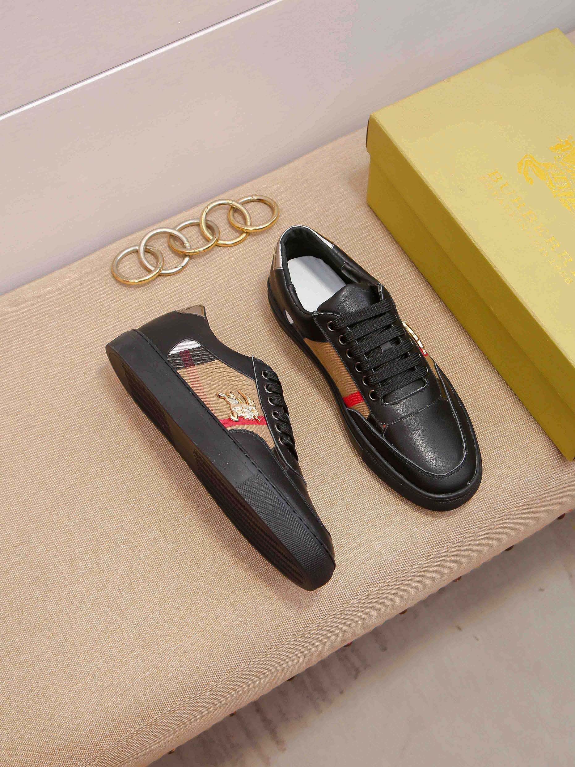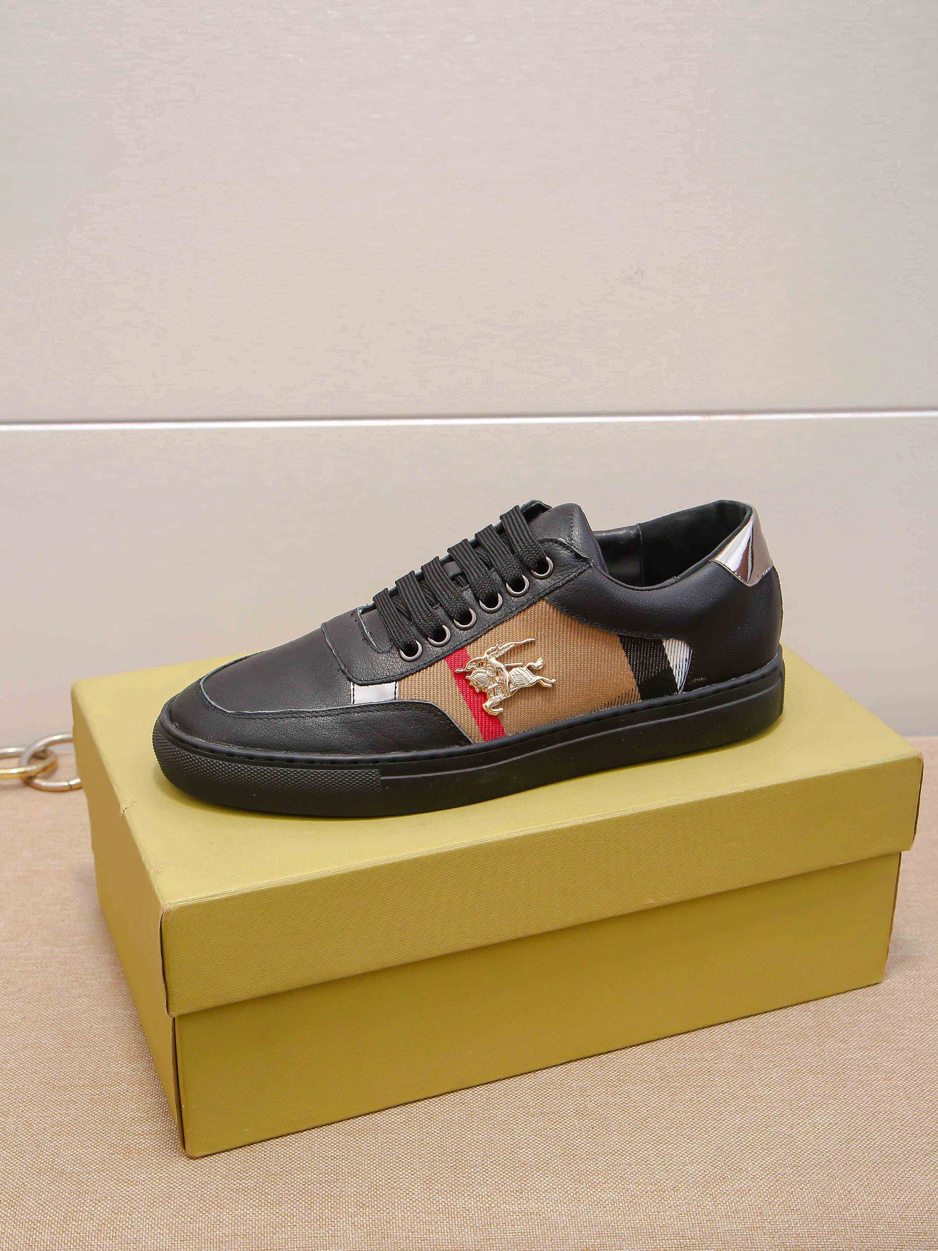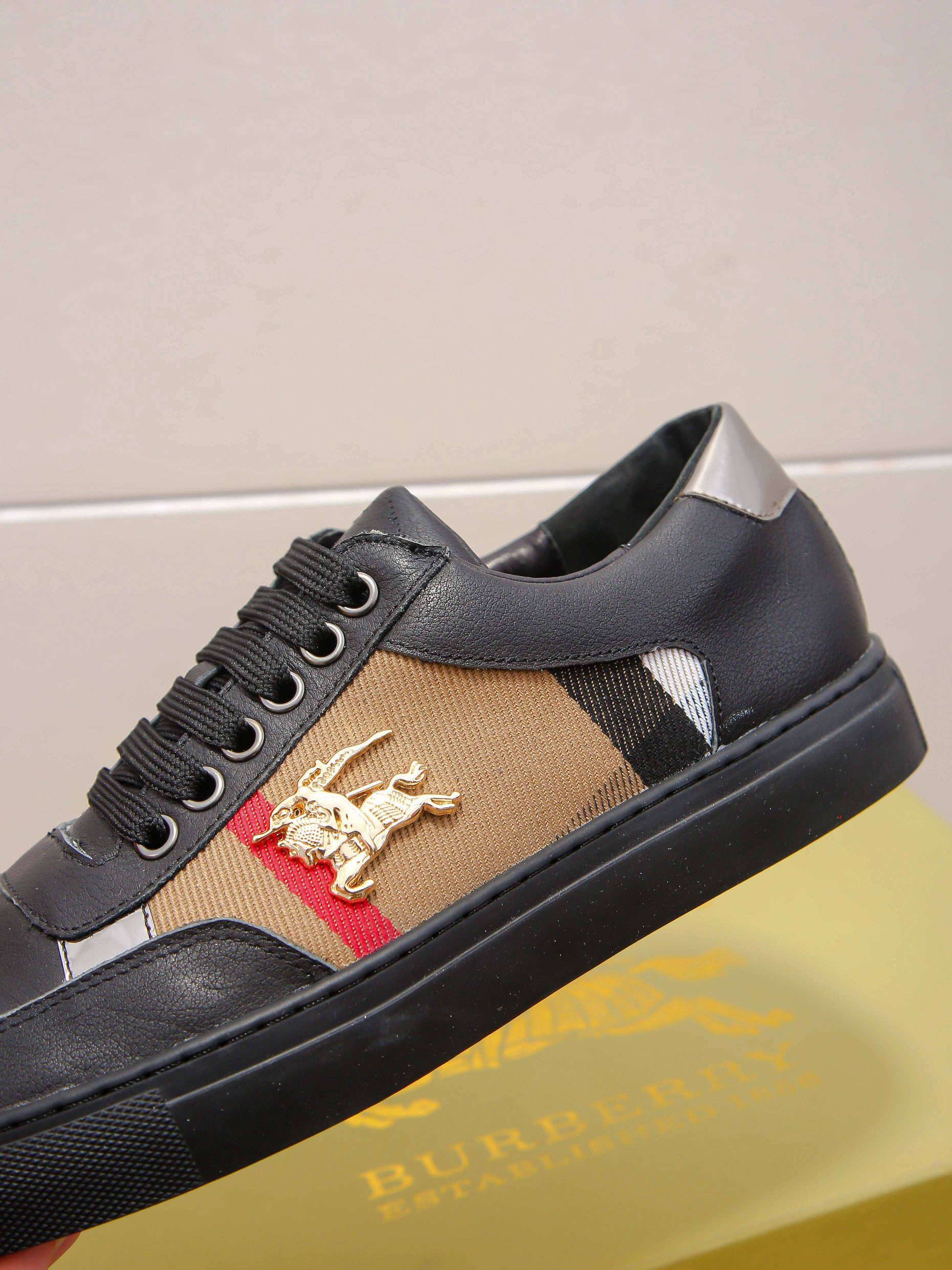 I0 时尚爆款 ⭐️⭐️⭐️潮牌 Burberry 巴宝莉 男士休闲鞋🎈官网同步,鞋面进口牛皮拼接字母布料,简约大气配色,后跟品牌logo装饰,完美版型,极富个性与时尚韵味,🐑羊皮内里⚠️⚠️柔韧耐磨防滑橡胶大底,时尚帅气,尊贵奢华,🚗 👍码数:38-44码