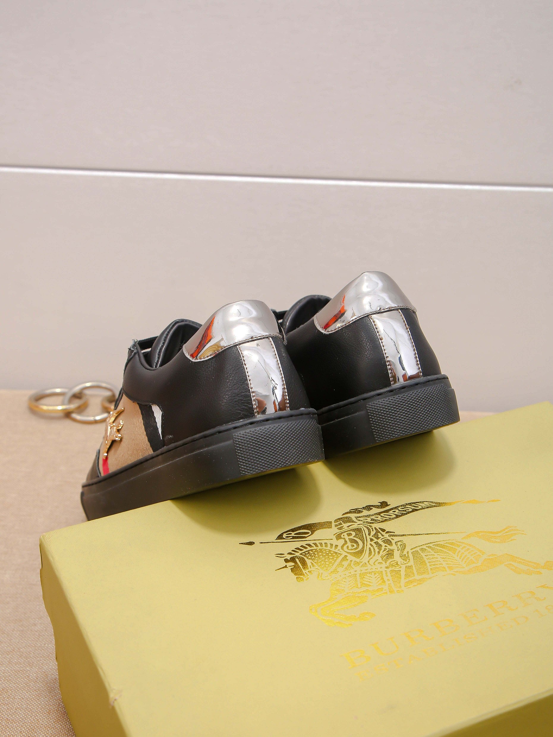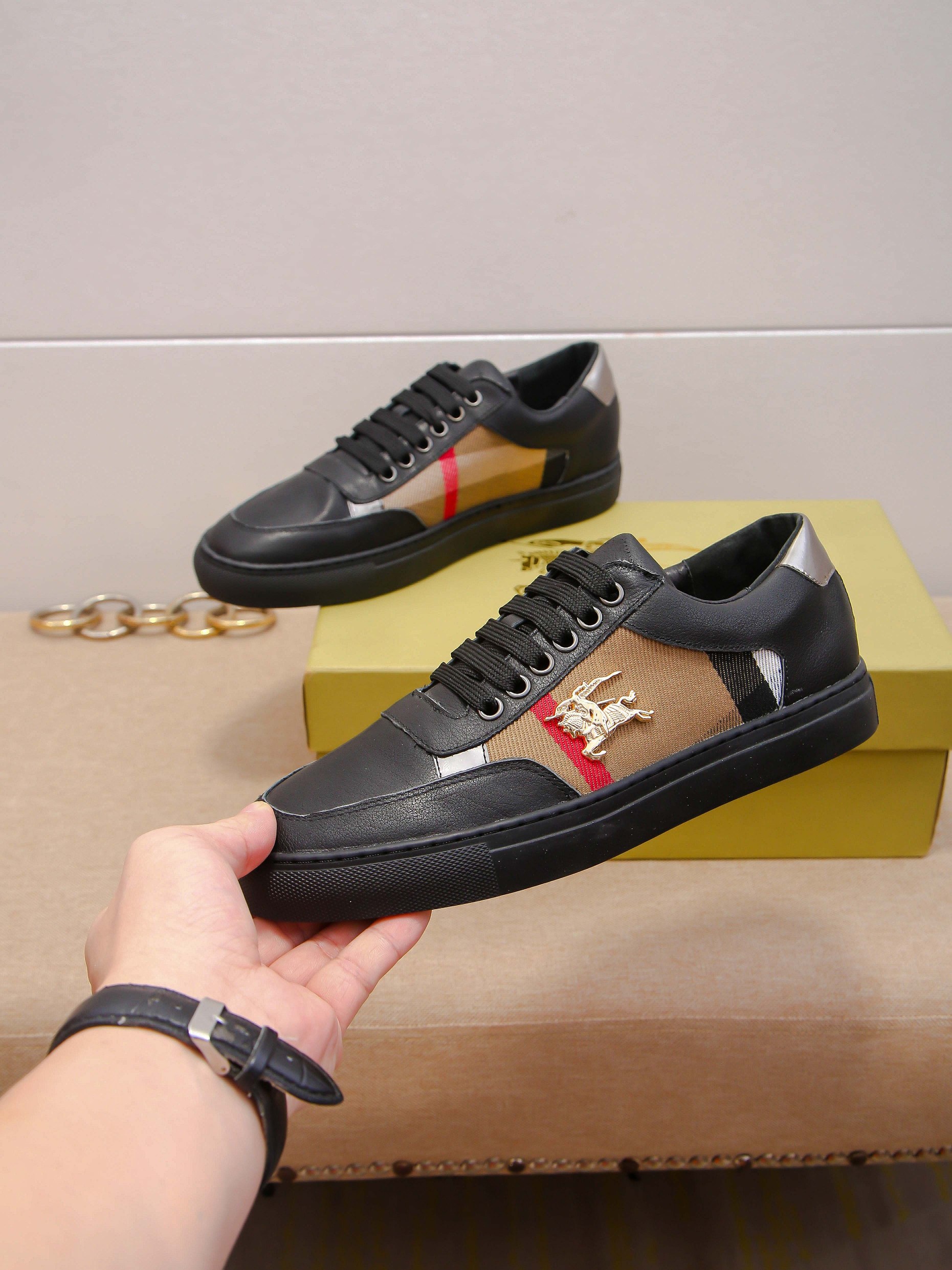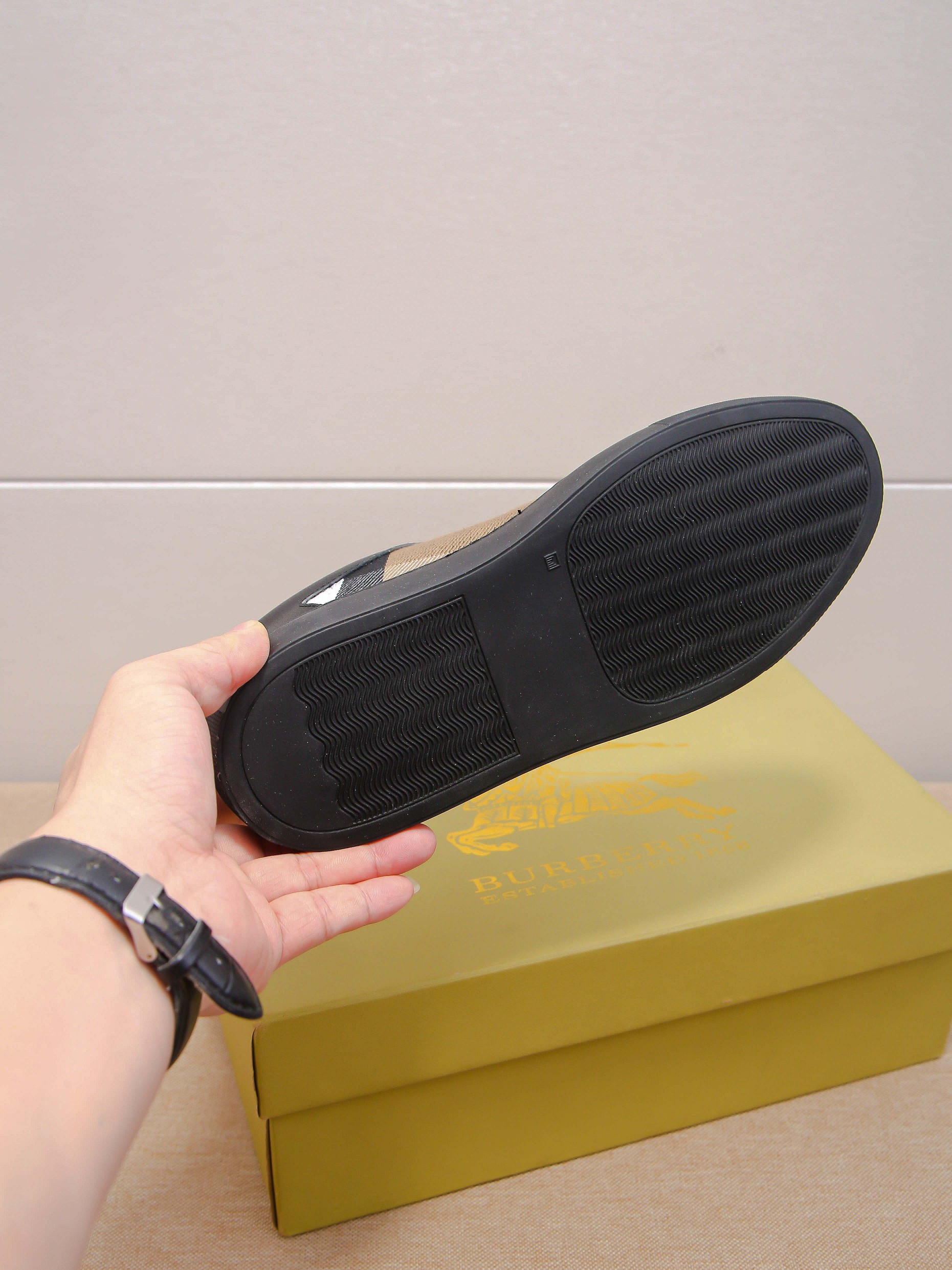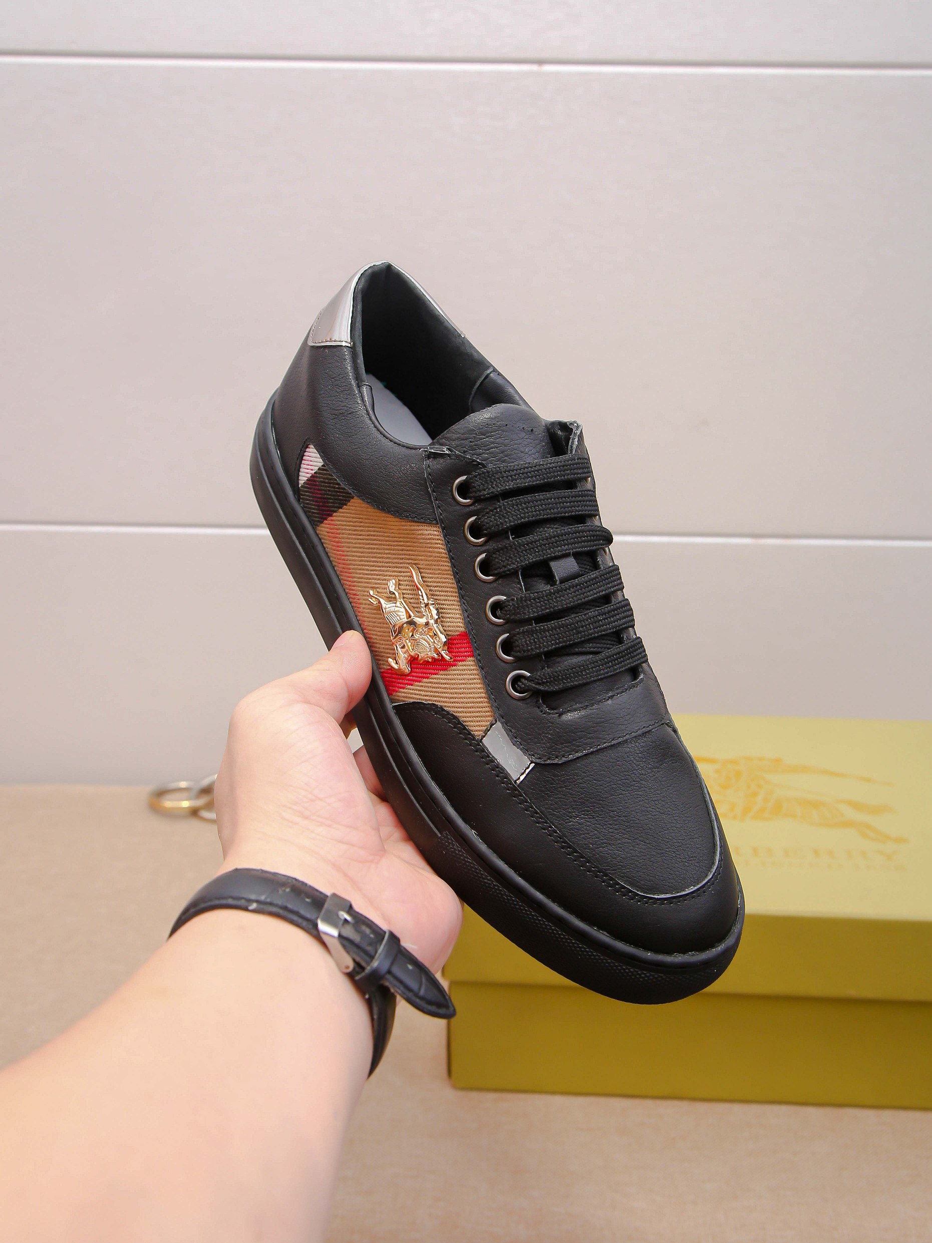 I0 时尚爆款 ⭐️⭐️⭐️潮牌 Burberry 巴宝莉 男士休闲鞋🎈官网同步,鞋面进口牛皮拼接字母布料,简约大气配色,后跟品牌logo装饰,完美版型,极富个性与时尚韵味,🐑羊皮内里⚠️⚠️柔韧耐磨防滑橡胶大底,时尚帅气,尊贵奢华,🚗 👍码数:38-44码