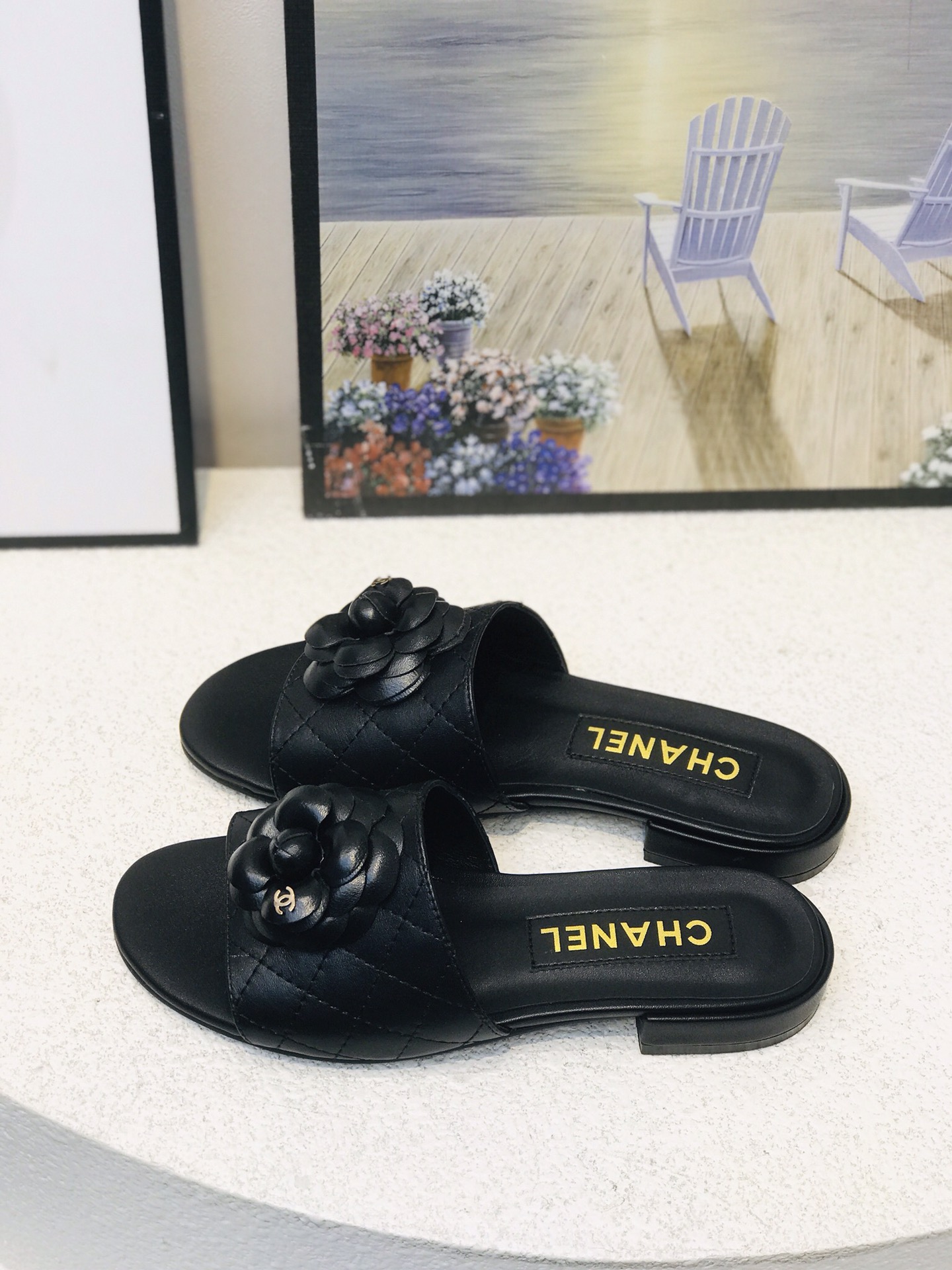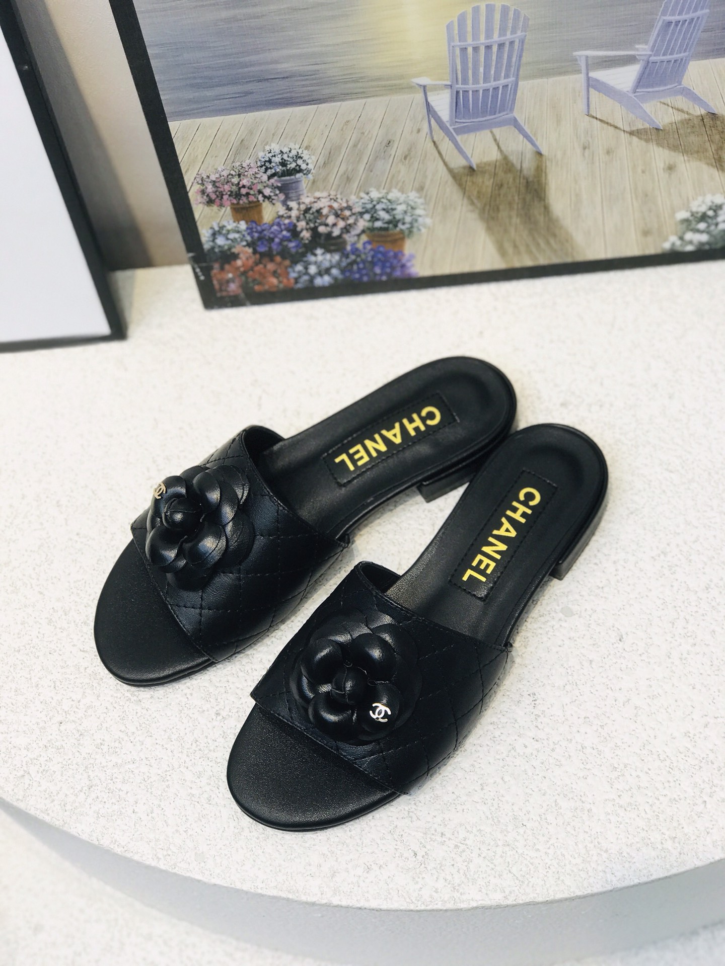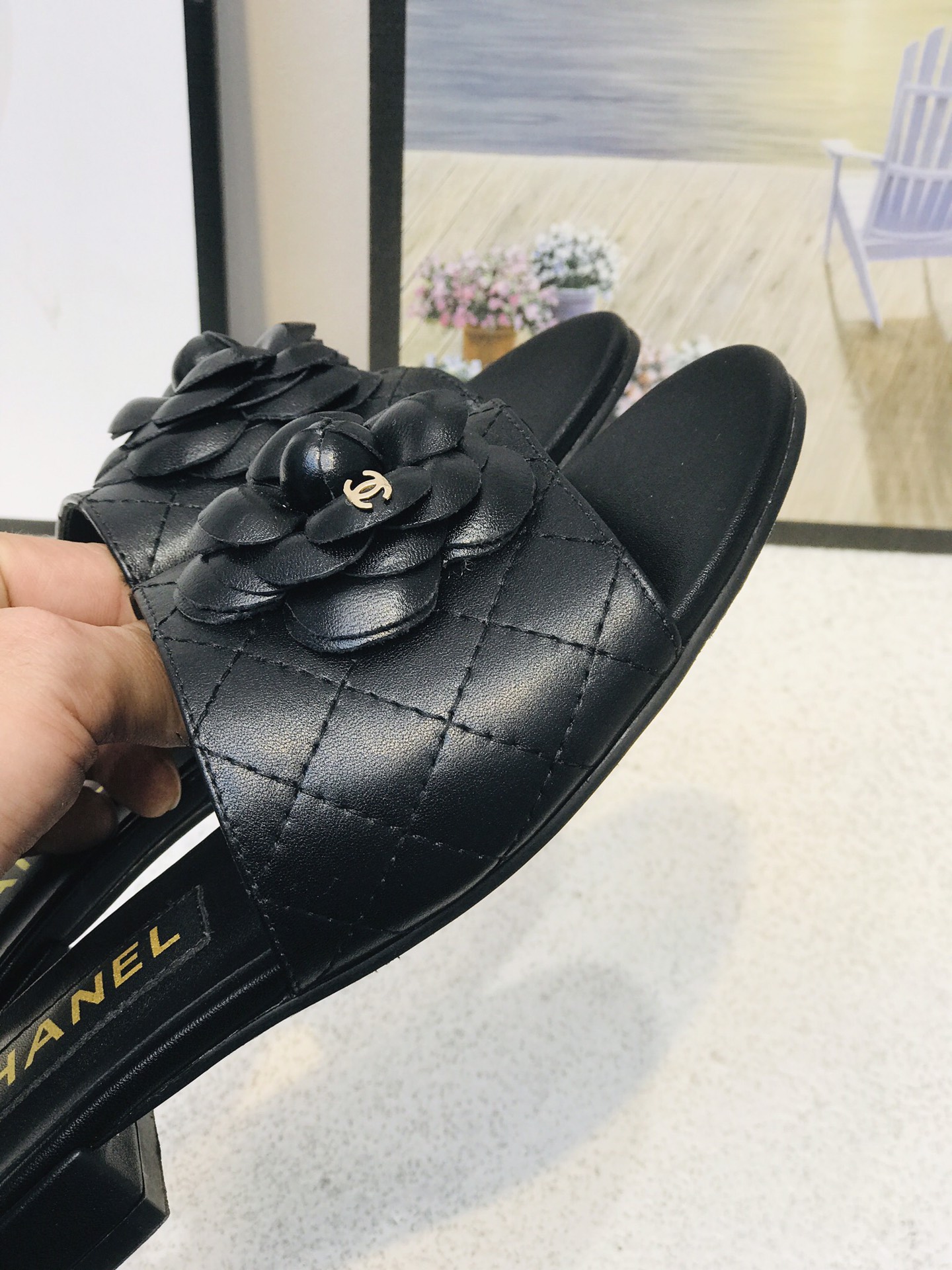 I0 最 Chanel 香奈儿格紋山茶花尖頭露跟鞋 黑,杏,两色可选 跟高:平底和 3厘米 鞋面:牛皮 内里:羊皮 橡胶大底 码数:35−41码