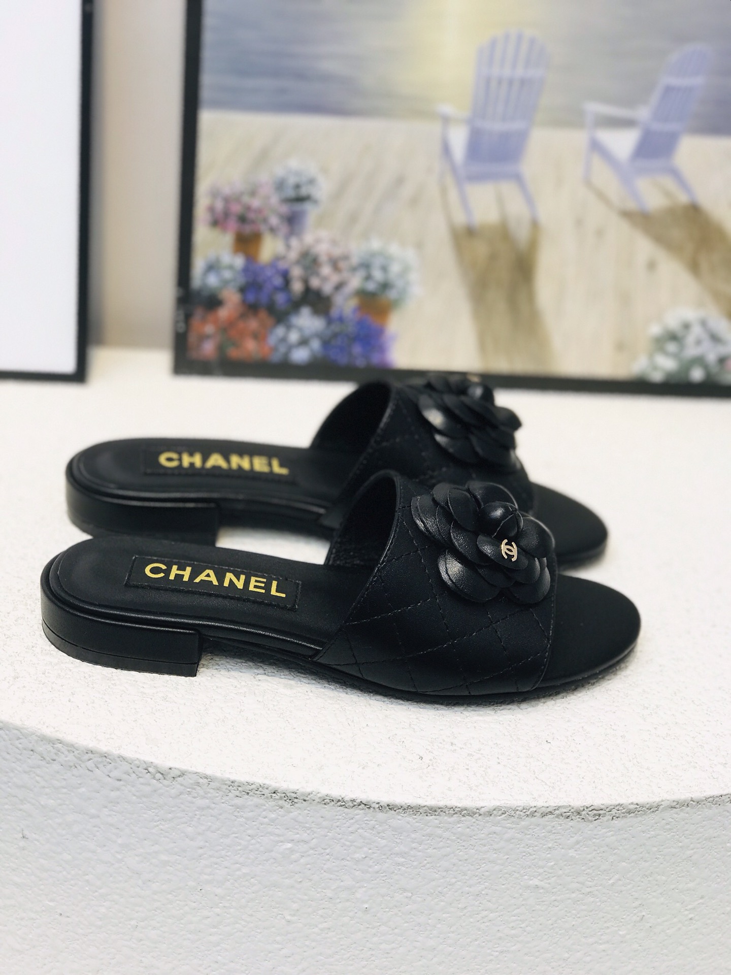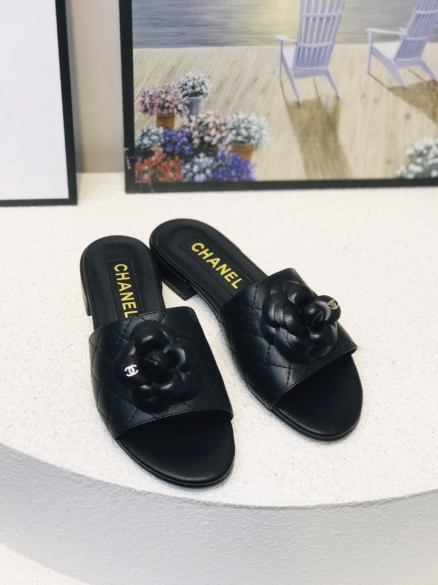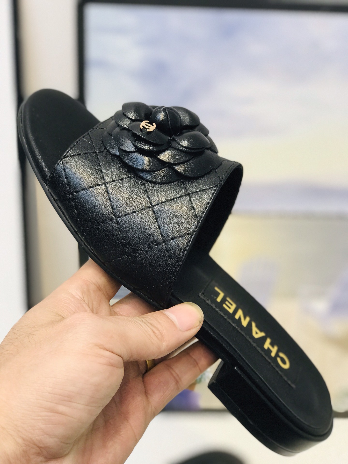 I0 最 Chanel 香奈儿格紋山茶花尖頭露跟鞋 黑,杏,两色可选 跟高:平底和 3厘米 鞋面:牛皮 内里:羊皮 橡胶大底 码数:35−41码