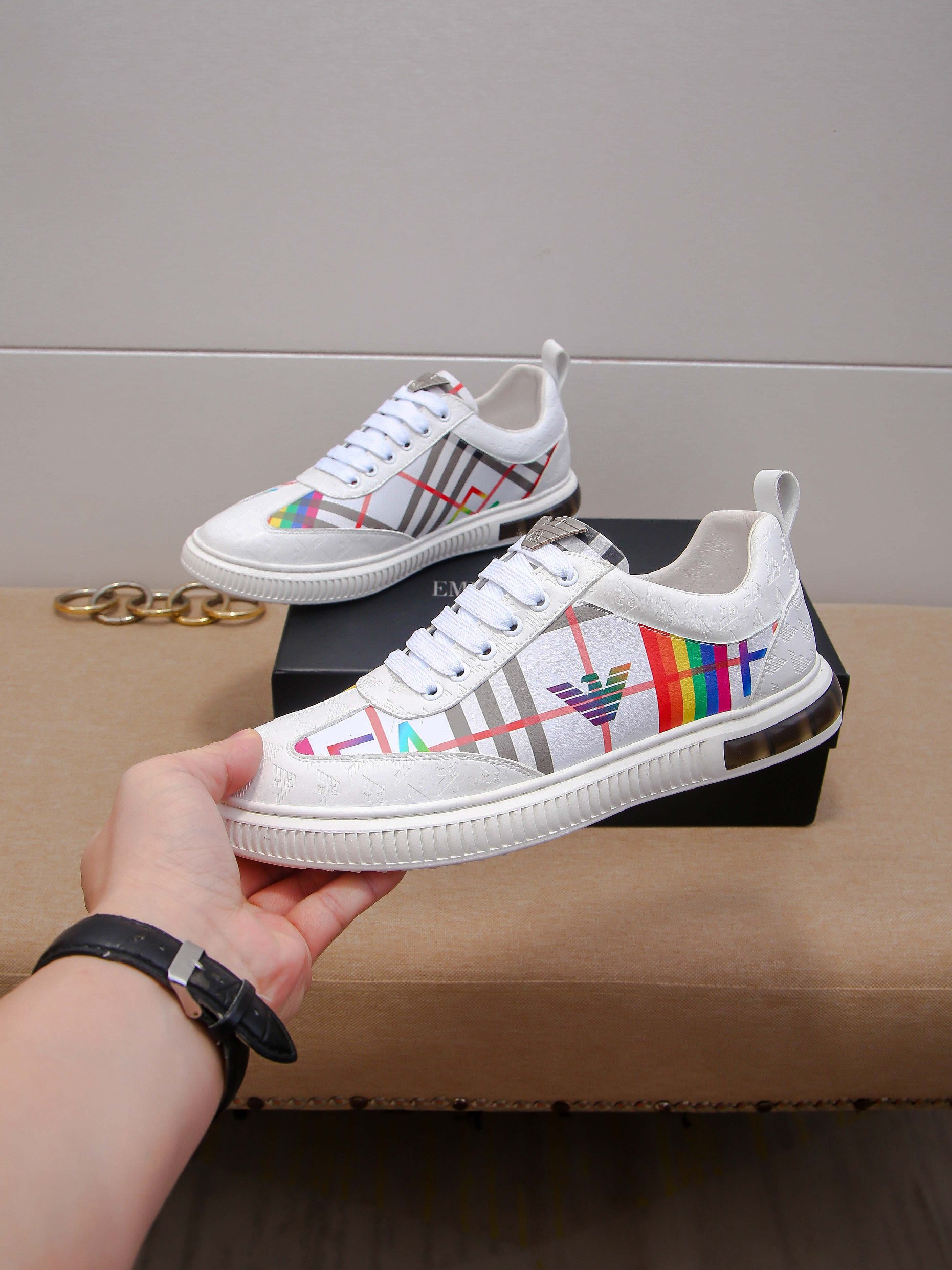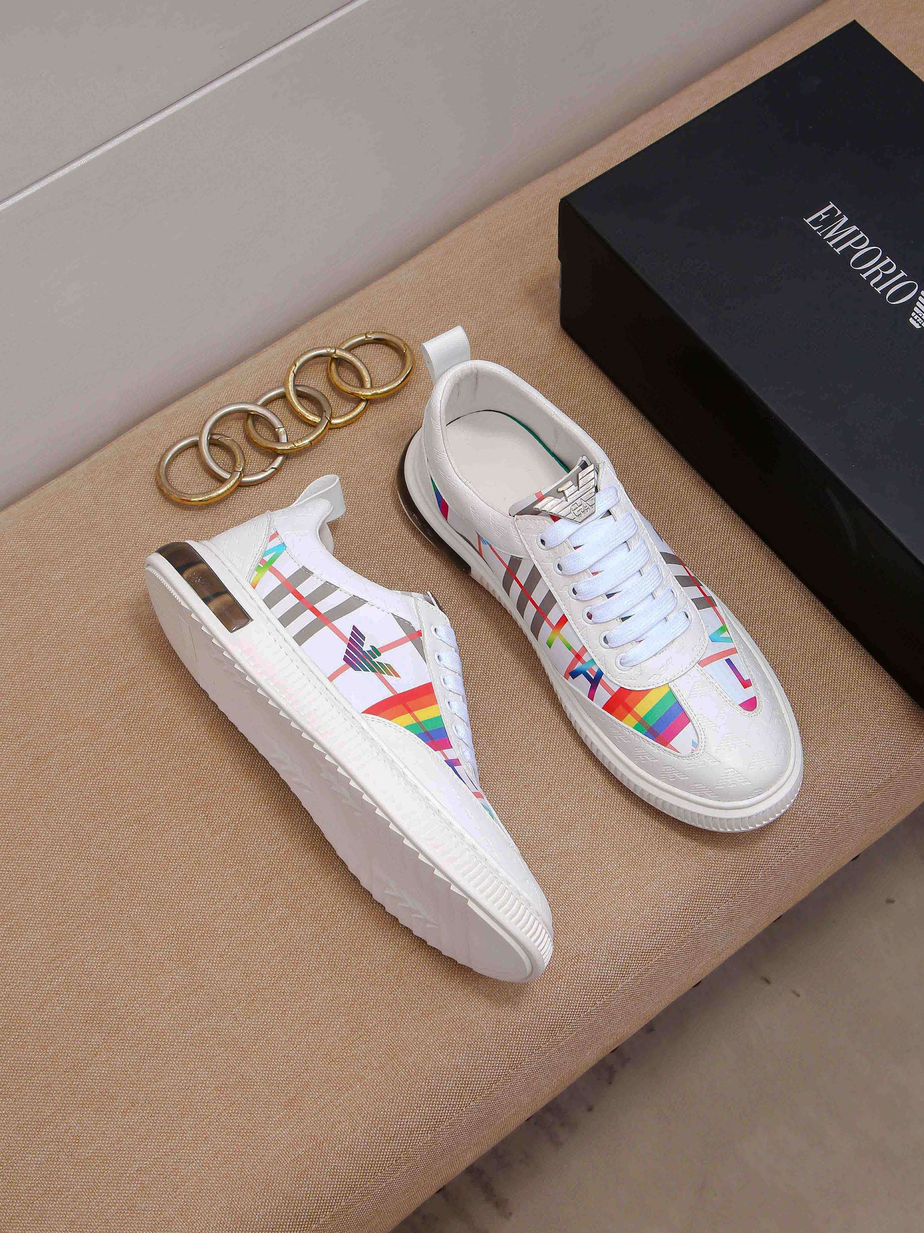 I0 阿玛尼最新爆款休闲鞋。按专柜款1:1制作,面料采用意大利进口牛皮➕羊皮内里。原版大底耐磨防滑。专柜级别版型,完美五金,完美上脚效果,车工精湛。码数:38-44