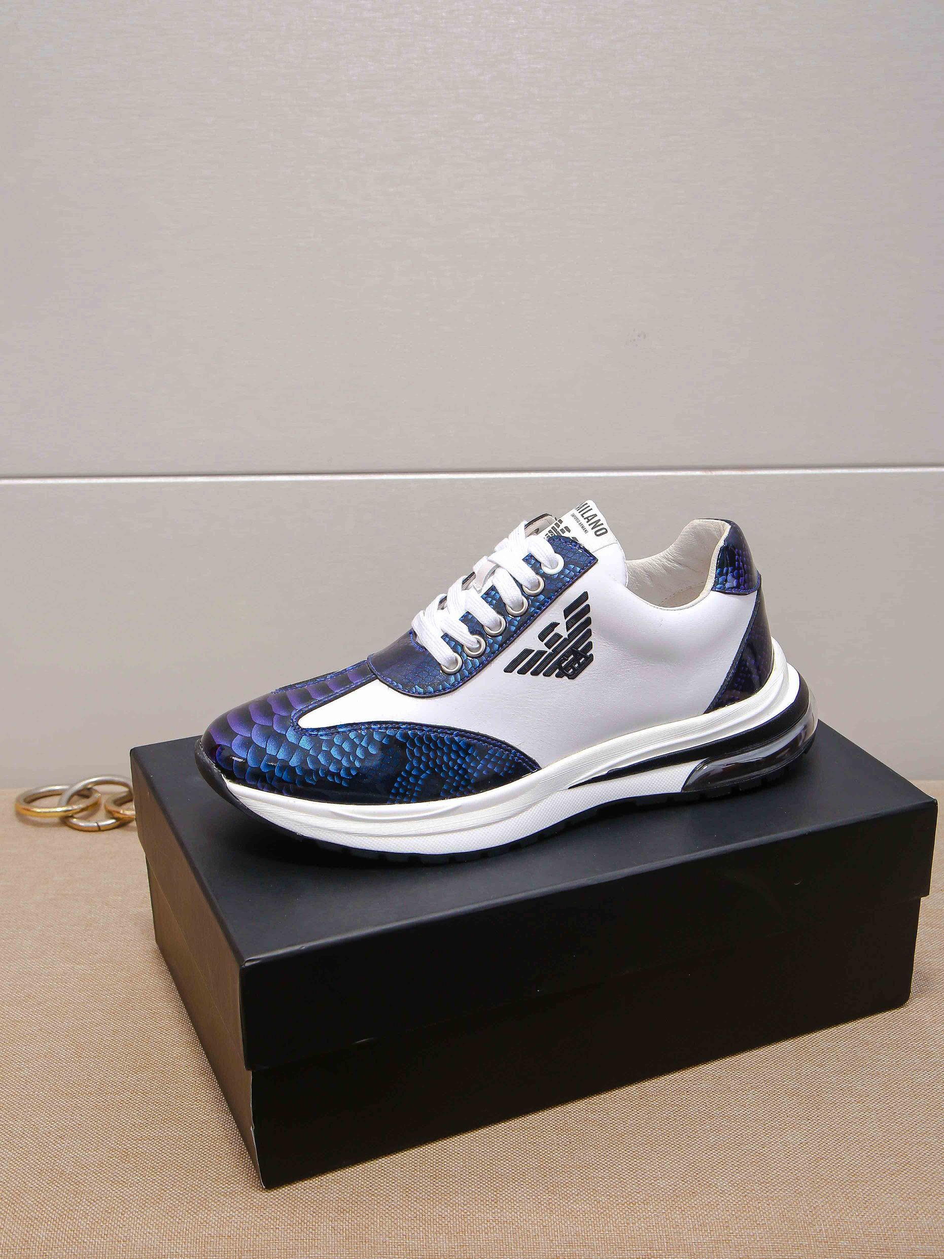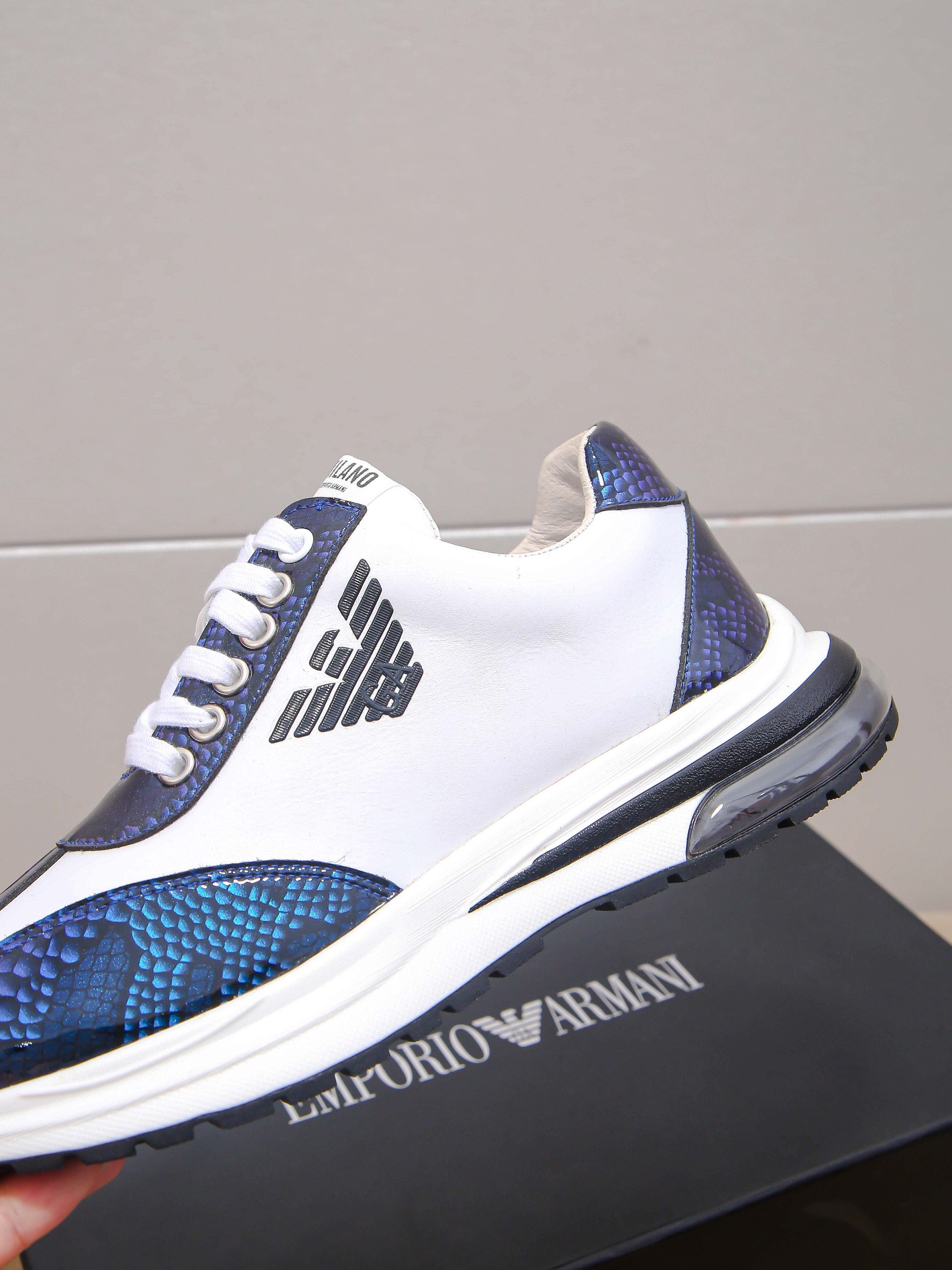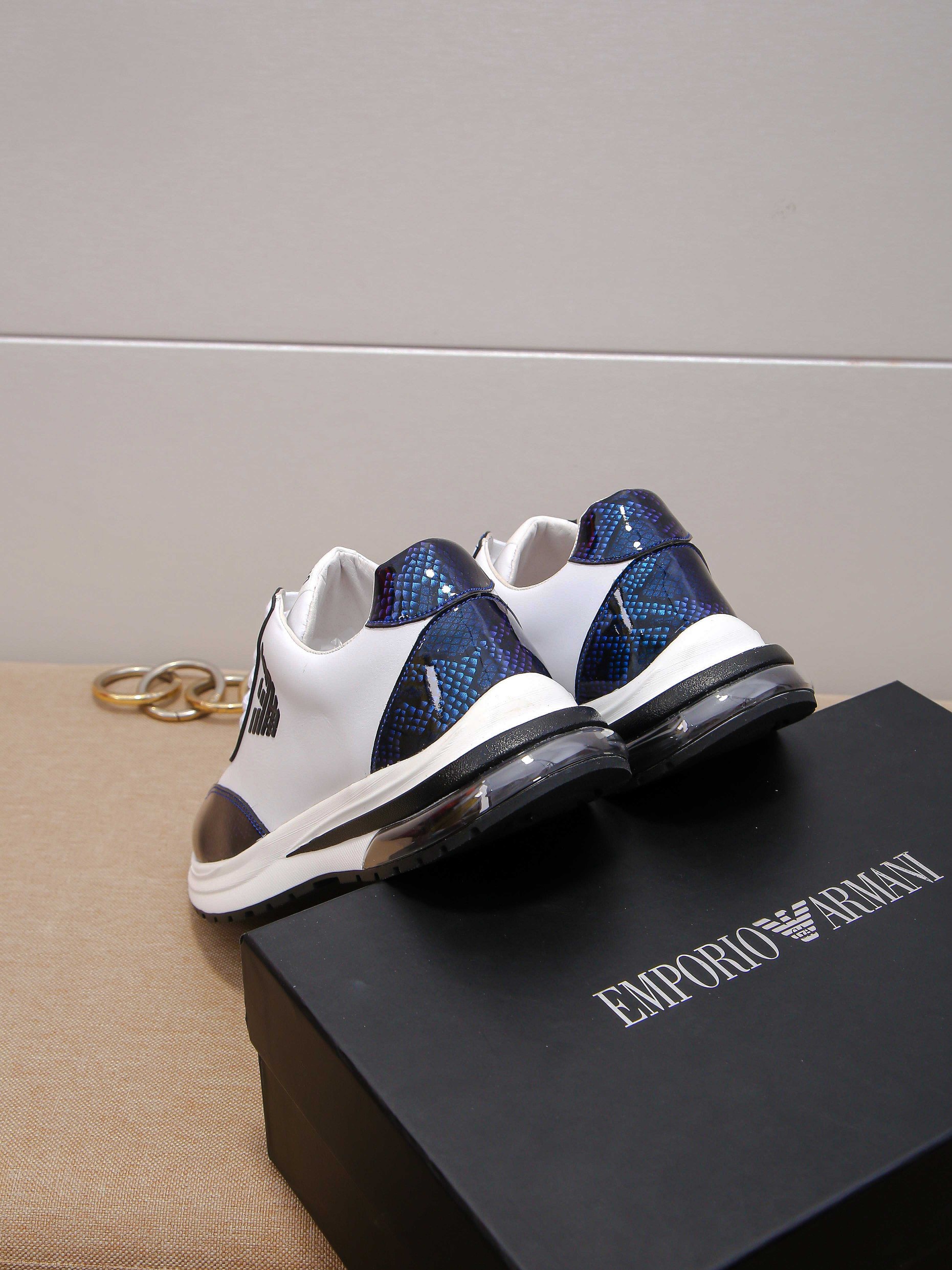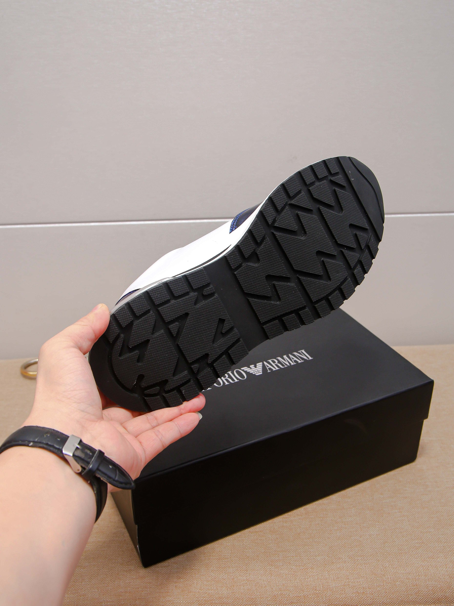 I0 阿玛尼最新爆款休闲鞋。按专柜款1:1制作,面料采用意大利进口牛皮➕羊皮内里。原版大底耐磨防滑。专柜级别版型,完美五金,完美上脚效果,车工精湛。