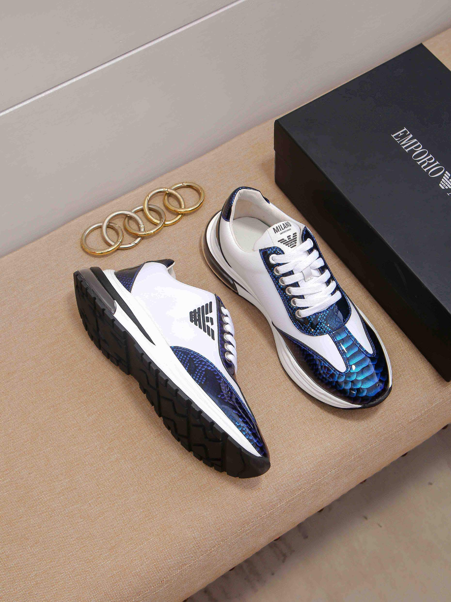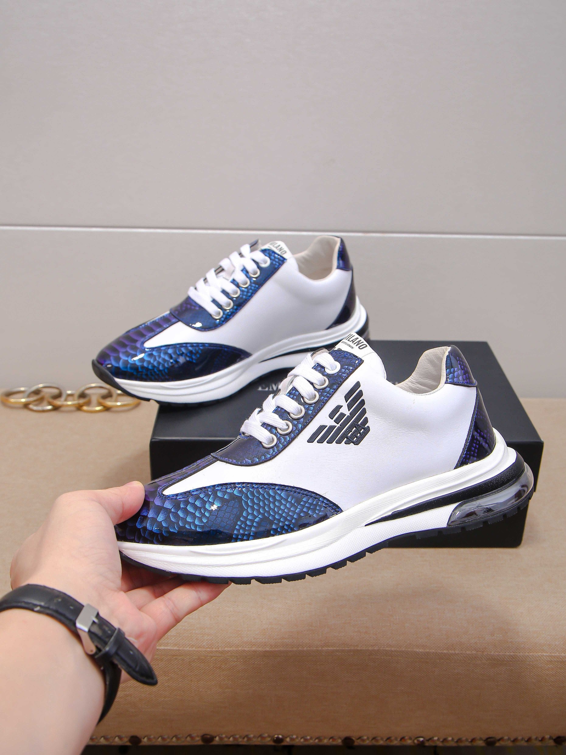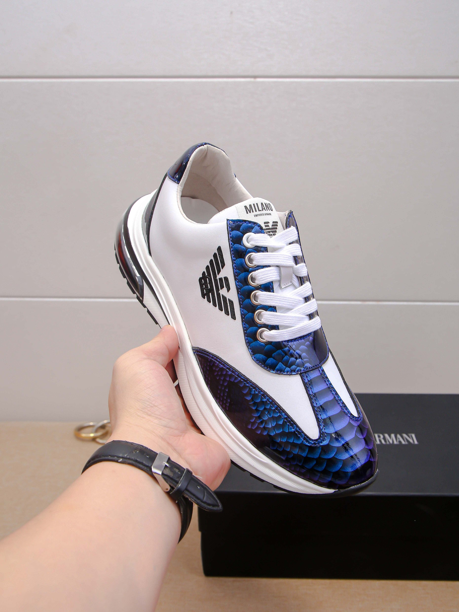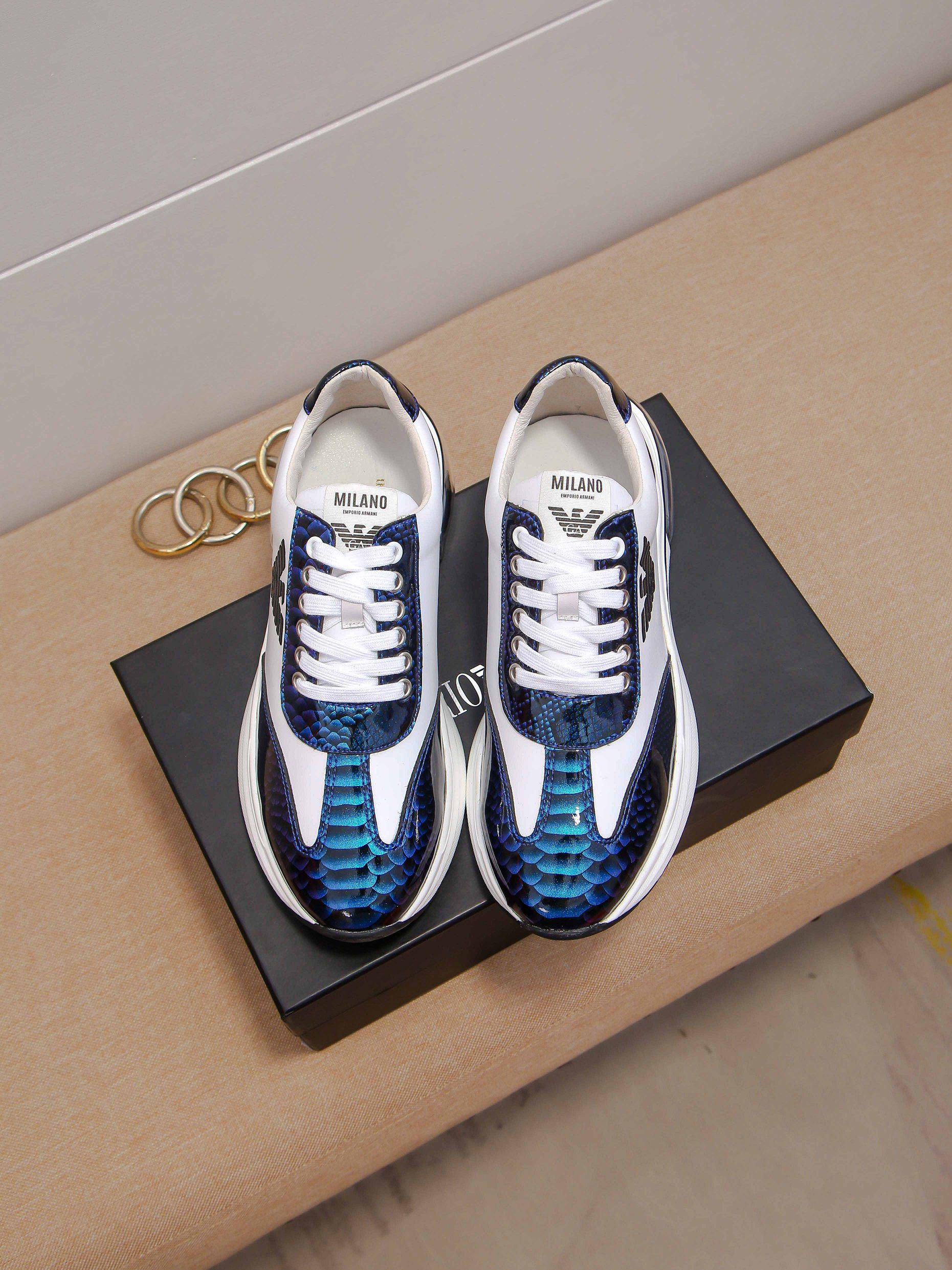 I0 阿玛尼最新爆款休闲鞋。按专柜款1:1制作,面料采用意大利进口牛皮➕羊皮内里。原版大底耐磨防滑。专柜级别版型,完美五金,完美上脚效果,车工精湛。