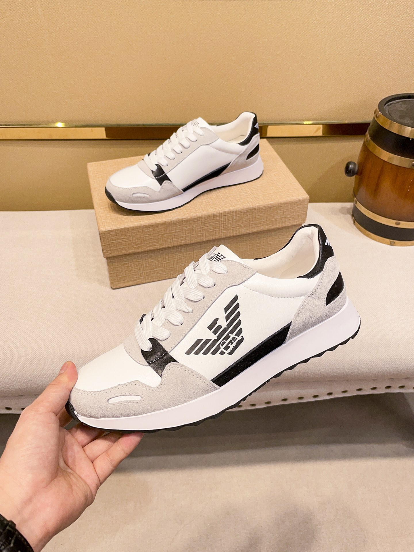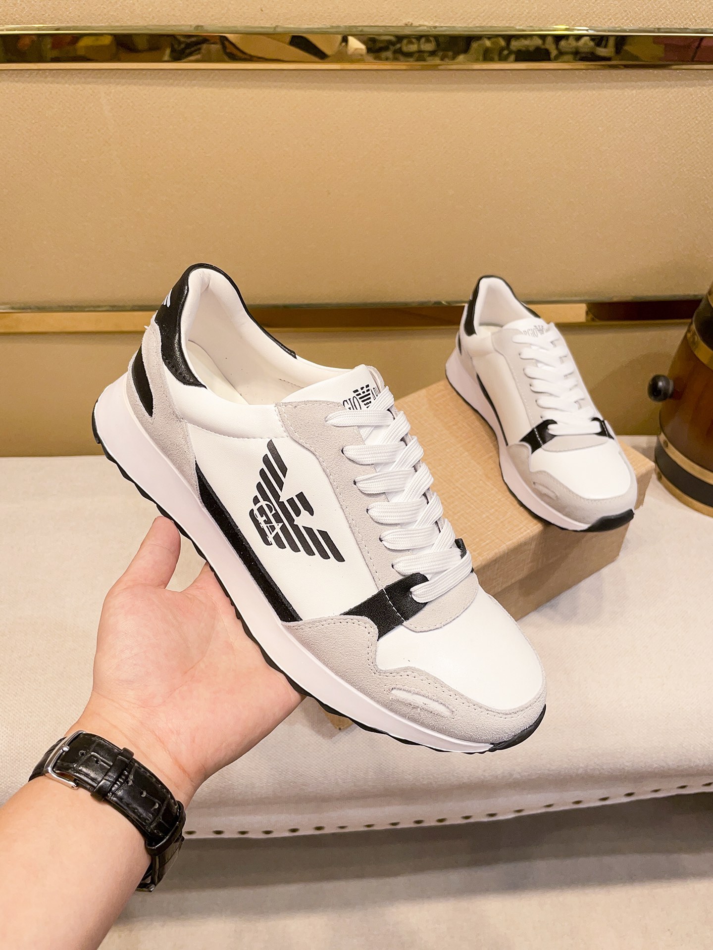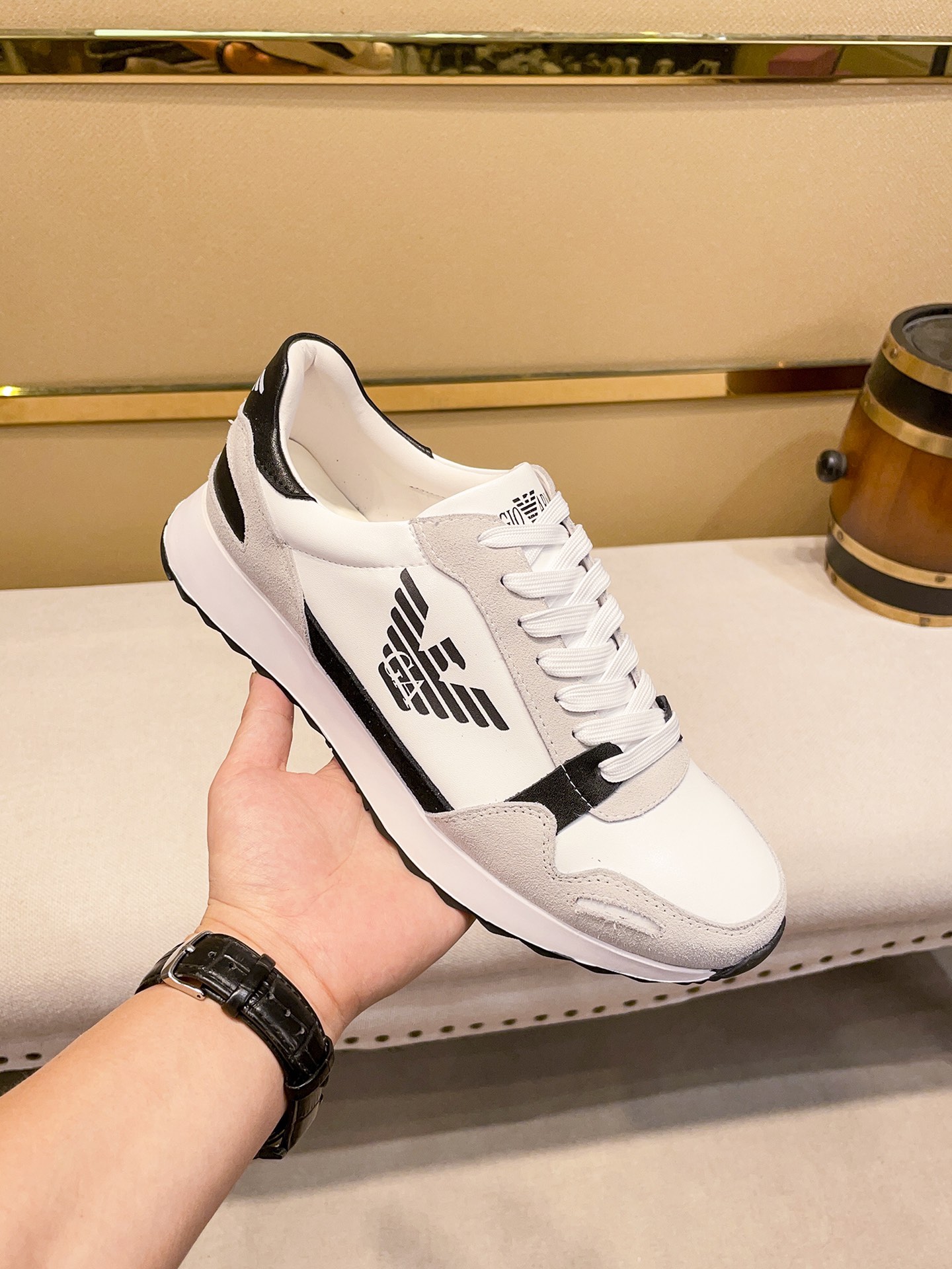 I0 阿.玛尼Armanii2021运动休闲男鞋,高帮款设计,香港-专柜同步 全品相 顶级进口材料,极为亲肤舒适 摸上去非常的细腻 ,版型上很正系带款打造装柜品质,原版进口头层牛皮电绣配私模独家开模阿玛尼标志,猪皮内里柔软舒适,橡胶耐磨大底,时装男鞋。38-442⃣️色。A441