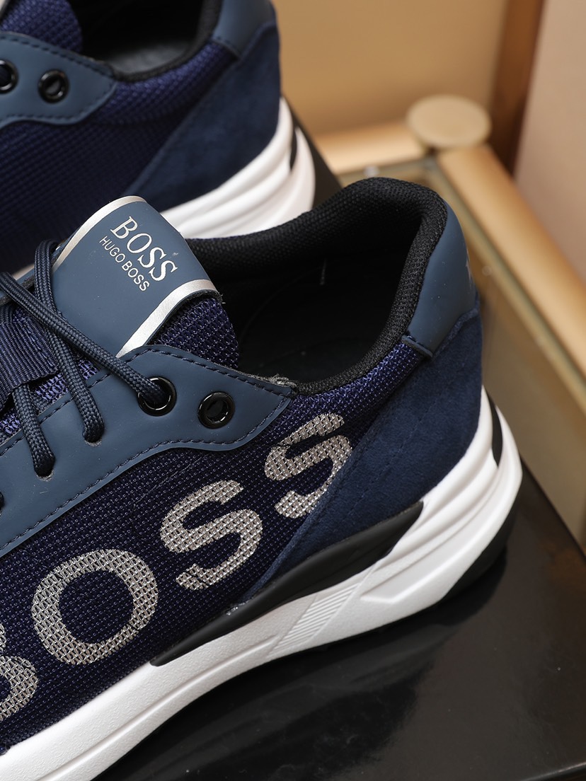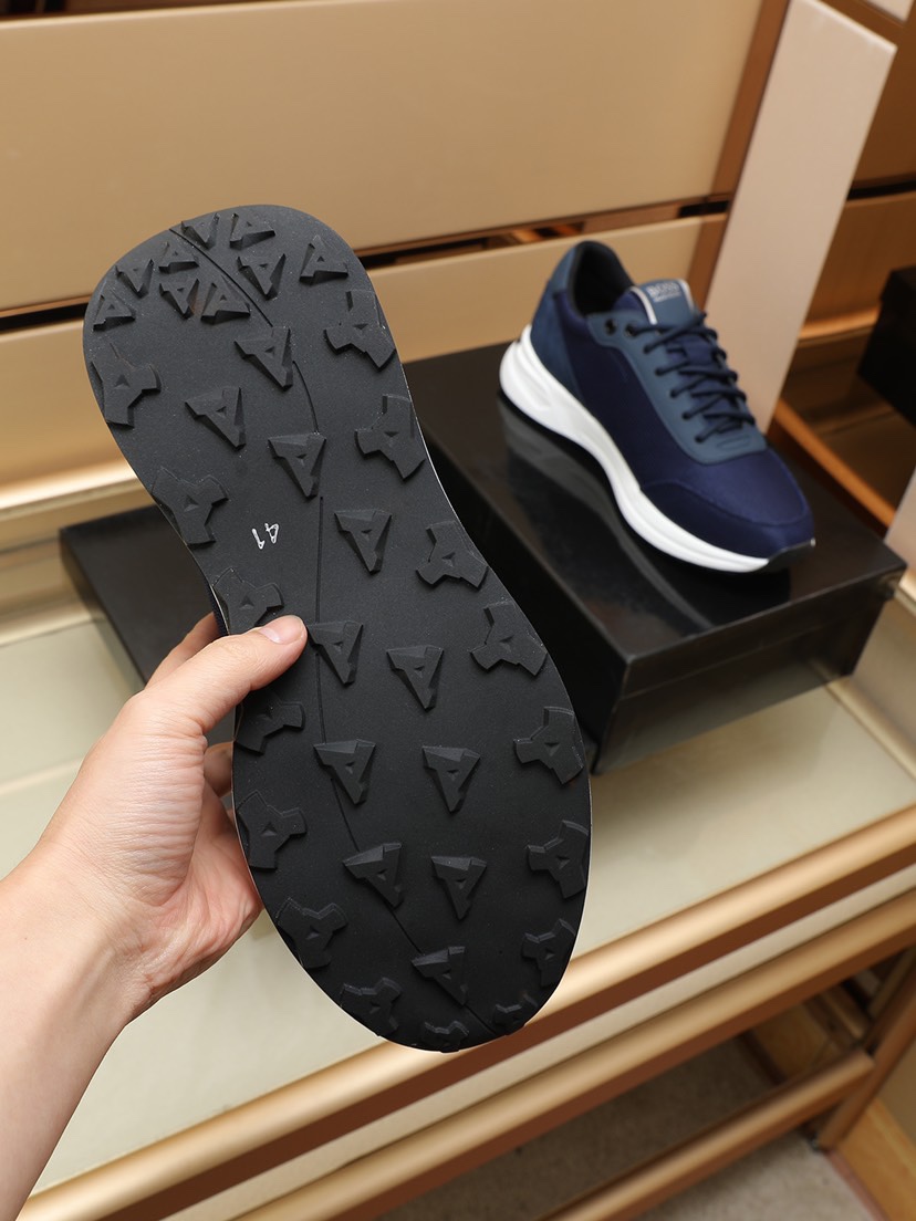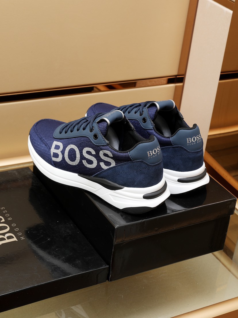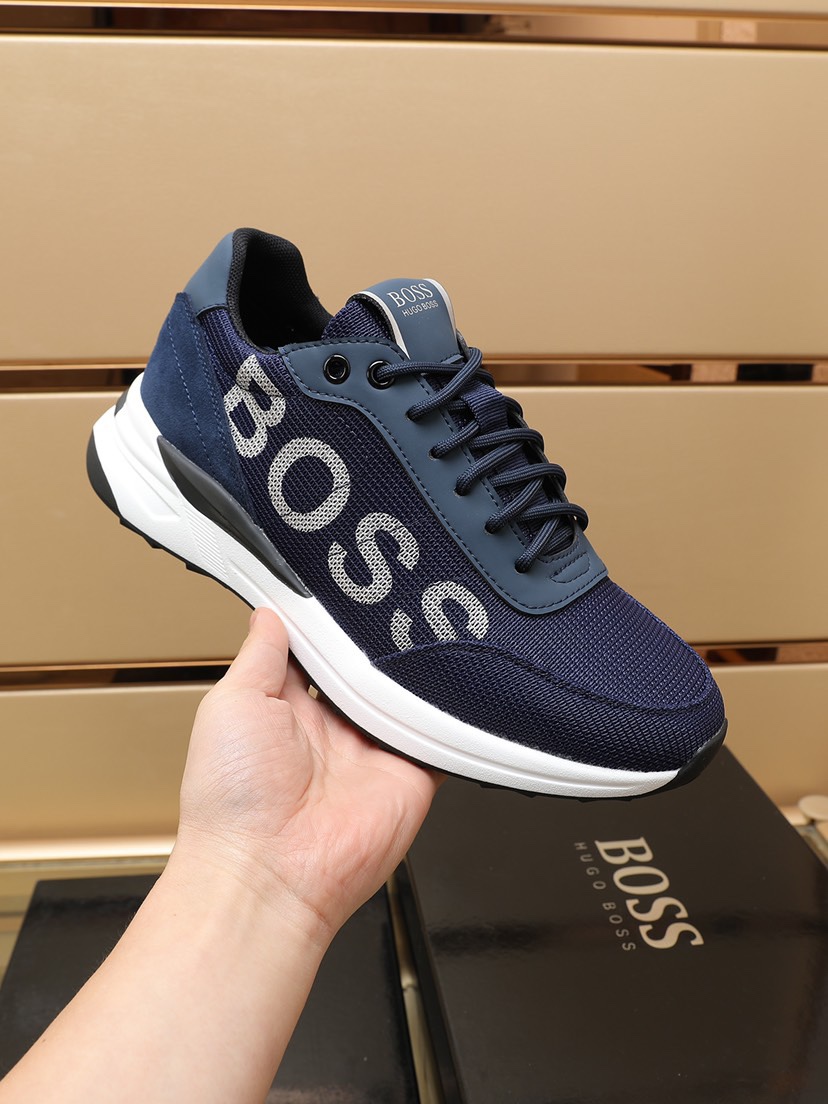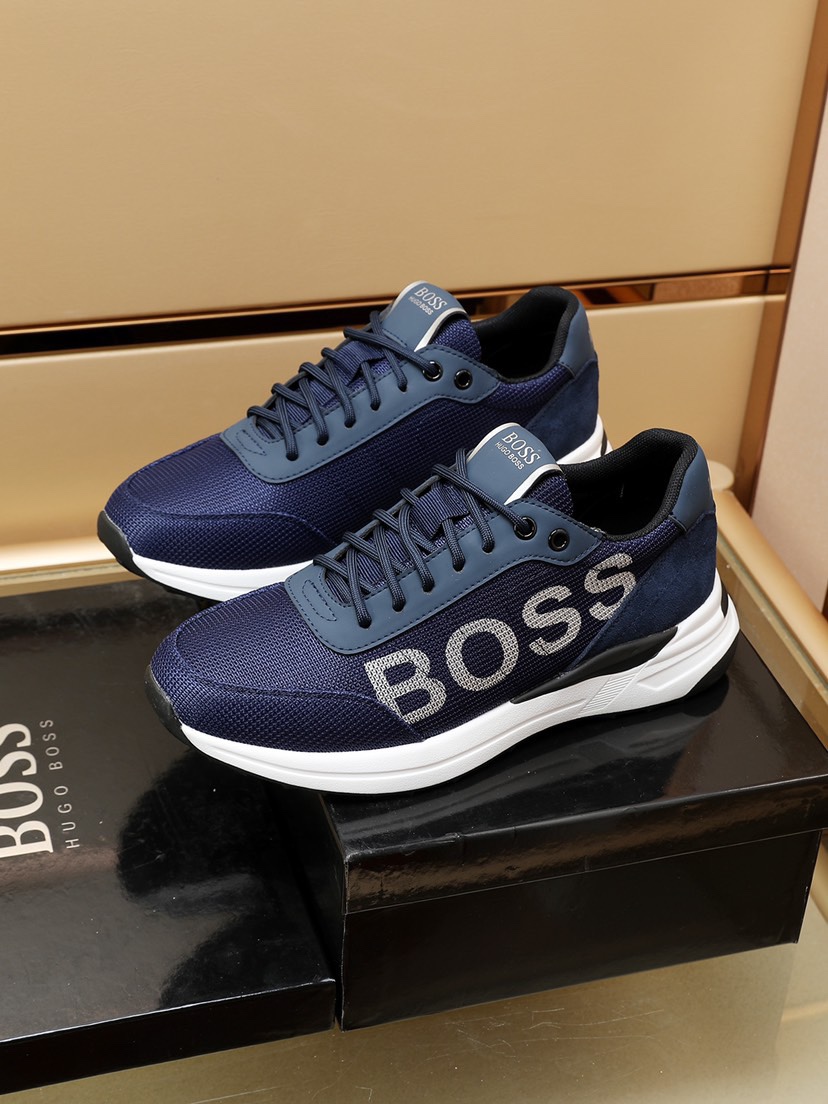 I0 BOSS原版经典款休闲鞋 本款是官方主打经典款,1:1质量,原厂名师制作,采用原版透气飞织➕舒适羊皮垫脚。完美楦型,大方时尚的设计,吸引了众多消费者的追捧,适合司机驾车行驶🚗,要的就是市场最品质,颜色:黑 蓝 两色。码数:38–44。