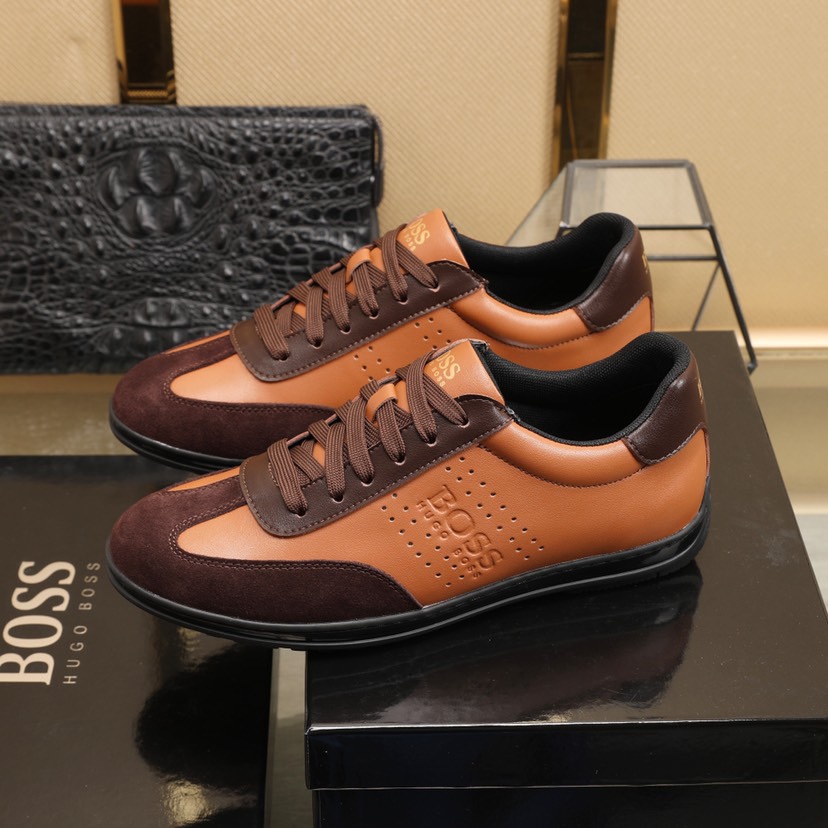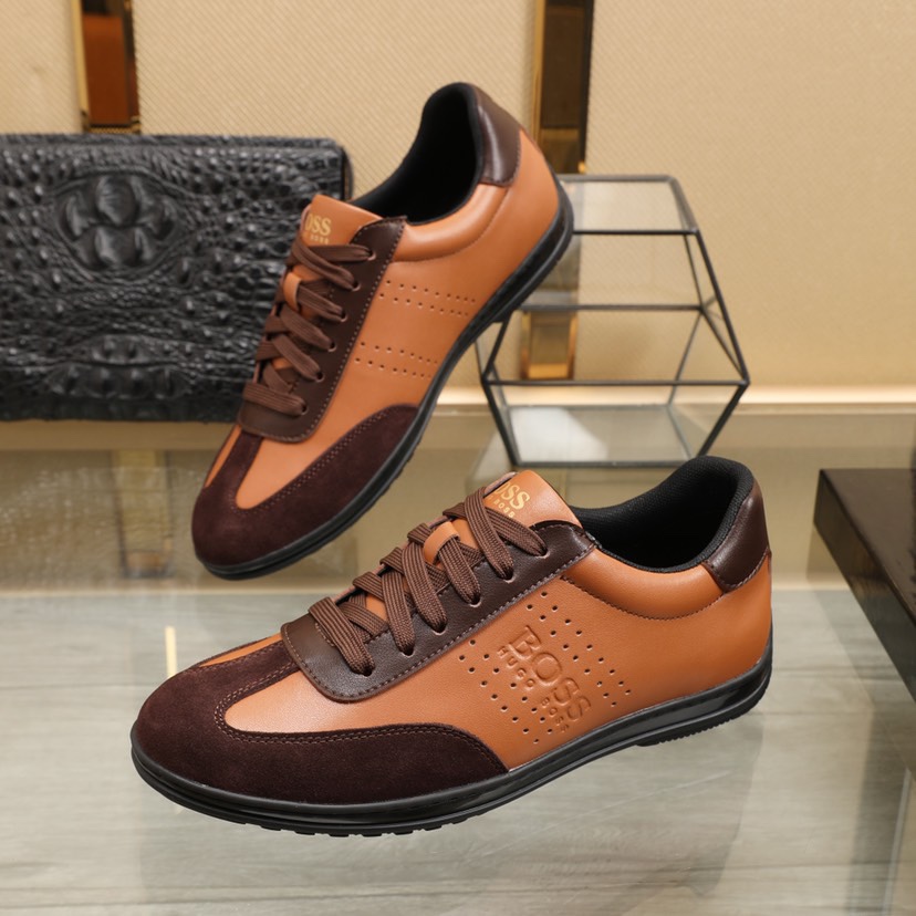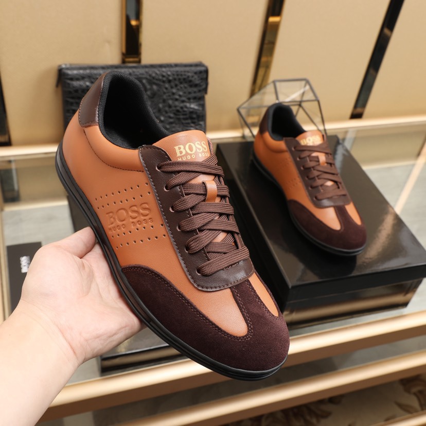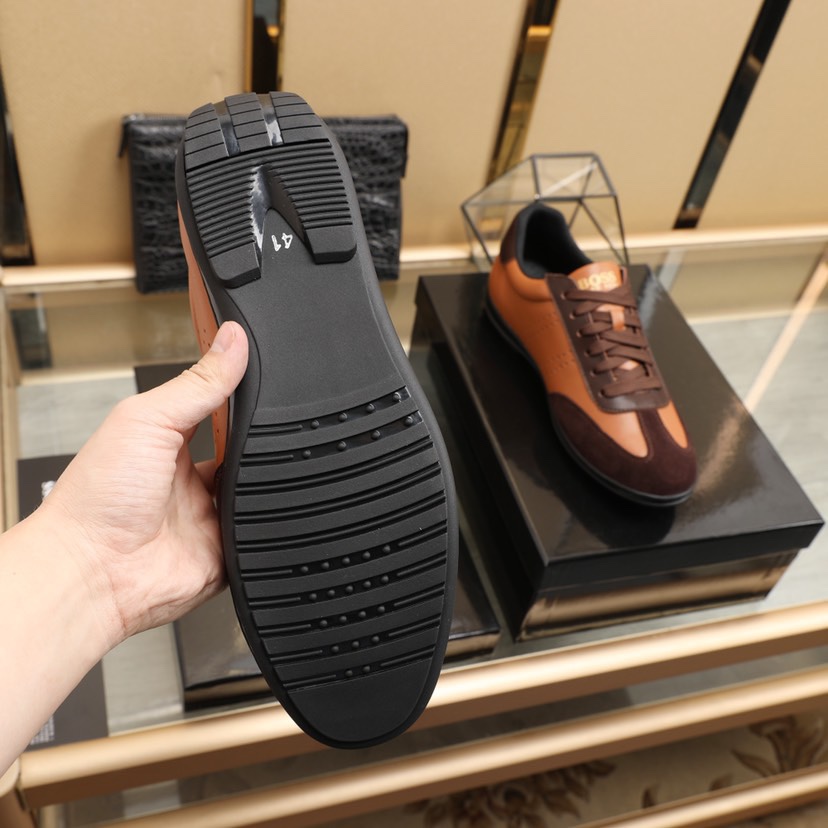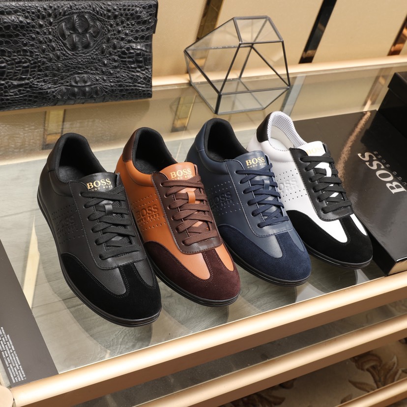 I0 BOSS🚹 知名运动品牌隆重上市 以奢华高端设计出货 鞋面采用牛皮➕羊皮垫脚🐑 脚绝对舒适💪鞋底全手工打造🤗 时尚 高端品质👑原厂工艺💝必备款👣 颜色:四色可选💕💕码数:38—44码