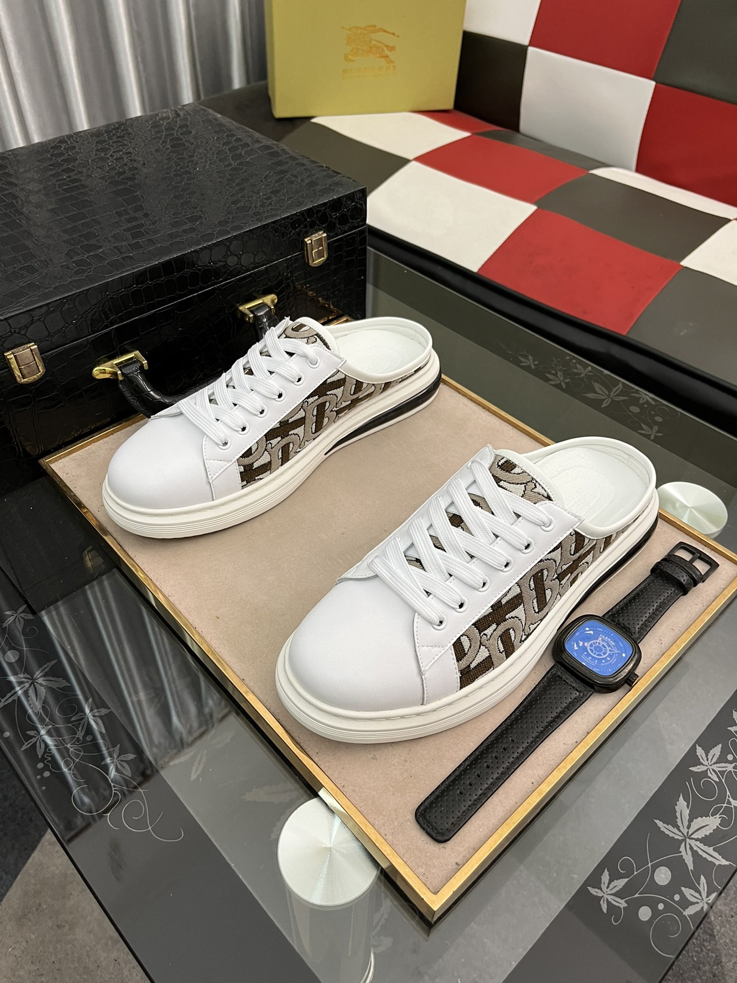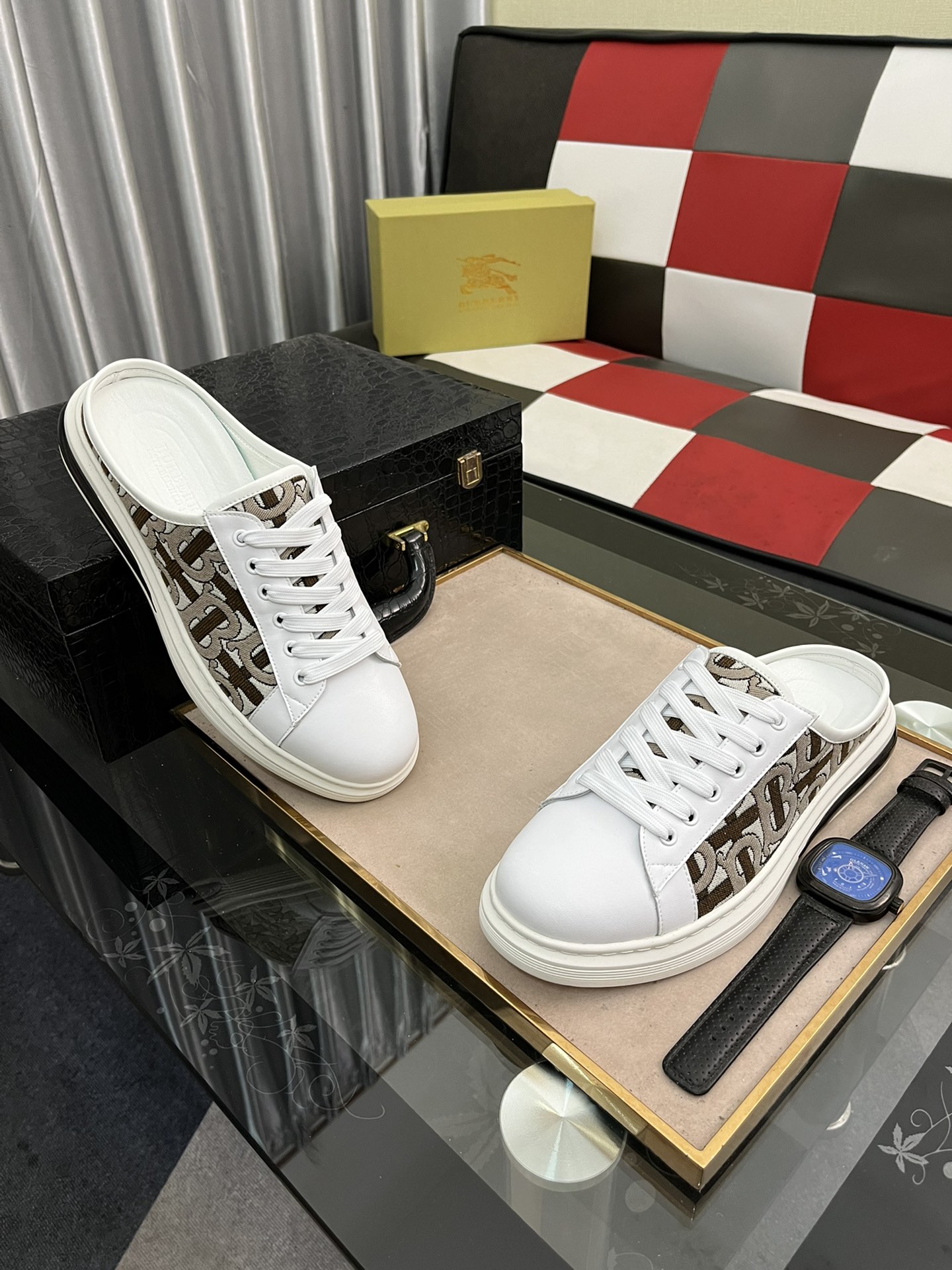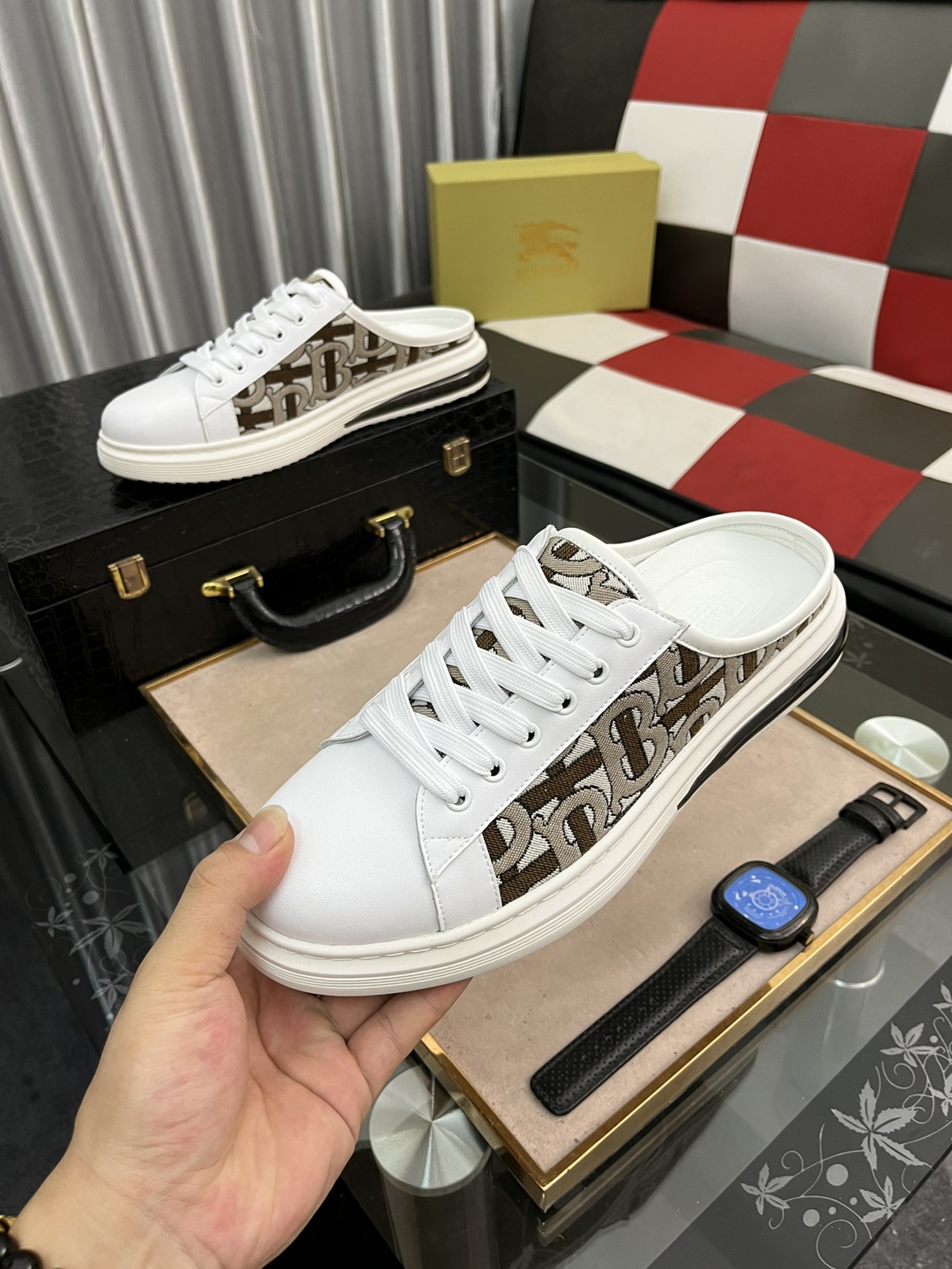 I0 Burberry 巴宝莉 经典半拖 官网同步上市。原版1:1开模全球奢侈品休闲鞋市场 精美的设计风格独特,面料进口牛皮打印➕进口羊🐑皮内里,原版防滑耐磨大底相当高档时尚。码:38-442⃣️色可选