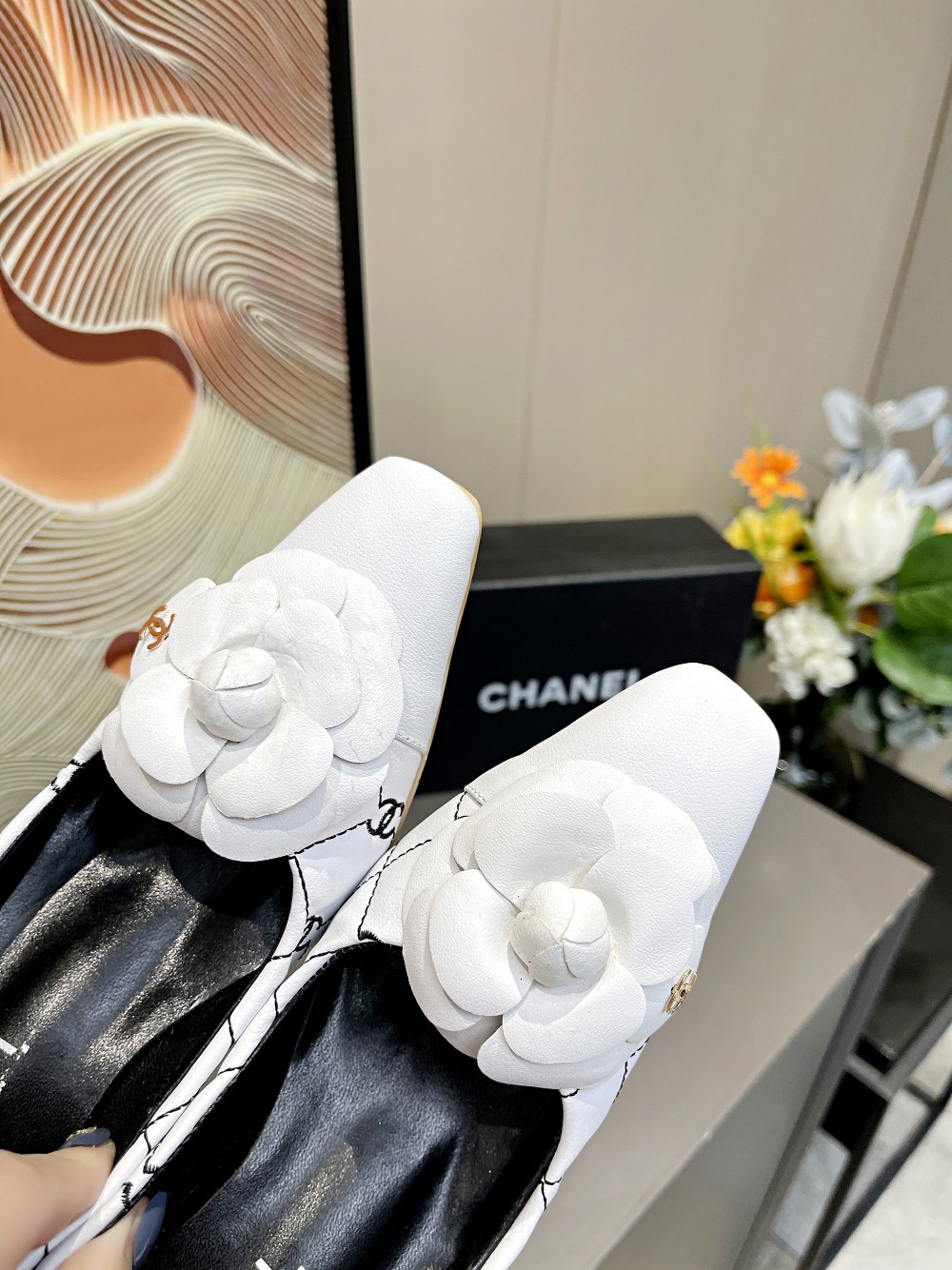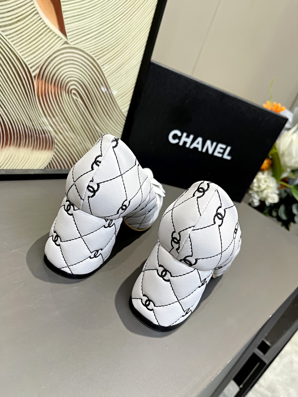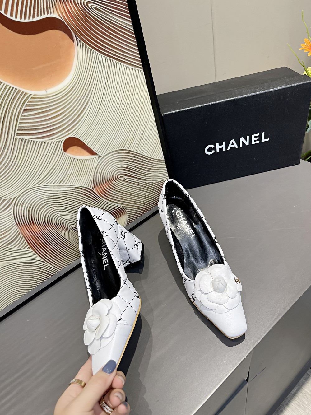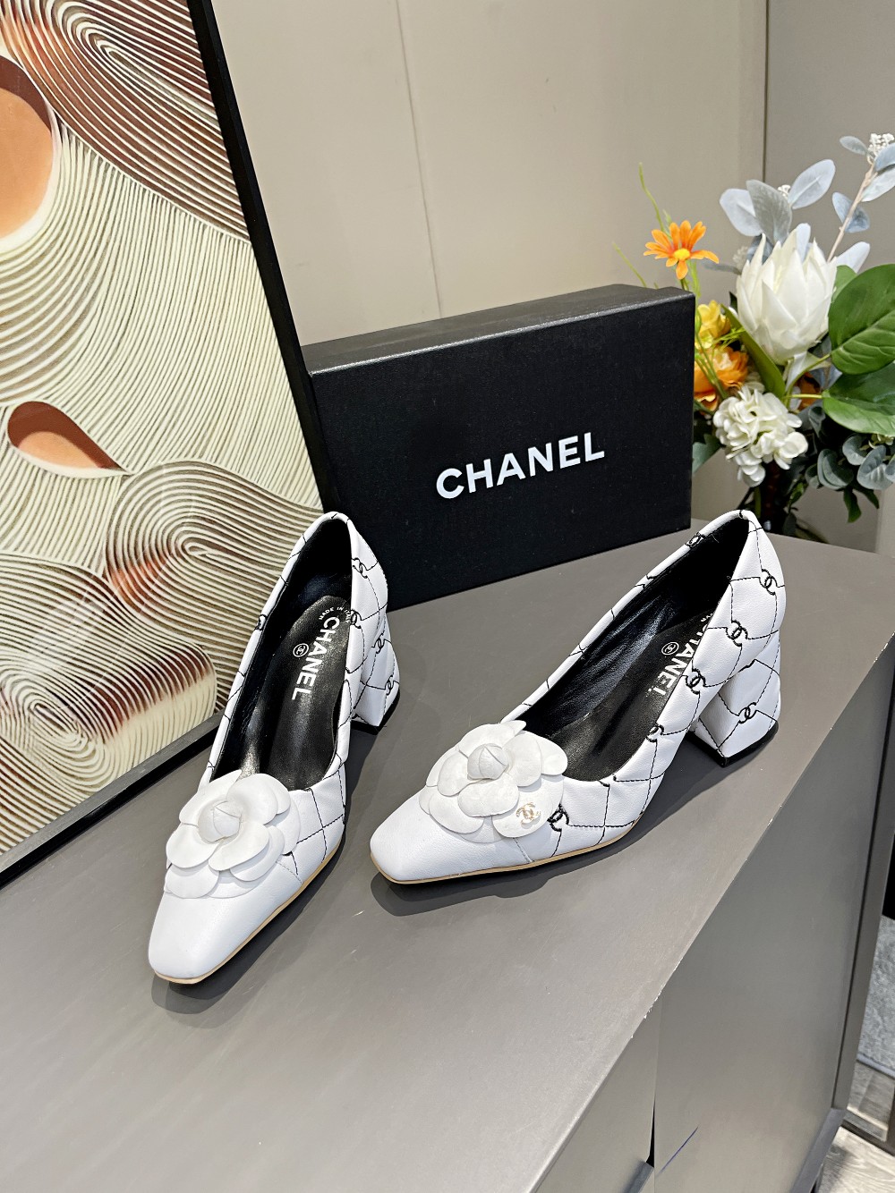 I0 Chanel 香奈儿开春CHANE小香家山茶花小方头拼色双C电绣单鞋,经典独特的山茶花,时尚够潮有气质,真正的一款美鞋,粗跟主要是走路平稳不累脚跟高6.5cm⚠面料:小牛皮,羊皮里,牛皮垫脚,码数;35-4034、41订做不退换