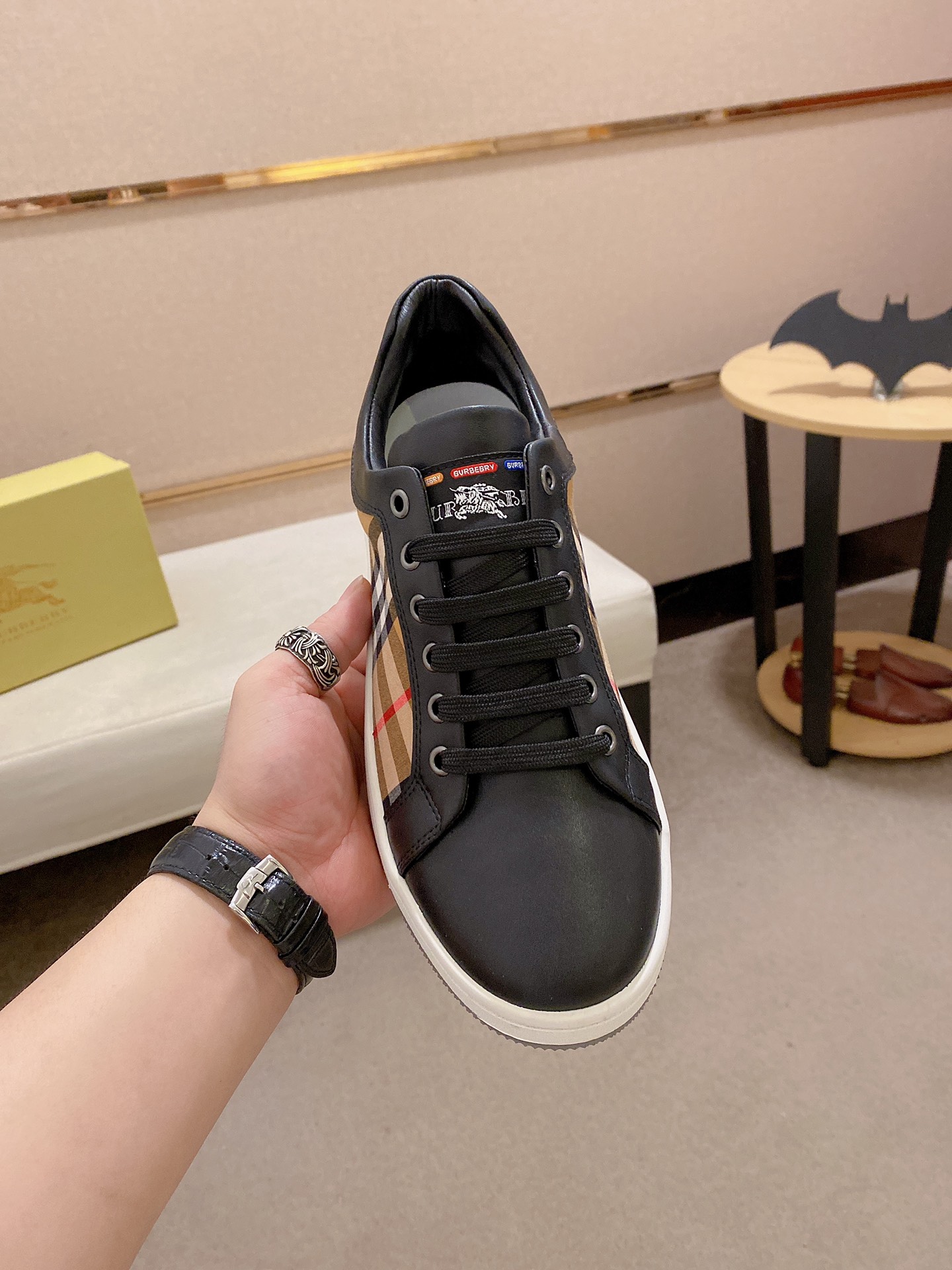 I5 专柜同步 Burberry 巴宝莉 顶级代购🔍🔍同步发售正码数:38-44意大利进口头层牛皮配布料。全进口羊皮内里,鞋底:原厂特供原版底,独家活动成型底超级舒适,原厂跟单货,🔍🔍高品质,可随意进出专柜,欢迎对比