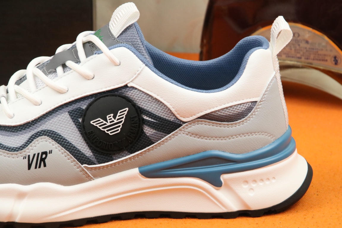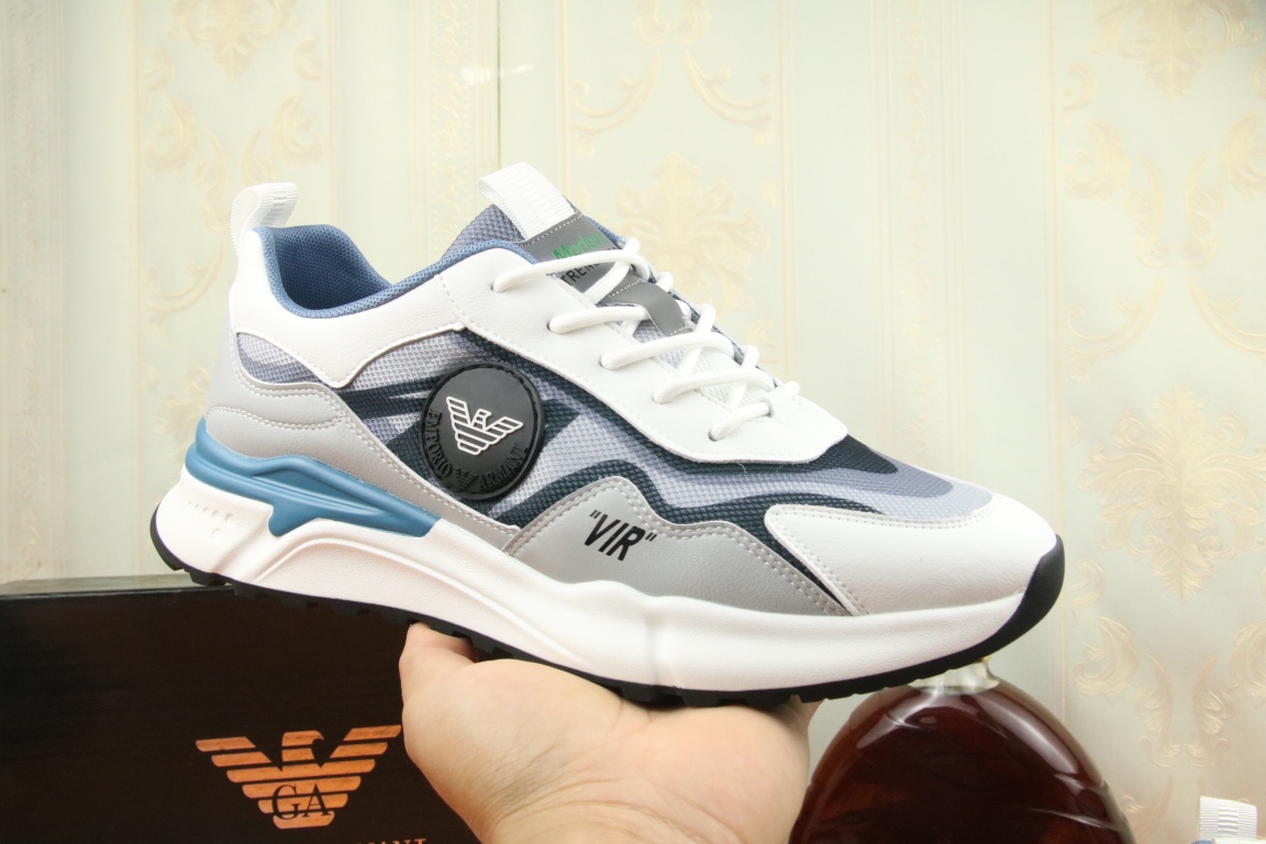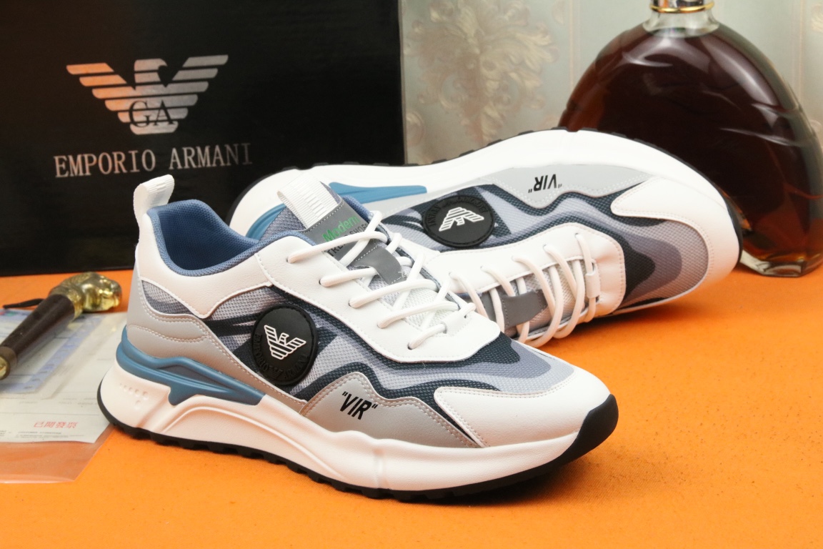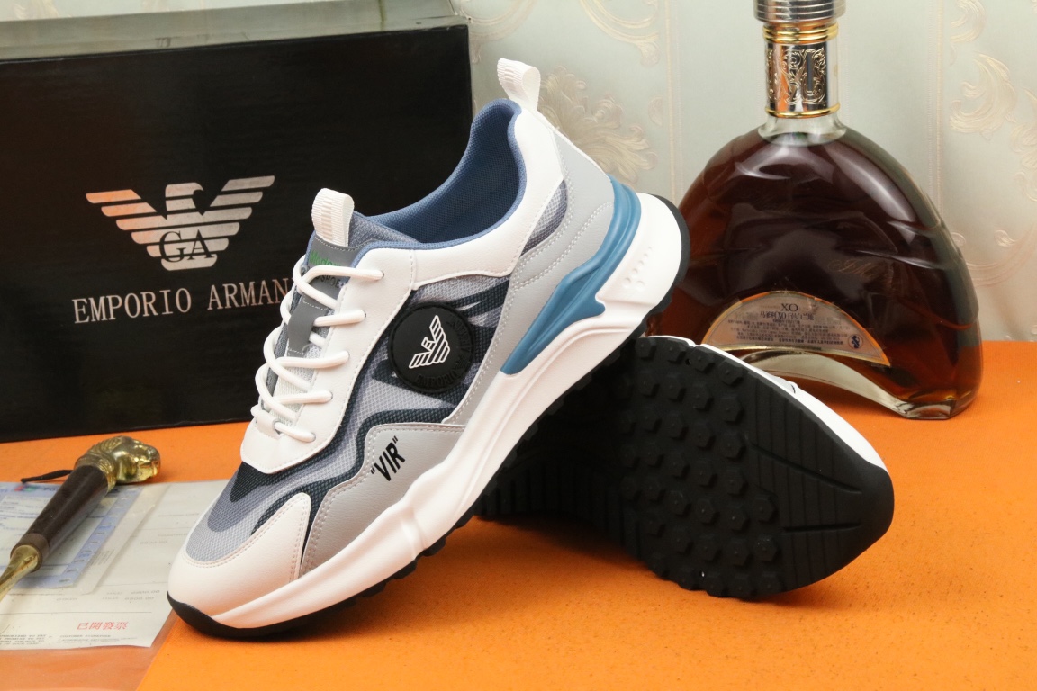 I5 阿玛尼上市著名奢侈品牌,专柜同步更新,意大利男鞋时尚杂志季刊封面主推款鞋面采用意大利进口牛皮搭配冰丝网布面料制作,舒适透气内里。原板防滑橡胶大底,上脚舒适有型。 细节无可挑剔。