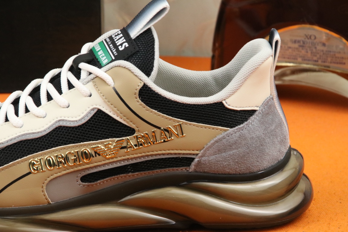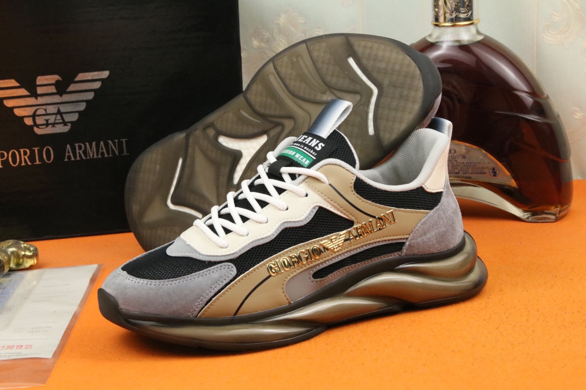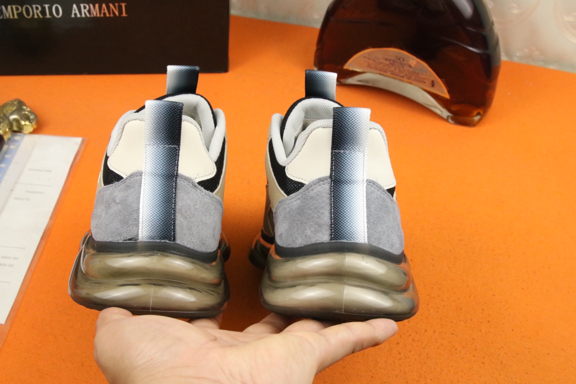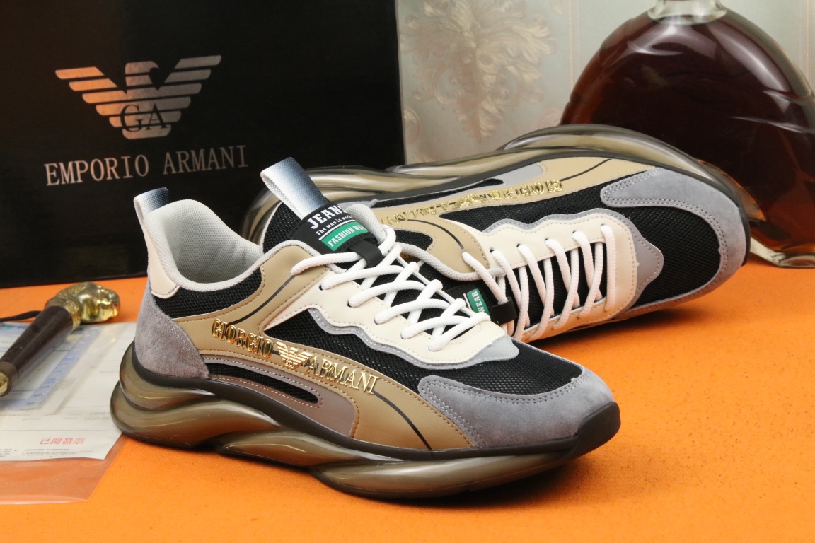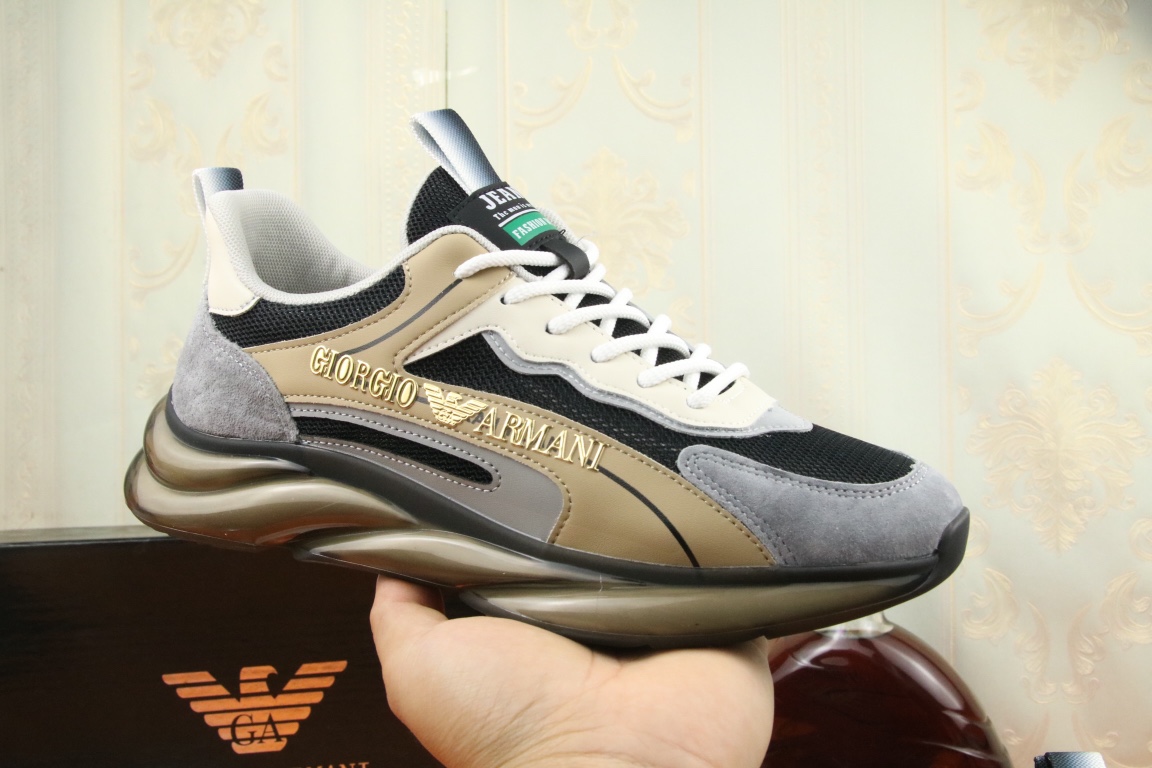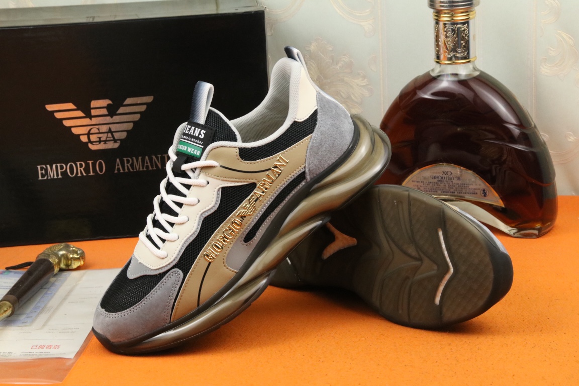 I5 阿玛尼上市著名奢侈品牌,专柜同步更新,意大利男鞋时尚杂志季刊封面主推款鞋面采用意大利进口牛皮搭配冰丝网布面料制作,舒适透气内里。原板气垫大底,上脚舒适有型。 细节无可挑剔。码数38-44