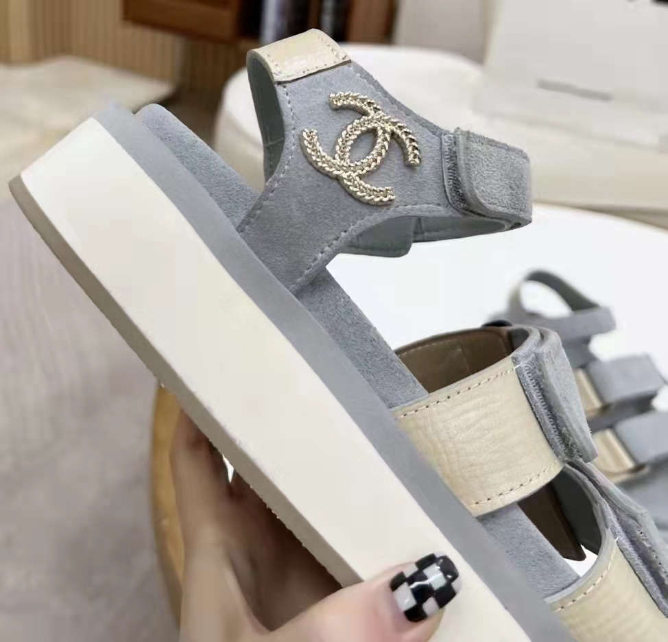 I5 𝑪𝒉𝒂𝒏𝒆𝒍/香奈儿𝟐𝟎𝟐𝟐𝐬𝐬小香魔术贴凉鞋最新魔术贴设计 轻便发泡耐磨绒大底、更加彰显和品味~所有材质都根据原版定制购入正品开发。进口小牛皮、牛筋面料质感柔软细腻内里为进口牛皮原版开模耐磨绒大底