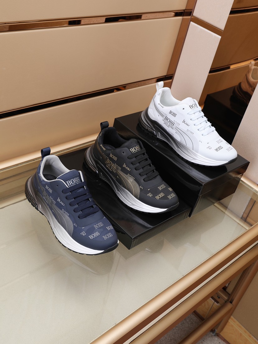 I5 💢BOSS爆款休闲男鞋,以经典的设计成为永不落幕的时尚宠儿,经典的休闲造型。采用进口透气布料➕滴胶工艺,品牌专用海绵大底,耐磨,轻便,整体设计和谐统一又不缺乏个性 ✨你值得拥有 颜色:三色可选😍