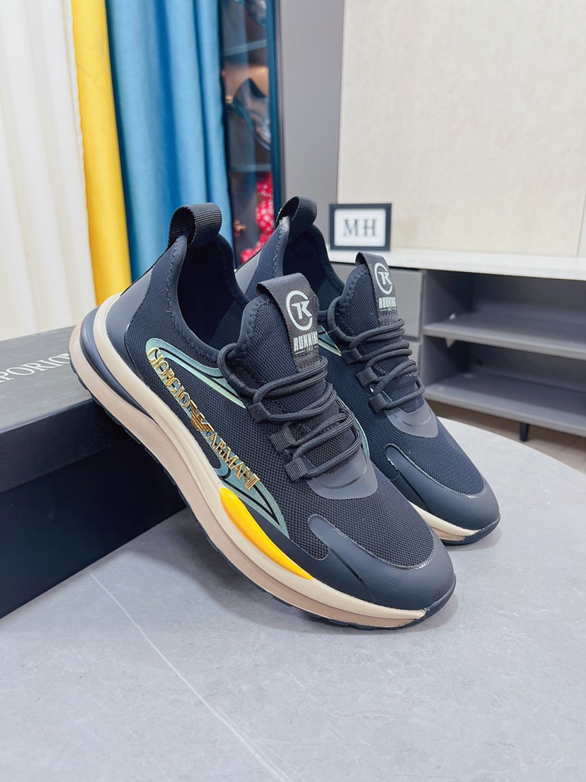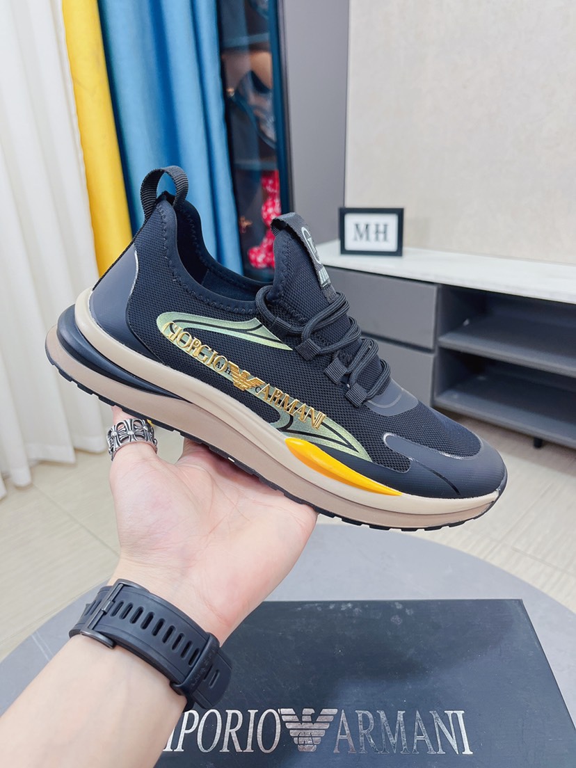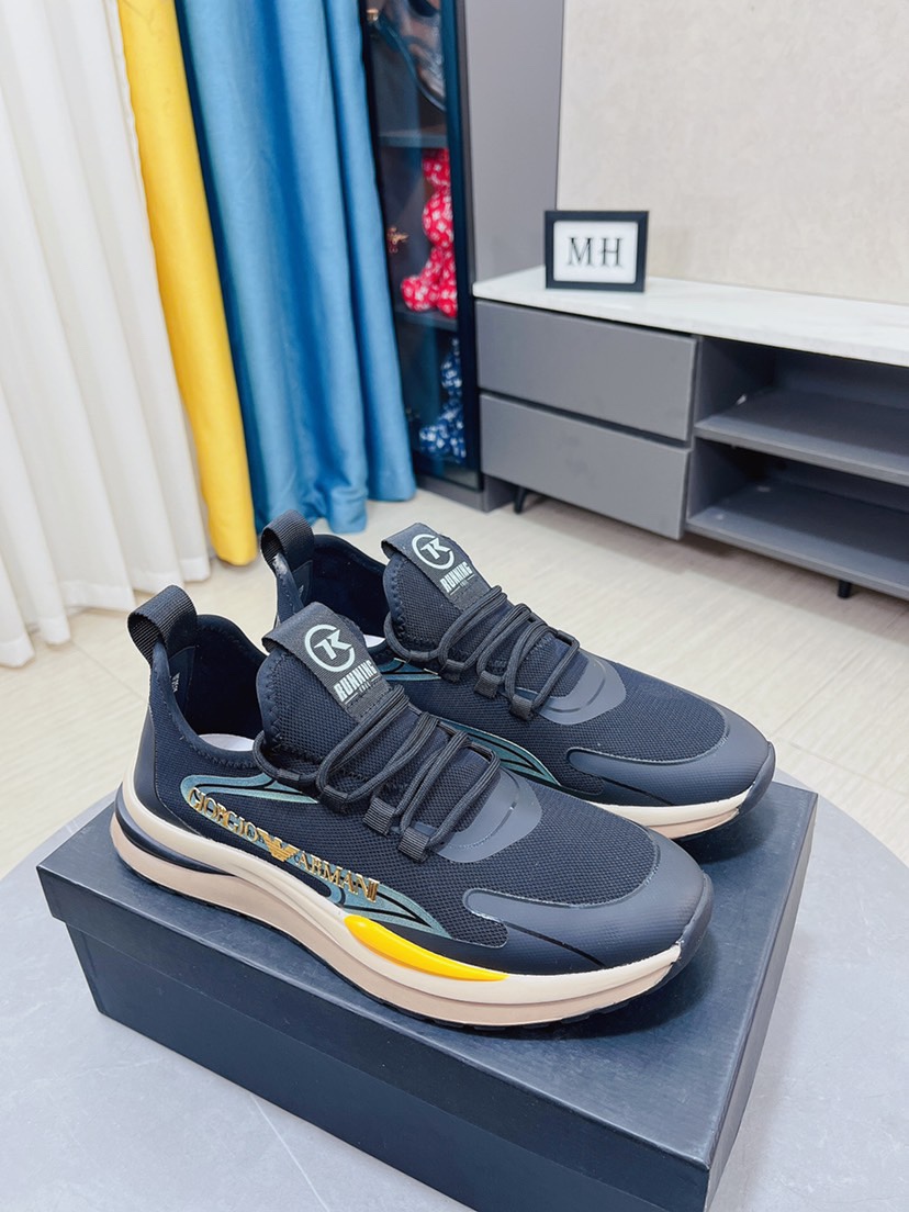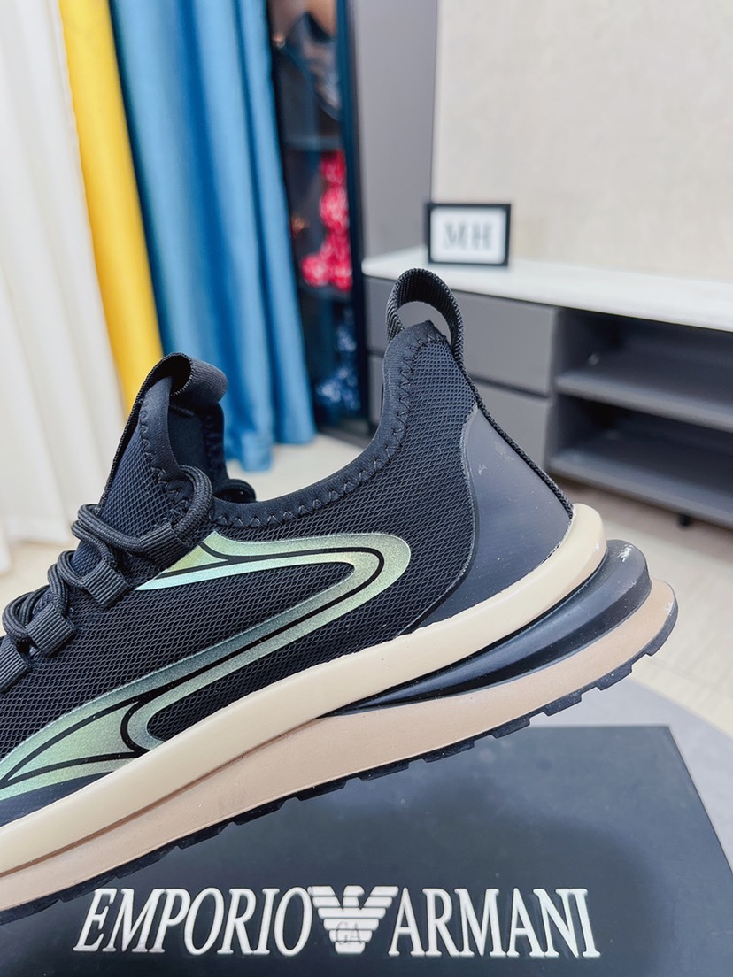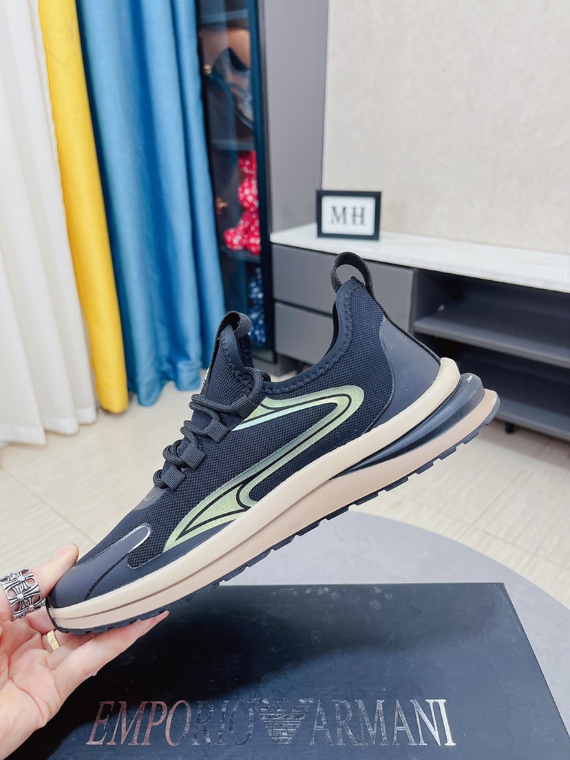 I5 Armani阿玛尼休闲鞋香港🆙顶级原单 经典回归 🎉 专柜验证 🆙保证品质🙏 进口意大利进口飞织透气面料🙏真皮垫脚。柔软防滑橡胶大底, 高品质打造👟 流畅的宣型 精细的做工 ,时尚又休闲,😍码数:38-44