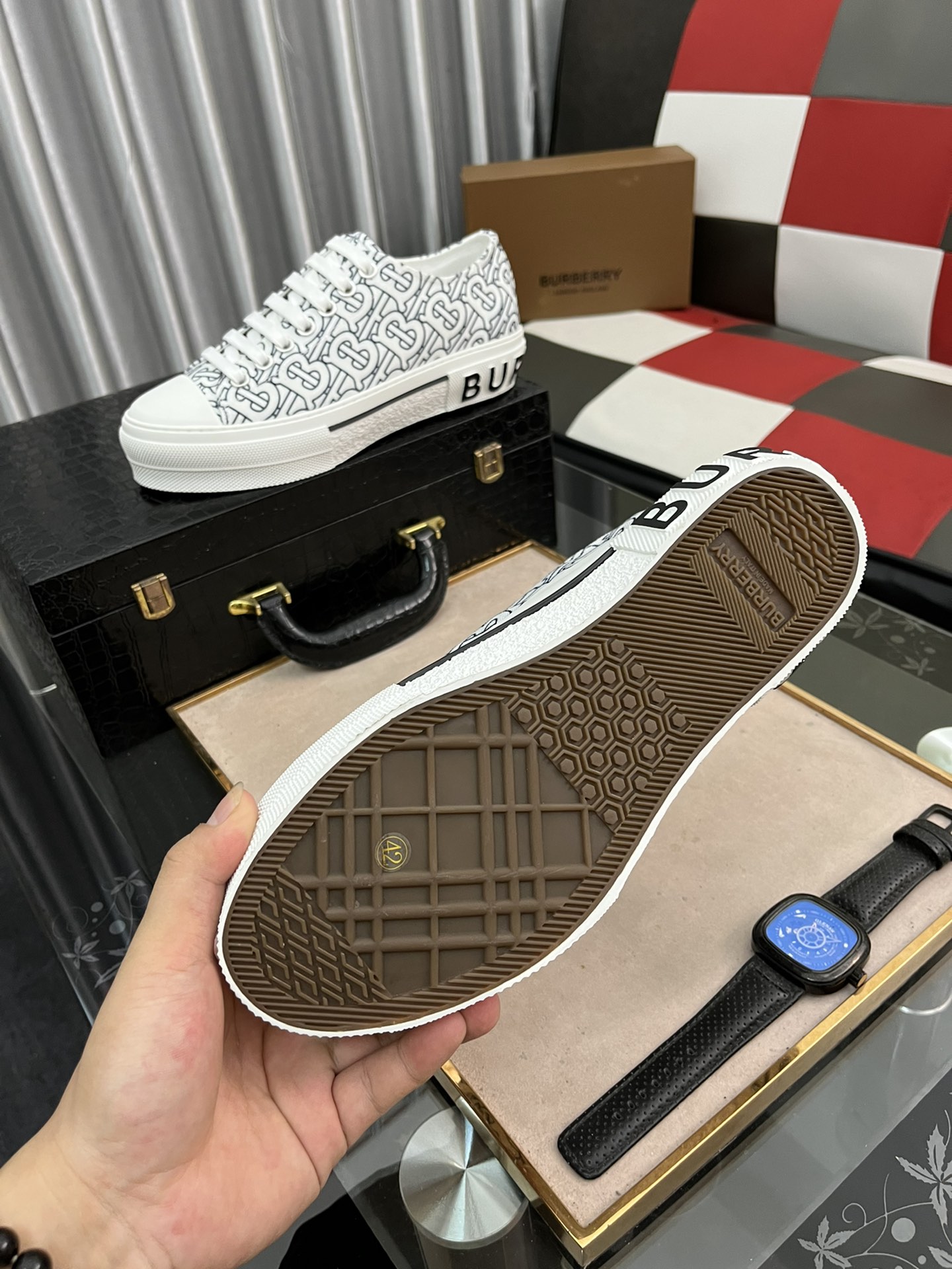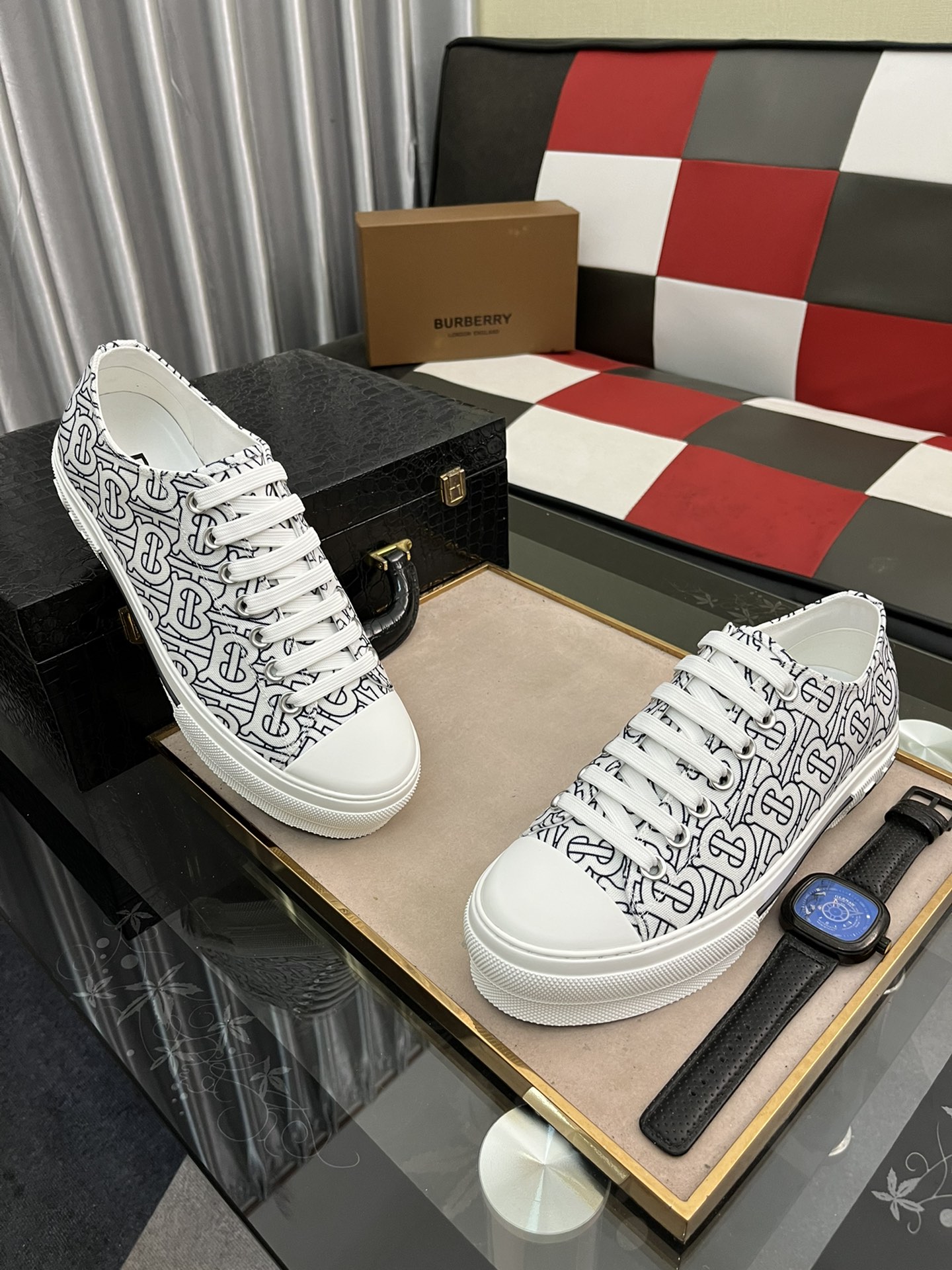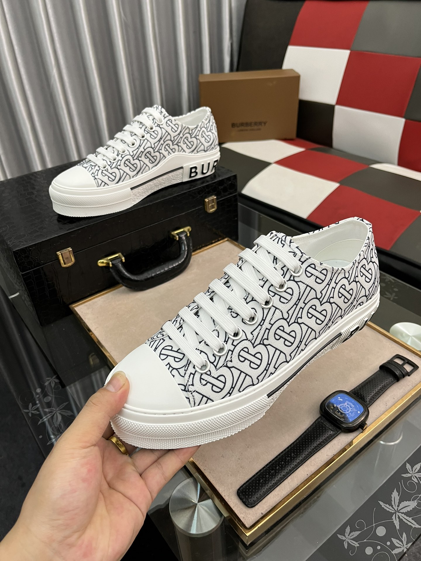 I5 Burberry 巴宝莉 男士休闲鞋[得意]爆款,进口牛皮搭配原版印花面料,舒适耐磨大底 ,猪皮内里,你还为穿着搭配鞋发愁,那这款鞋你就是你不二的选择