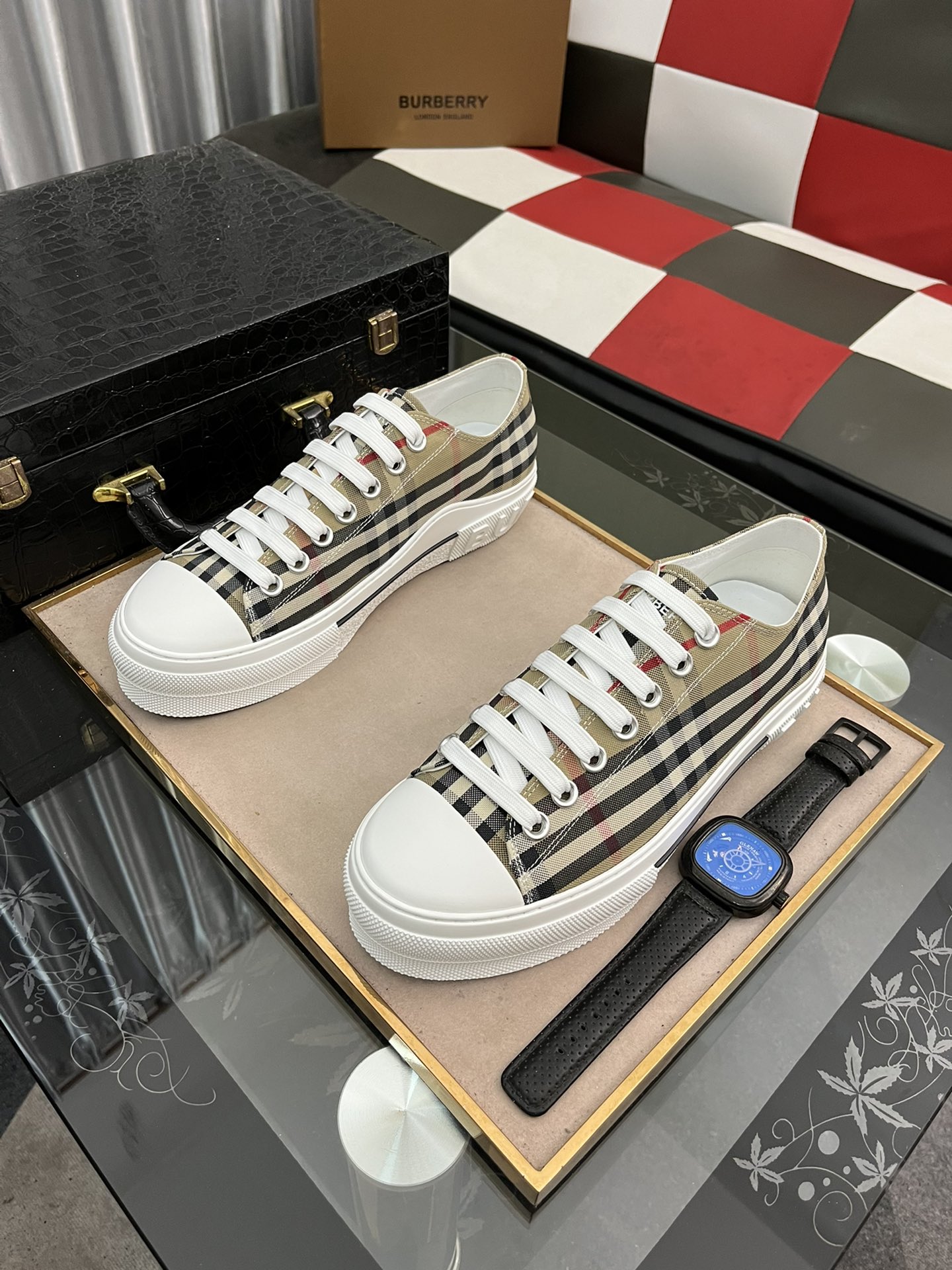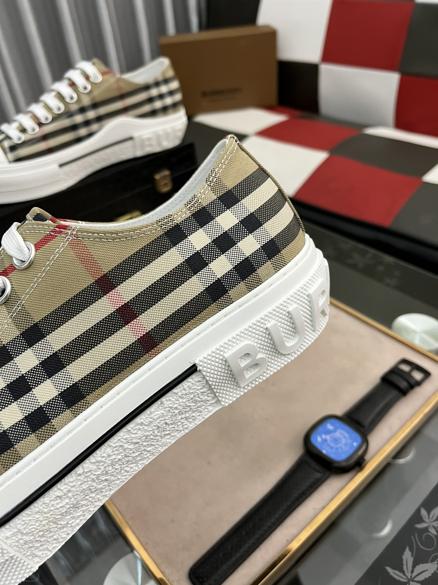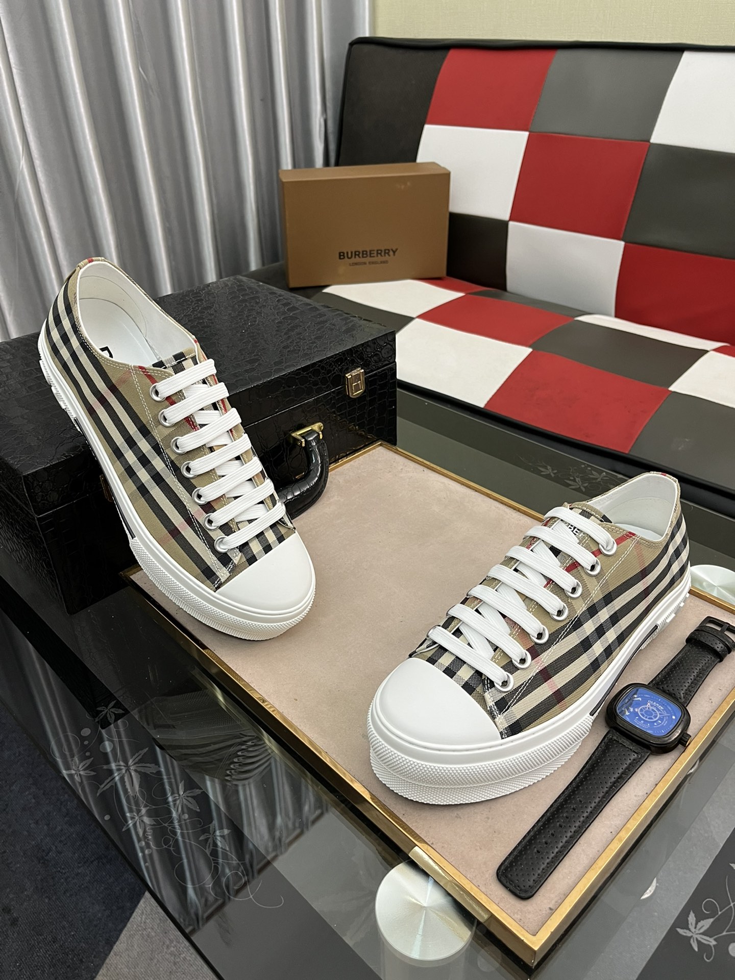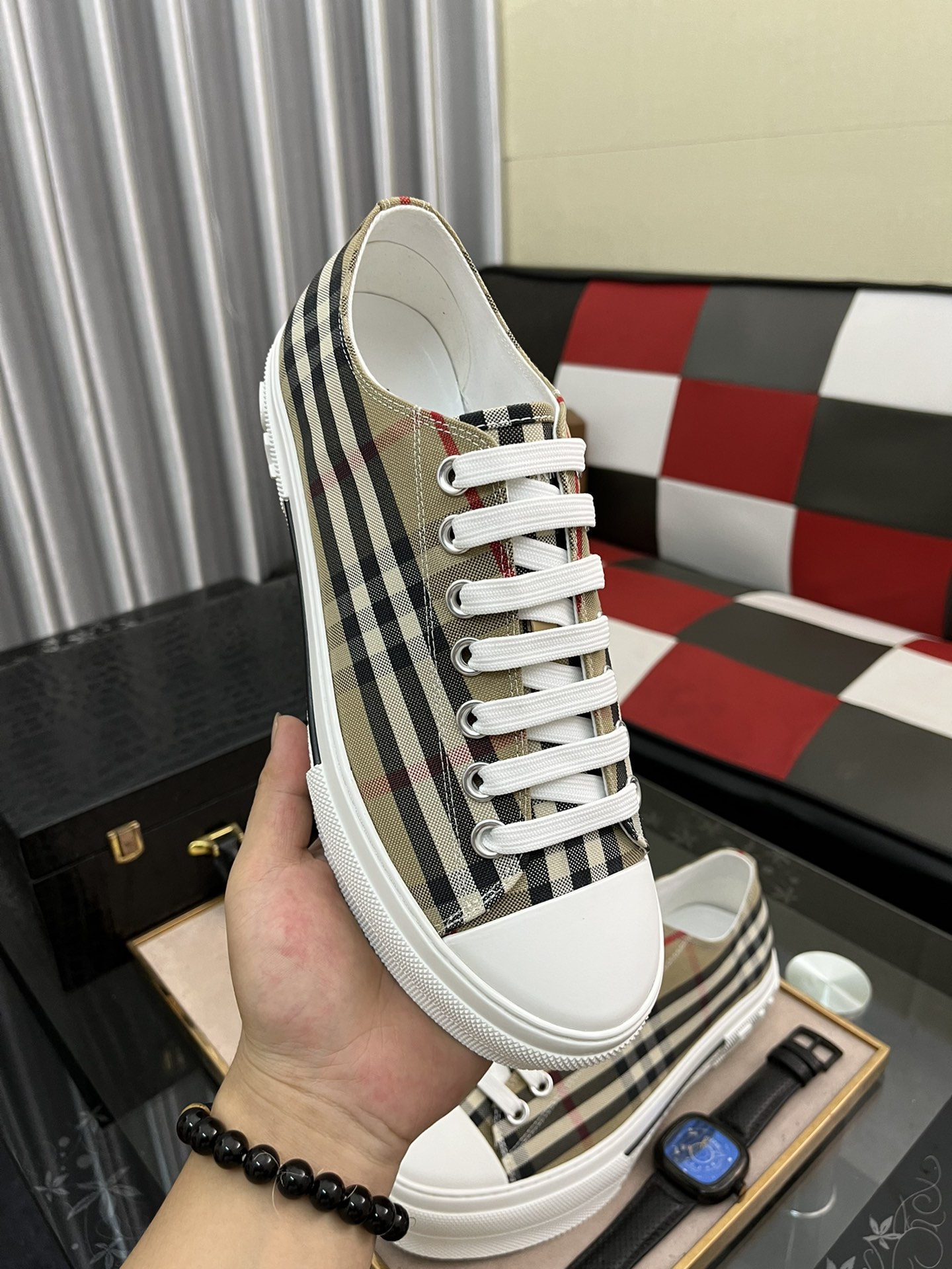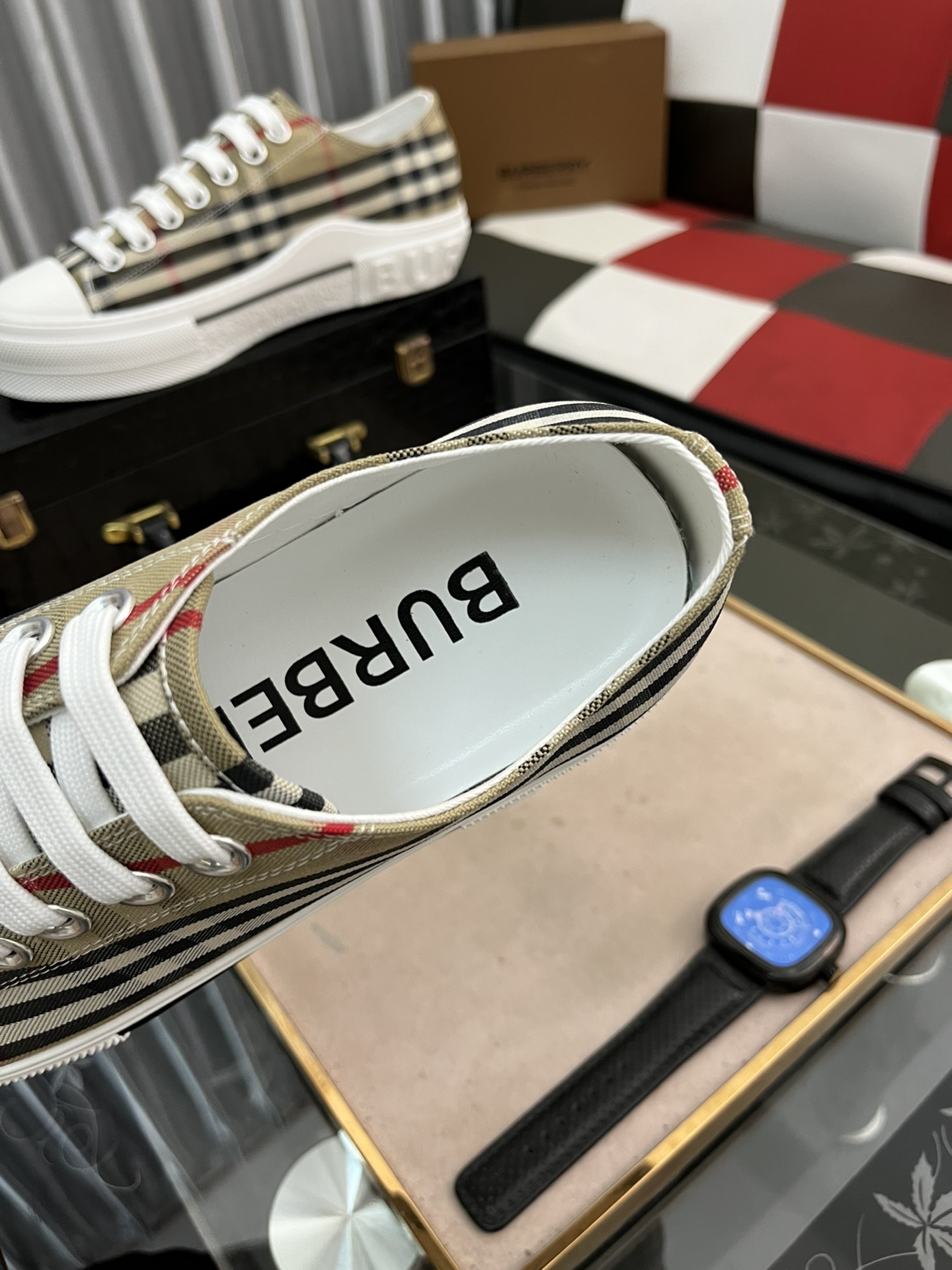 I5 Burberry 巴宝莉 男士休闲鞋经典条纹布搭配进口头层丝绸配高丝光磨砂皮 全真绵羊皮内里非常舒适,原版大底,细节决定品质,欢迎对比,