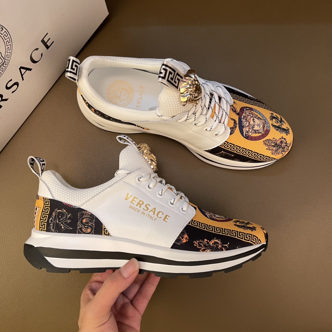 J0 独家潮品 最高品质范思哲VERSACE~独领风骚2022经典低帮懒人款,瓦莎琪压花纹 鞋面LOGO更是重金精心打造😍 材料:🐂进口头层小牛皮,羊皮内里🐑 欧美大师独特版面设计 耐磨仿滑原版大底 青年乐福款 休闲运动板鞋💓超级舒服。范思哲原版复刻 适合司机驾车外出🚗 .男鞋