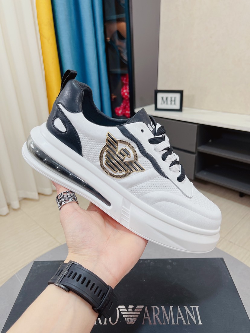 J0 Armani阿玛尼😘😘世界⌚️著名奢侈品牌,高端系列休闲男鞋,以经典的设计成为永不落幕的时尚宠儿,经典的休闲造型。采用进口牛皮拼接➕品牌发泡气垫大底,耐磨,轻便😍